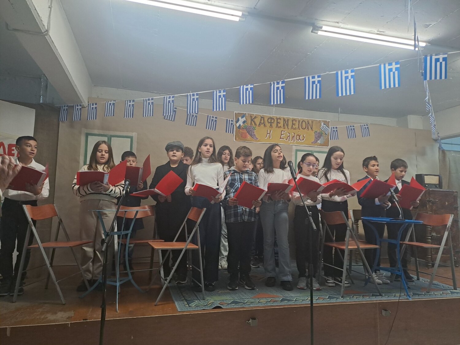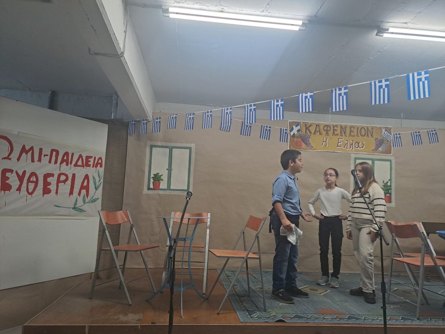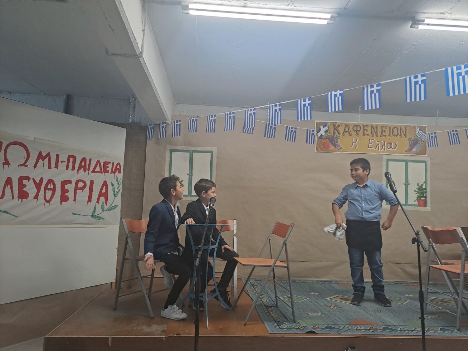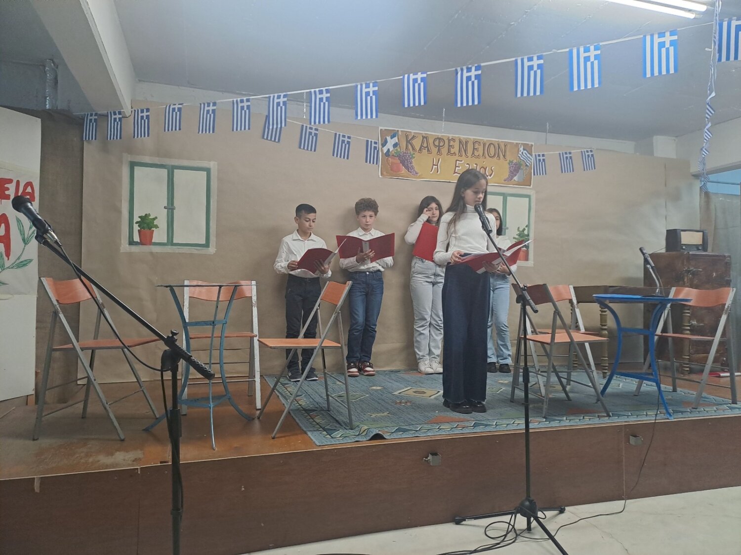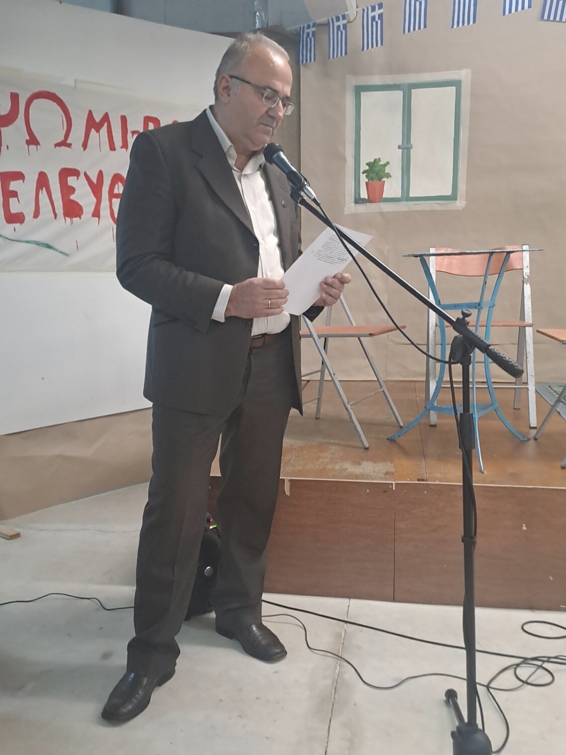 Καλεσμένος στην εορτή για τα πενήντα χρόνια από την επέτειο του Πολυτεχνείου του Δημοτικού Σχολείου Γόννων, ο δήμαρχος Τεμπών Γιώργος Μανώλης, συνοδευόμενος από τον αντιδήμαρχο Βασίλη Σίμο και παρουσία της Διευθύντριας Πρωτοβάθμιας Εκπαίδευσης Λάρισας, κας Αικατερίνης Καραγιώργου, μαθητών, γονέων και κηδεμόνων και προέδρων φορέων, παρακολούθησαν το θεατρικό «Καφενείον Η ΕΛΛΑΣ» που προετοίμασε η Ε’ τάξη Δημοτικού.