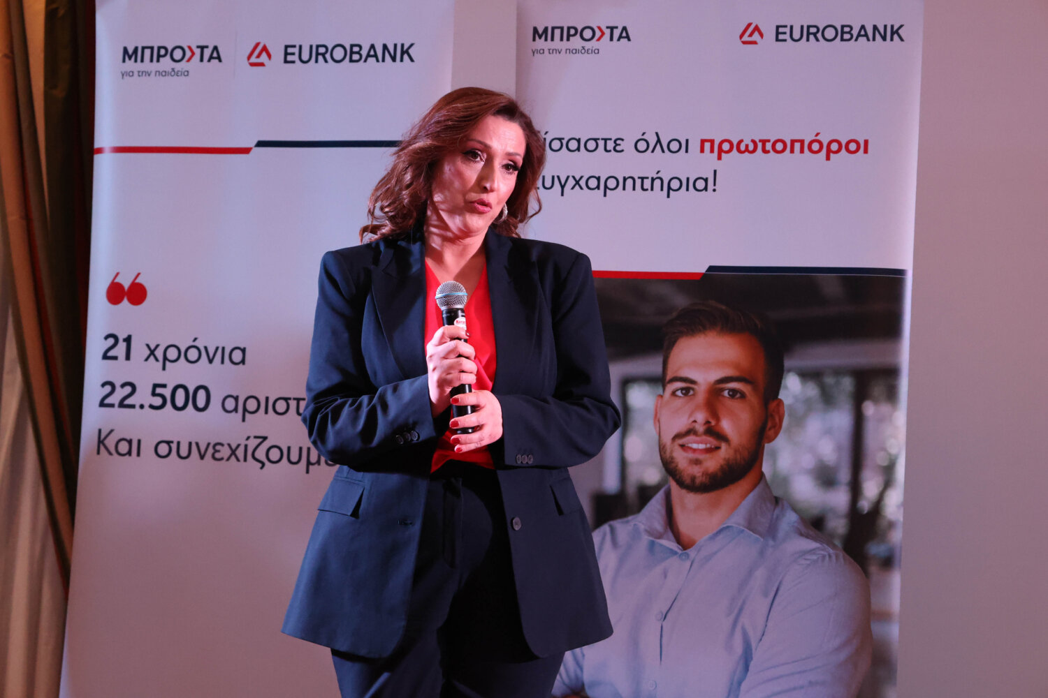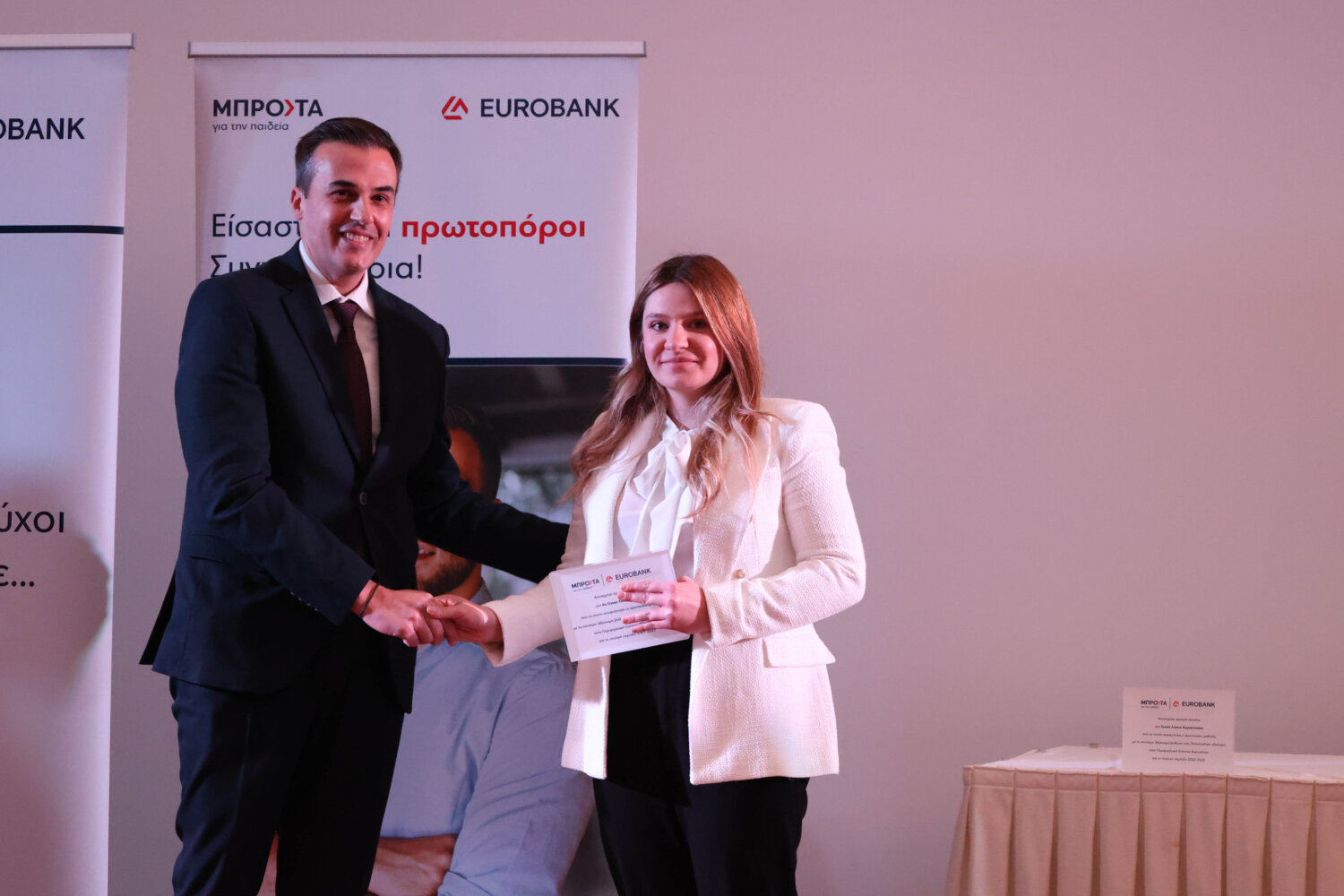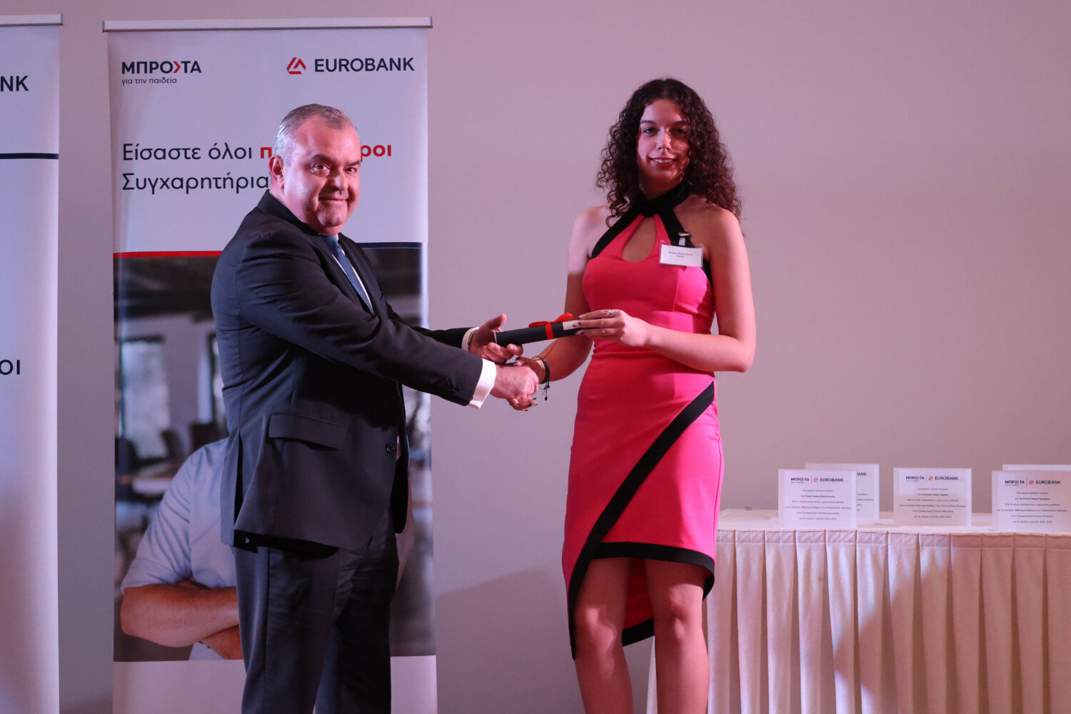 Τους αριστούχους αποφοίτους Λυκείων που διακρίθηκαν στις Πανελλαδικές εξετάσεις, από σχολεία της Θεσσαλίας και της Στερεάς Ελλάδας βράβευσε σήμερα το απόγευμα στο ξενοδοχείο Imperial η Eurobank στο πλαίσιο του προγράμματός της «Μπροστά για την Παιδεία».