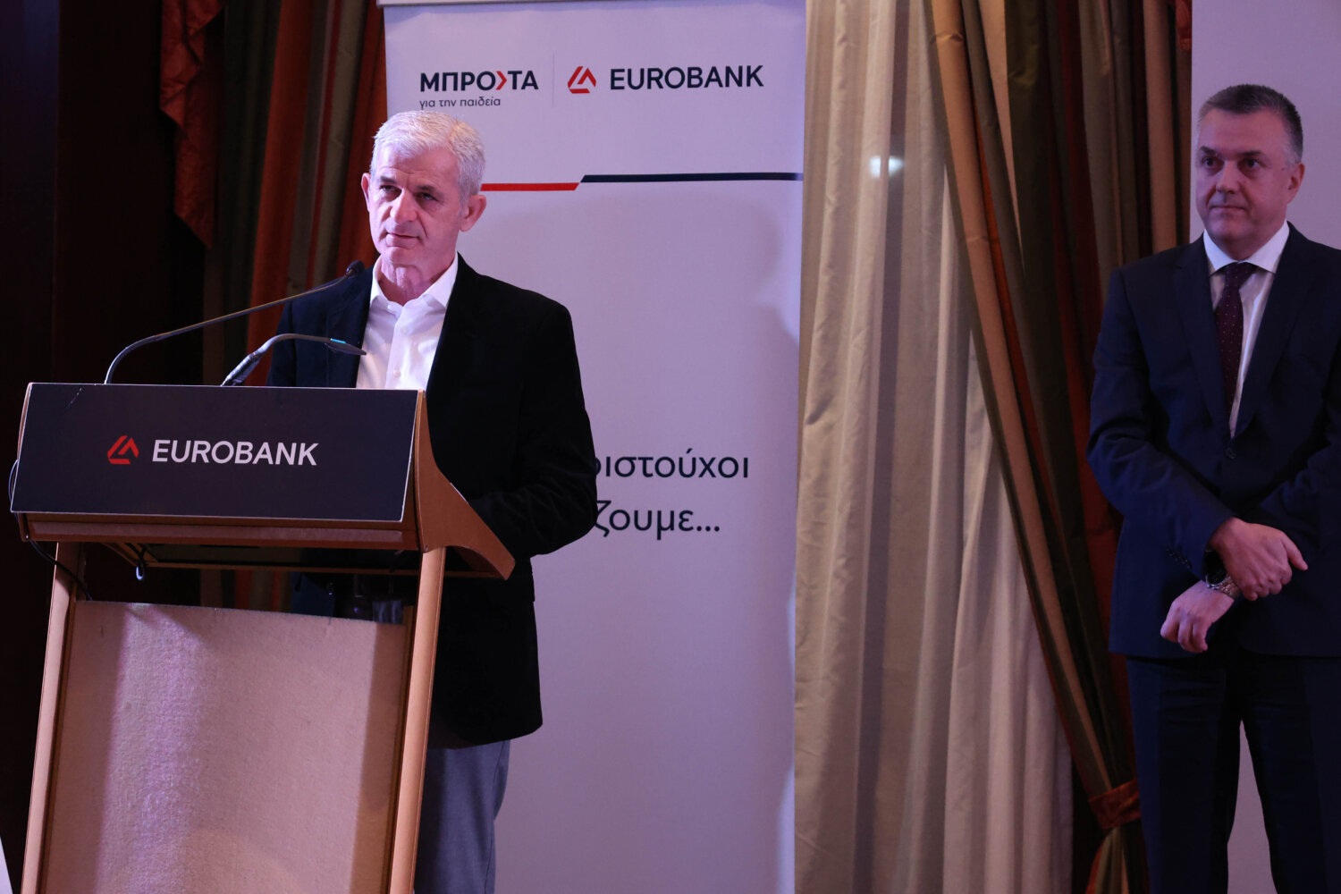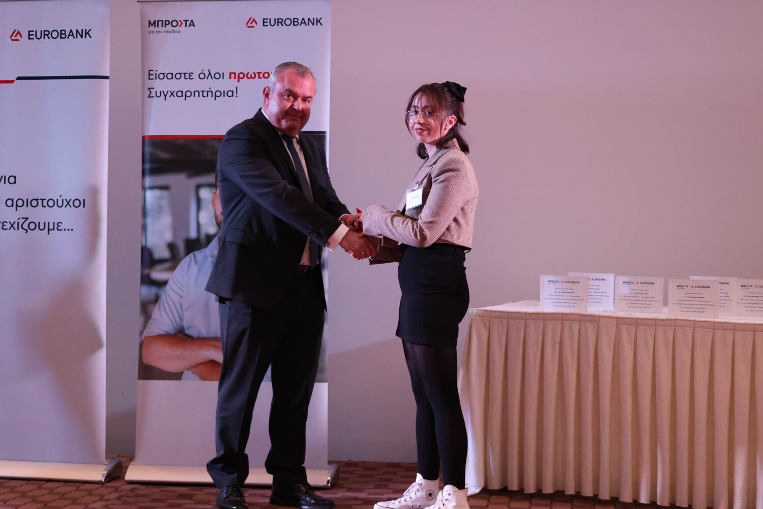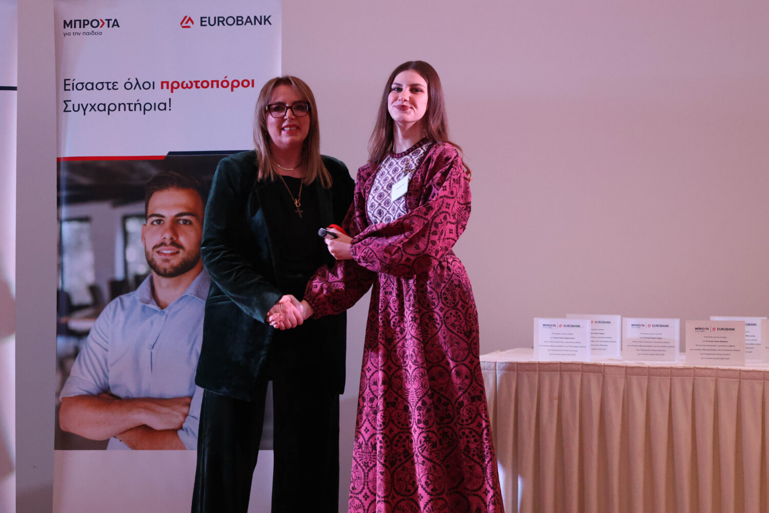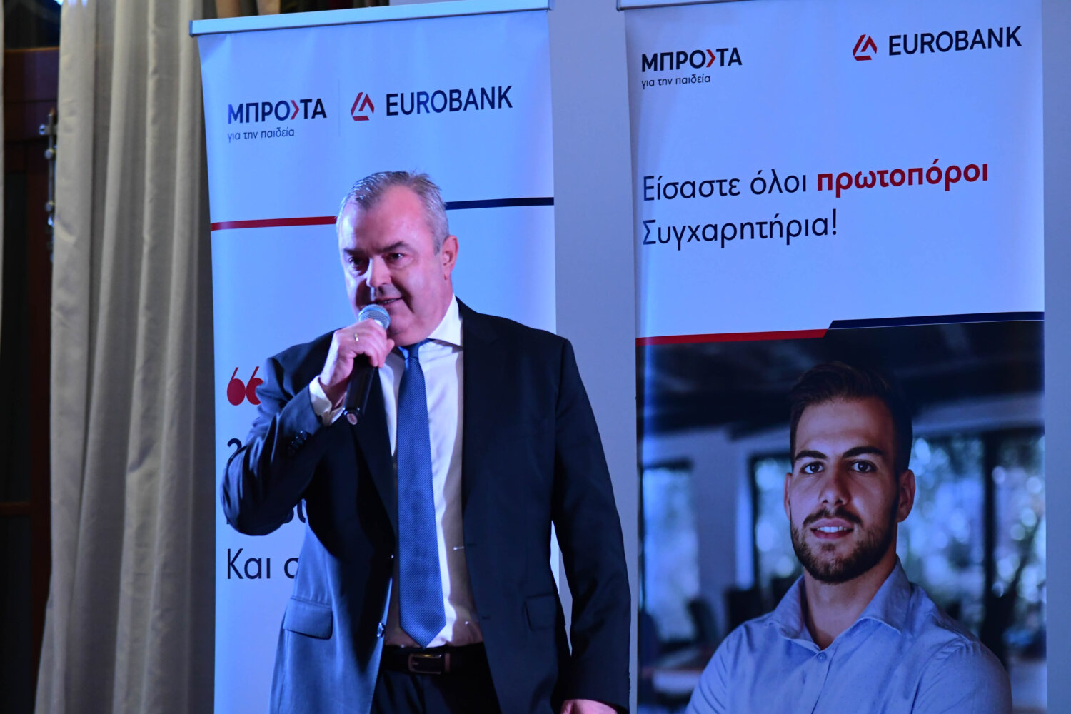 Τους αριστούχους αποφοίτους Λυκείων που διακρίθηκαν στις Πανελλαδικές εξετάσεις, από σχολεία της Θεσσαλίας και της Στερεάς Ελλάδας βράβευσε σήμερα το απόγευμα στο ξενοδοχείο Imperial η Eurobank στο πλαίσιο του προγράμματός της «Μπροστά για την Παιδεία».