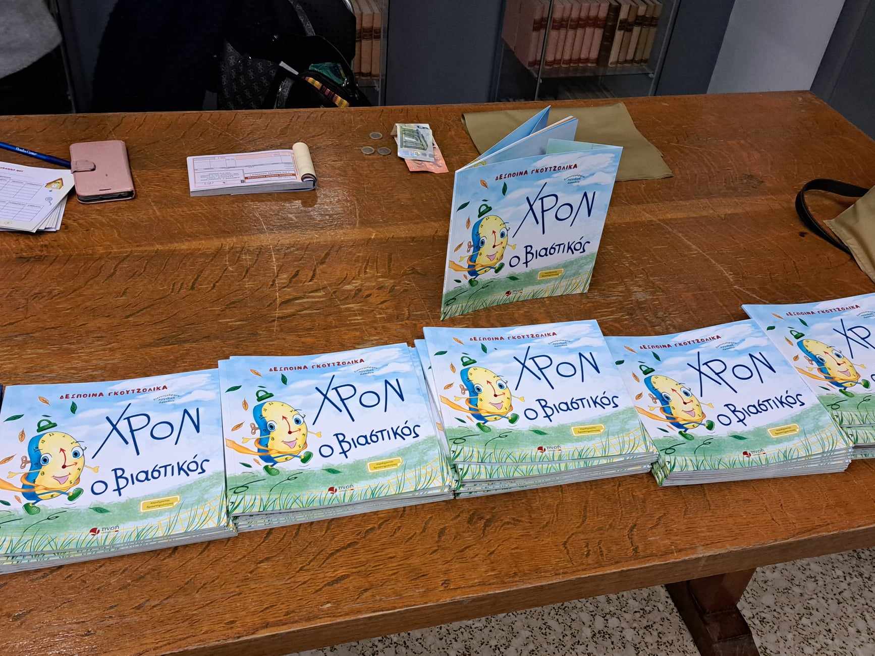 Παρουσιάστηκε στο Γαλλικό Ινστιτούτο Λάρισας (Κούμα 28) για πρώτη φορά το νέο βιβλίο της αστυνομικού-συγγραφέα Δέσποινας Γκουτζολίκα, με τίτλο «Χρον ο βιαστικός», σε εικονογράφηση Αγγελικής Δρακάκη που κυκλοφορεί μαζί με το «Οι θαλασσοπόροι του ουρανού από τις εκδόσεις Πνοή.