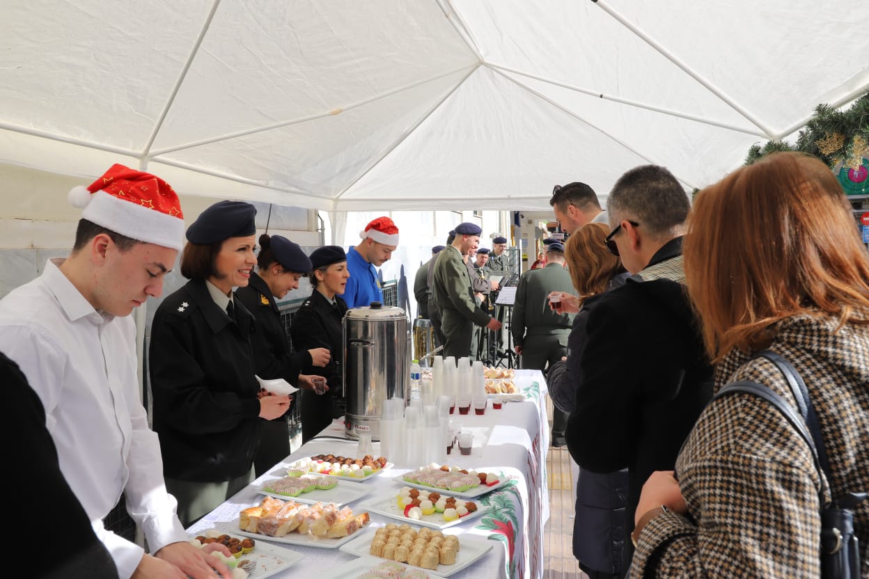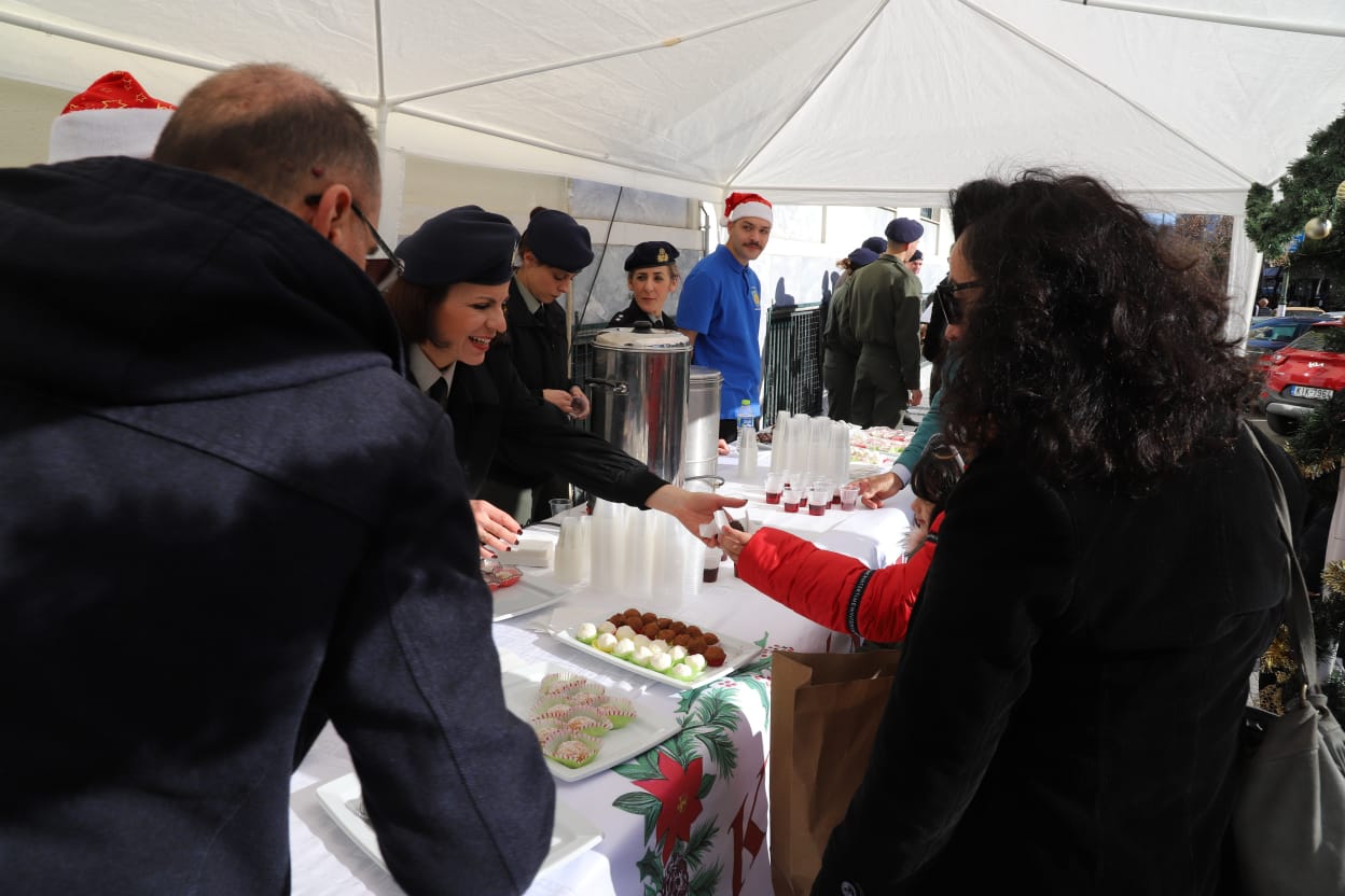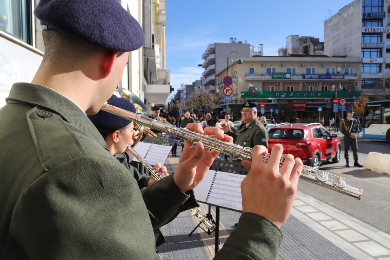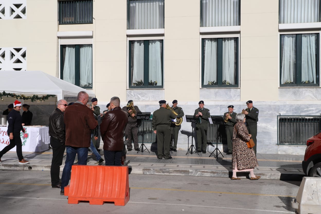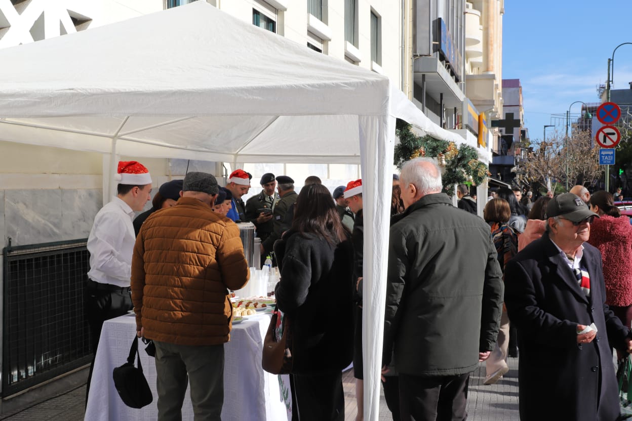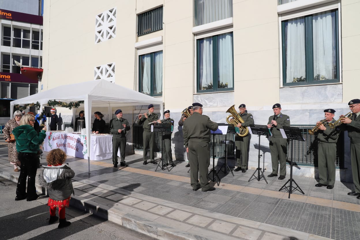 Η μπάντα της 1ης Στρατιάς έδωσε τον ρυθμό με κάλαντα και εορταστικές χορωδίες, ενώ τα κεράσματα προς τους διερχόμενους πολίτες ζέσταναν ακόμη περισσότερο την ατμόσφαιρα.