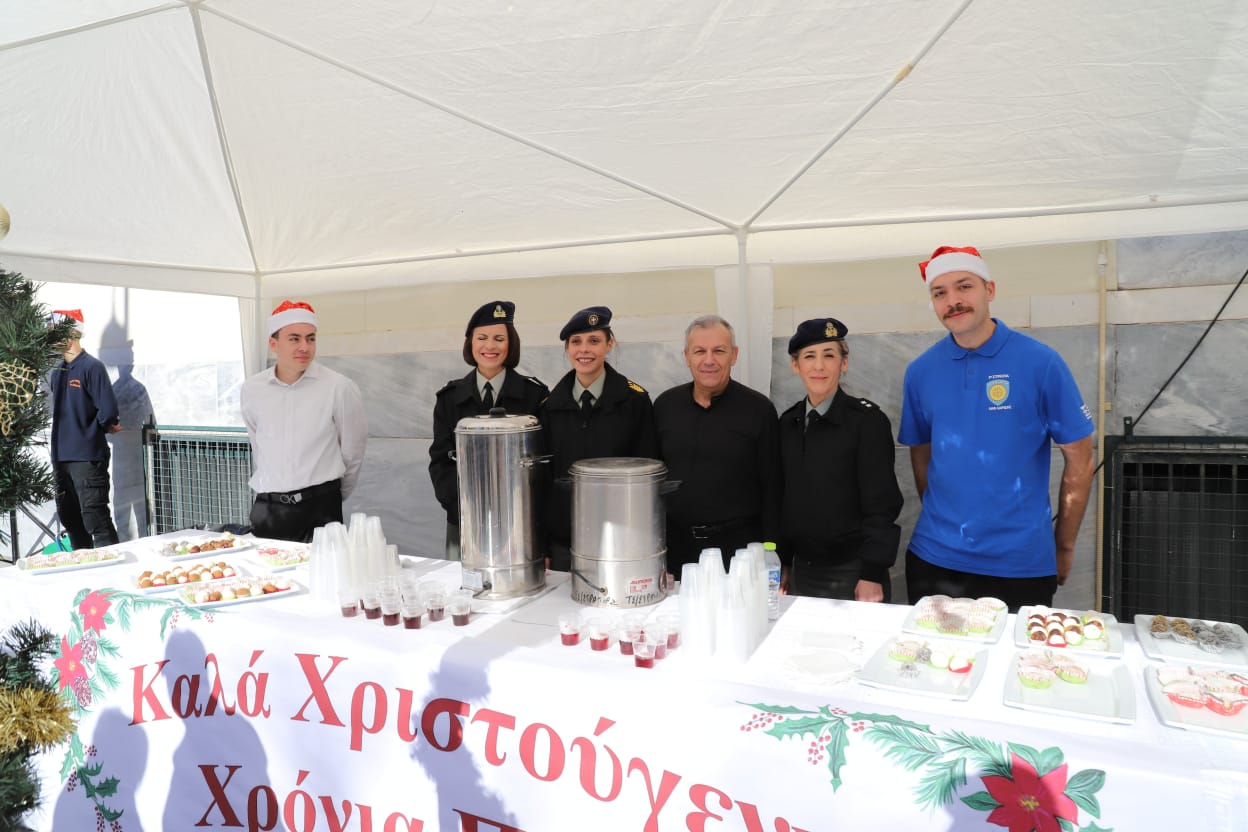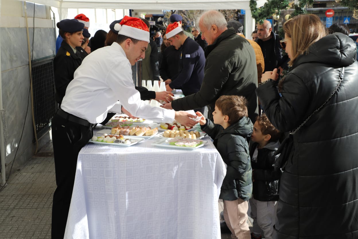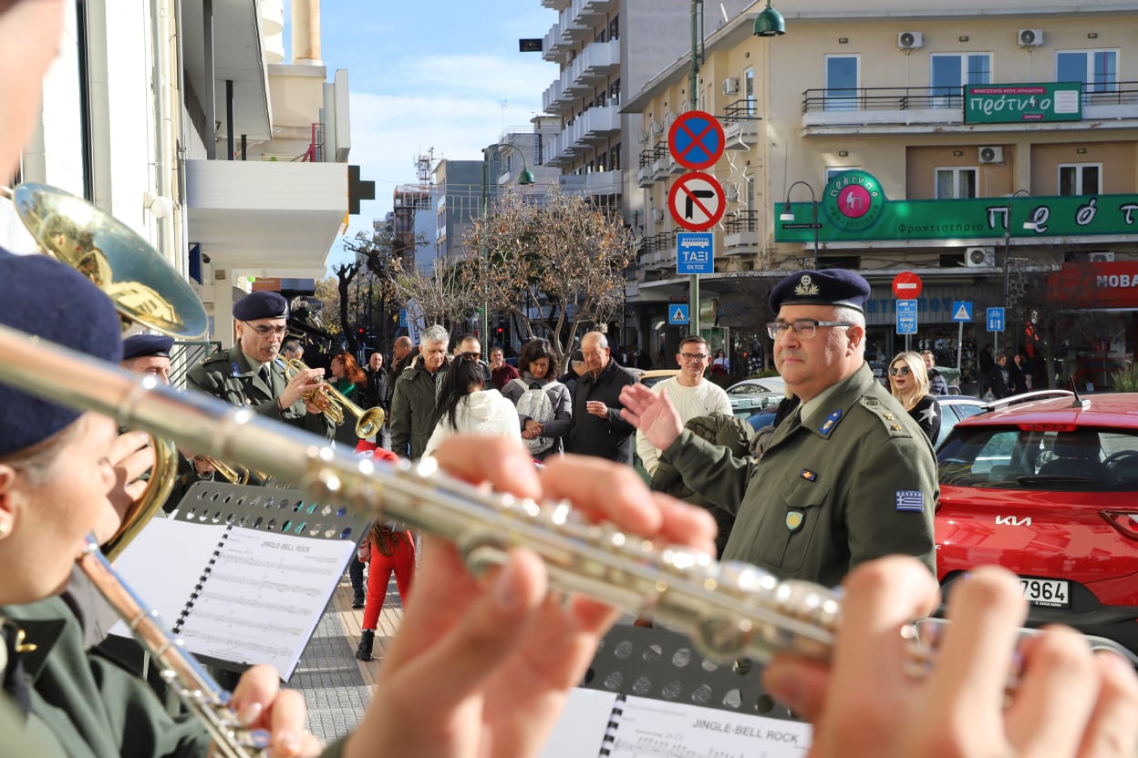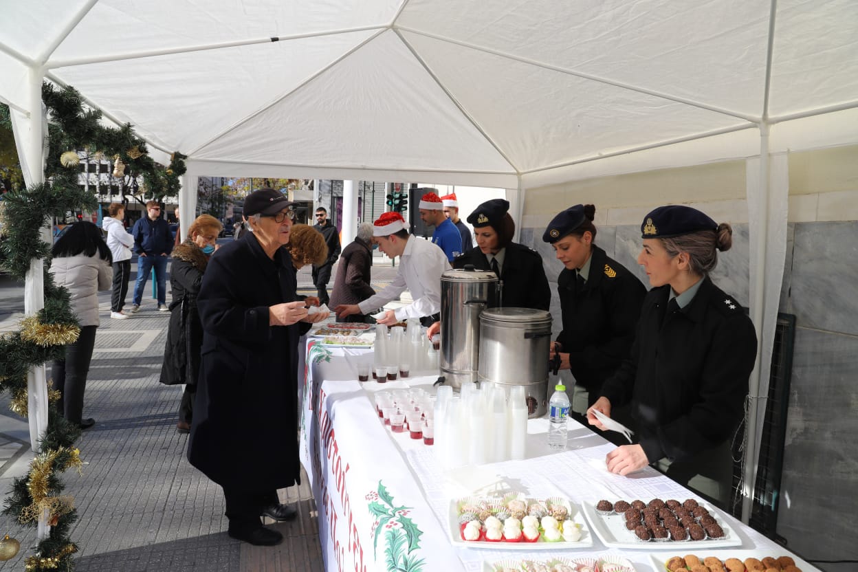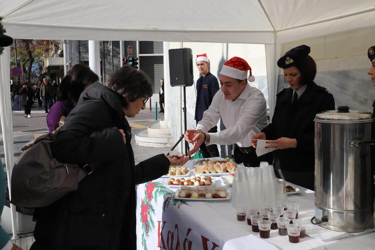 Η μπάντα της 1ης Στρατιάς έδωσε τον ρυθμό με κάλαντα και εορταστικές χορωδίες, ενώ τα κεράσματα προς τους διερχόμενους πολίτες ζέσταναν ακόμη περισσότερο την ατμόσφαιρα.