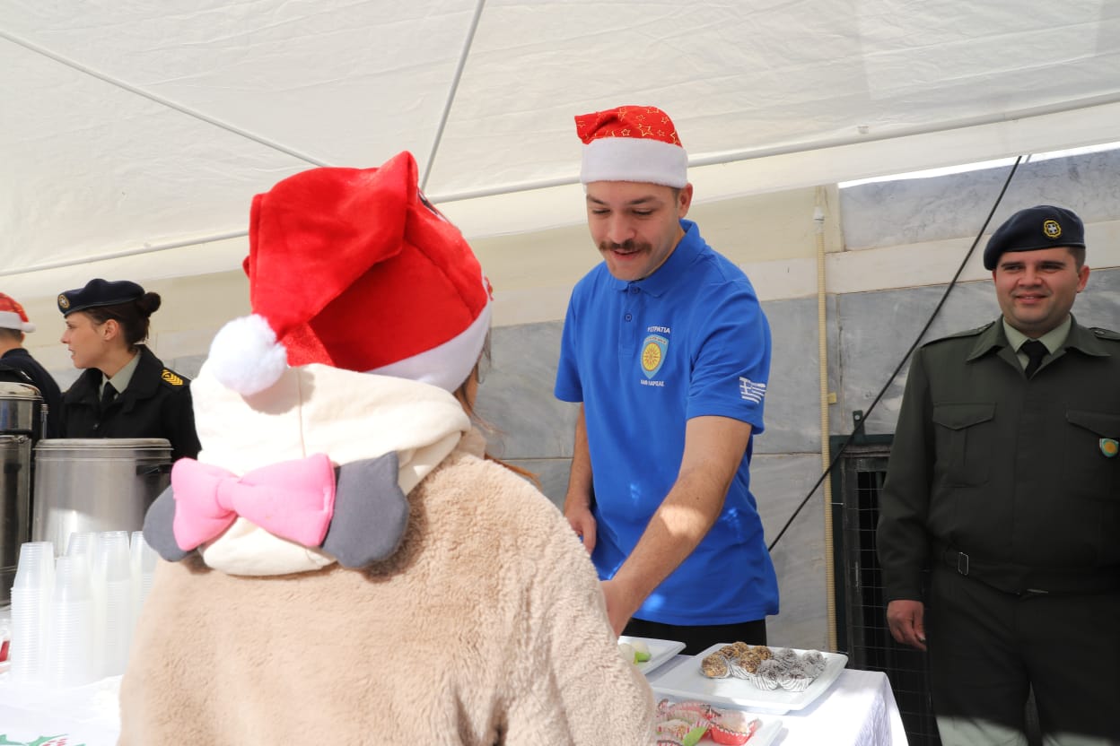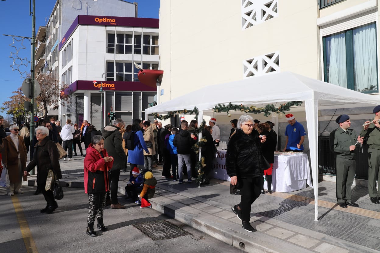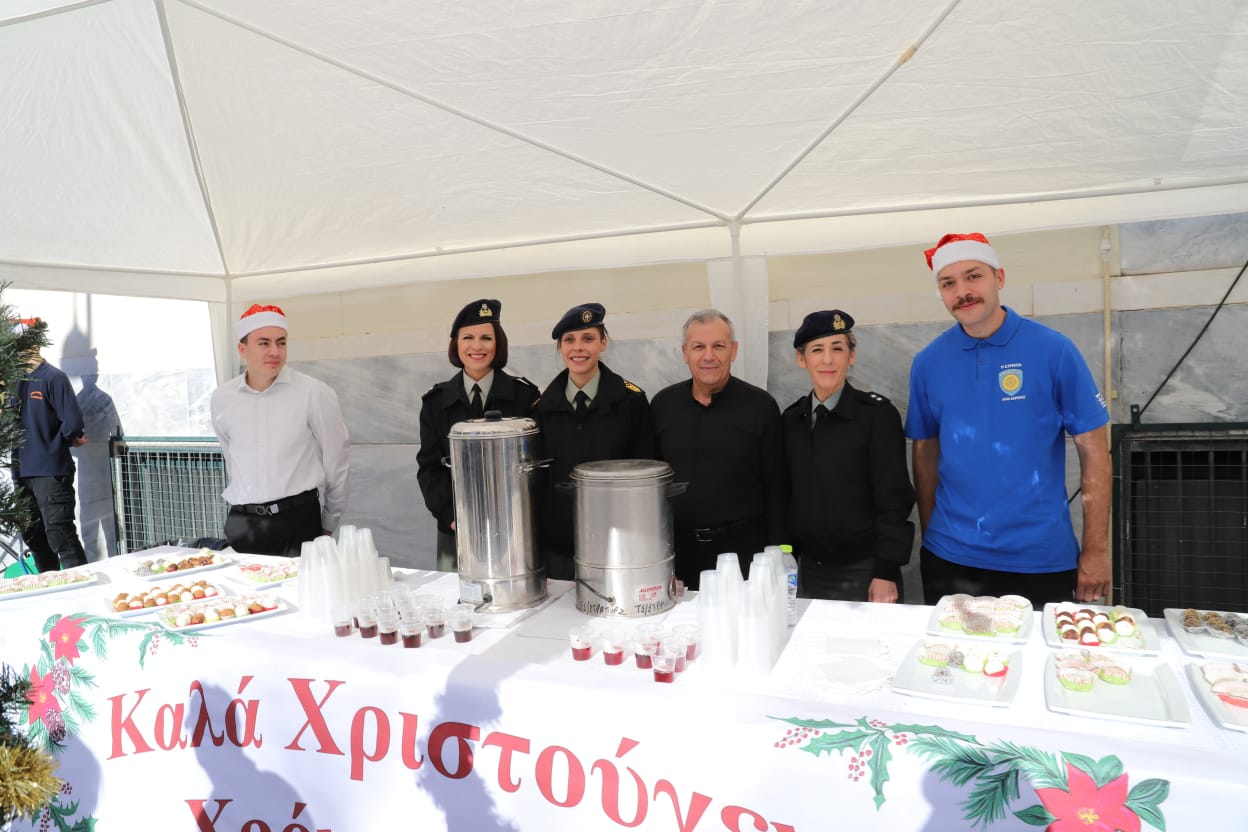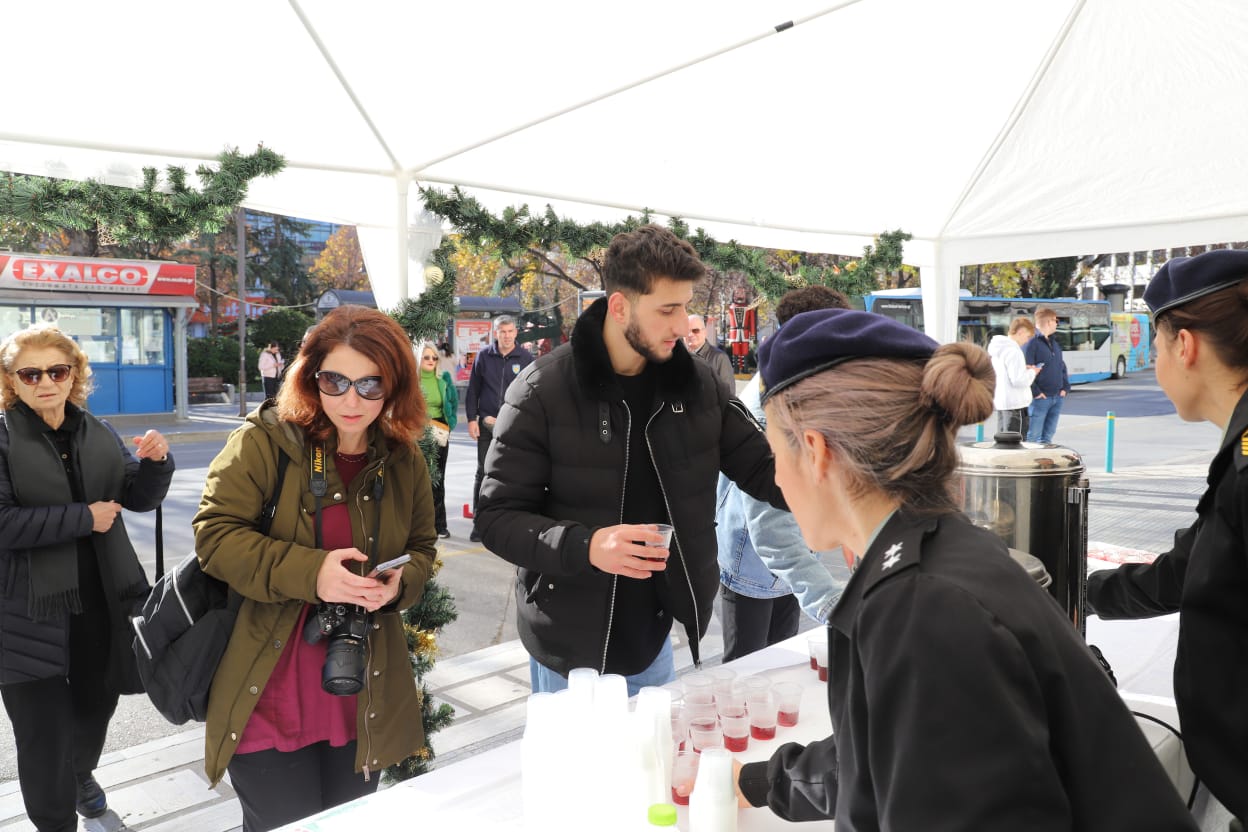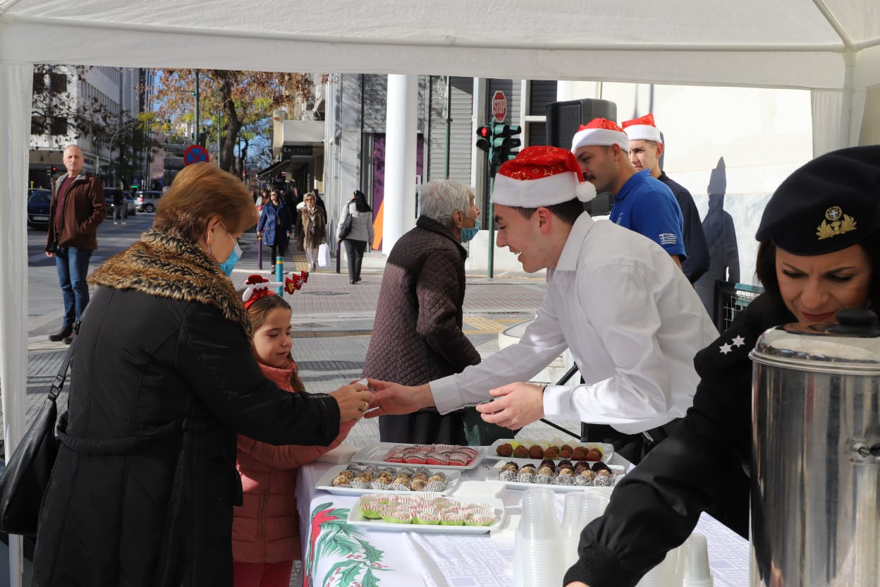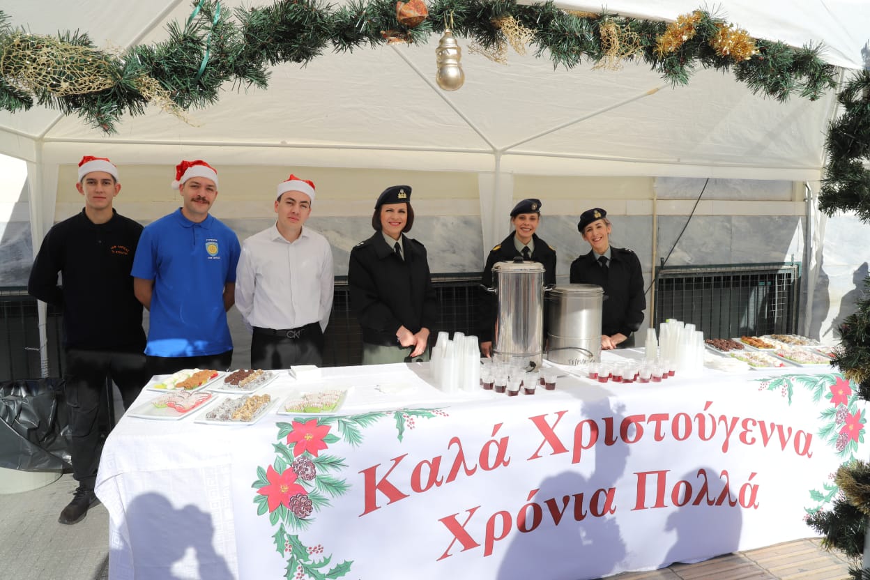 Η μπάντα της 1ης Στρατιάς έδωσε τον ρυθμό με κάλαντα και εορταστικές χορωδίες, ενώ τα κεράσματα προς τους διερχόμενους πολίτες ζέσταναν ακόμη περισσότερο την ατμόσφαιρα.