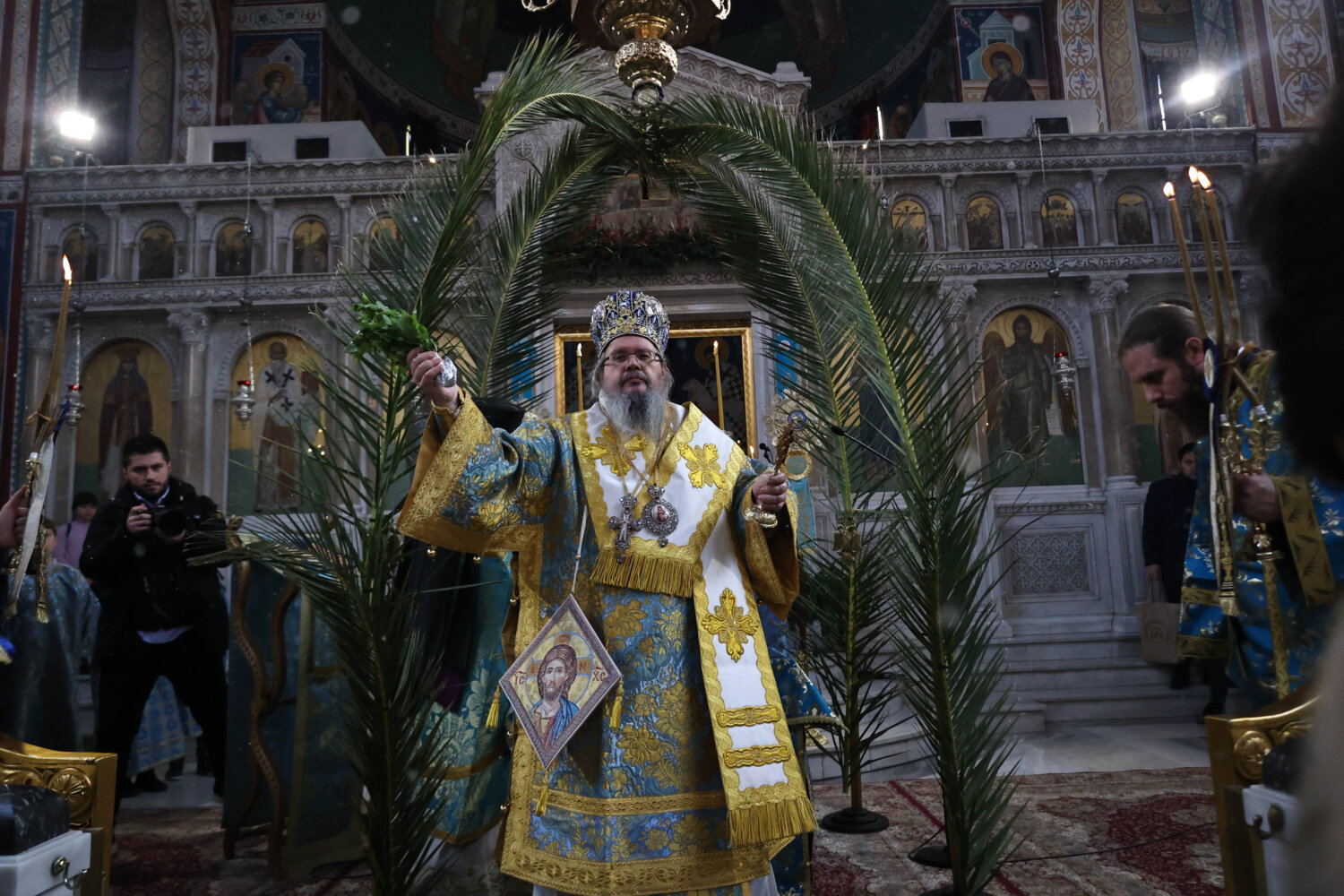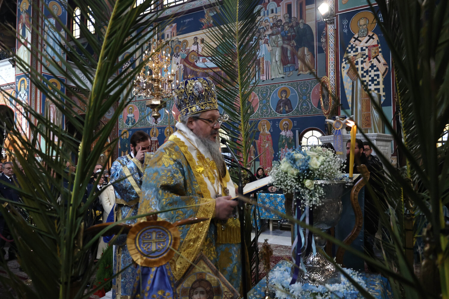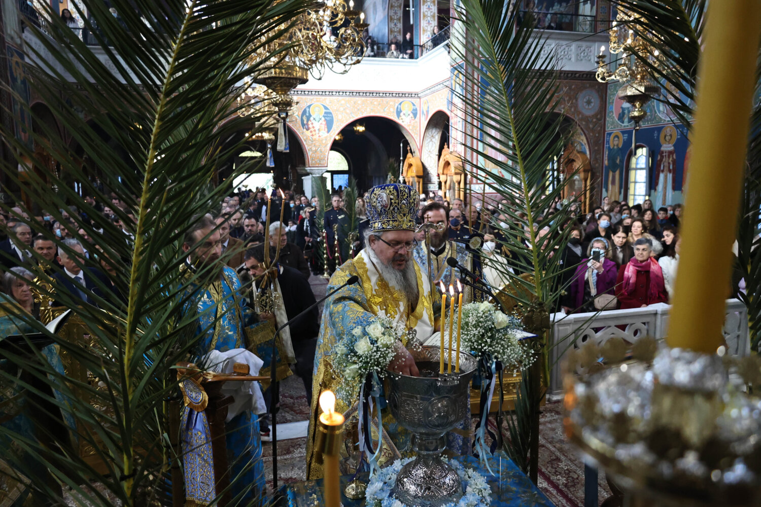 Οι εκπρόσωποι των πολιτικών και στρατιωτικών Αρχών, όπως επίσης και πλήθος πιστών, βρίσκονται στον Ιερό Μητροπολιτικό Ναό του Αγίου Αχιλλίου για τον εορτασμό των Θεοφανίων.