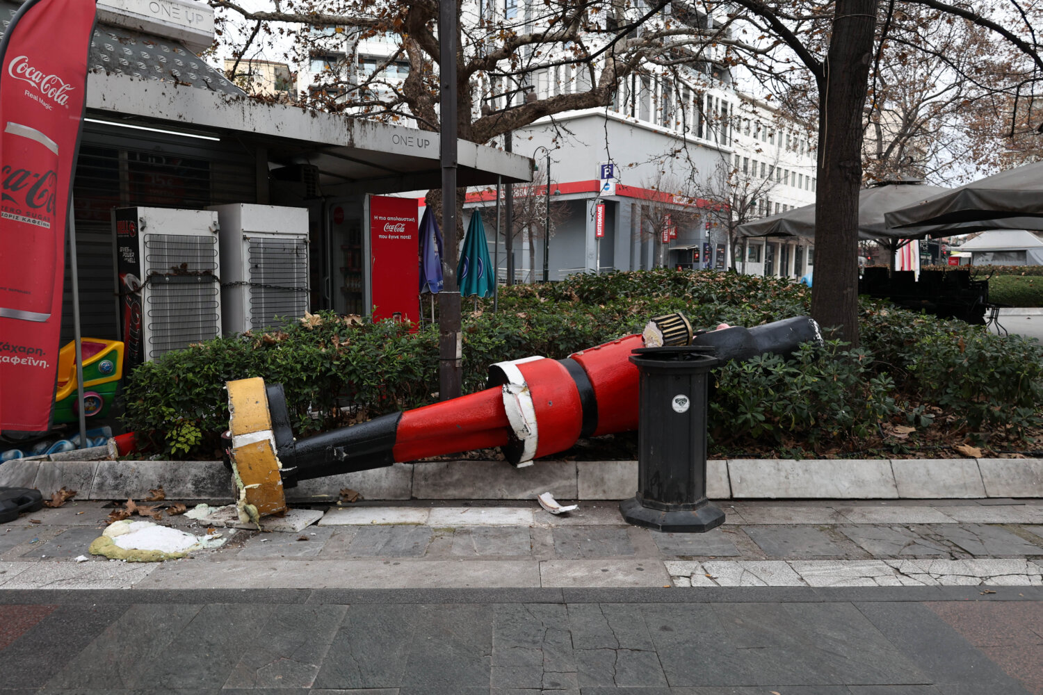 Άγνωστοι ξέσπασαν στον χριστουγεννιάτικο διάκοσμο της πόλης με αποτέλεσμα ένας «καρυοθραύστης» να κείτεται πεσμένος, ενώ ο δεύτερος παραμένει όρθιος και «λαβωμένος».