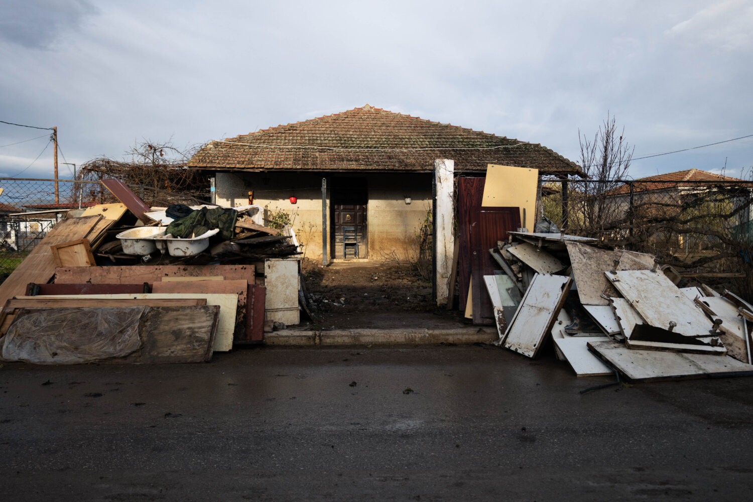 Τα κατεστραμμένα σπίτια, οι παρατημένες στο πεζοδρόμιο οικοσκευές, τα εγκαταλελειμμένα αυτοκίνητα και αγροτικά μηχανήματα συνθέτουν ένα απόκοσμο σκηνικό που δεν αφορά κάποιο μακρινό μέρος που το σημάδεψε ο πόλεμος, αλλά βρίσκεται μόλις 30 χιλιόμετρα από τη Λάρισα.