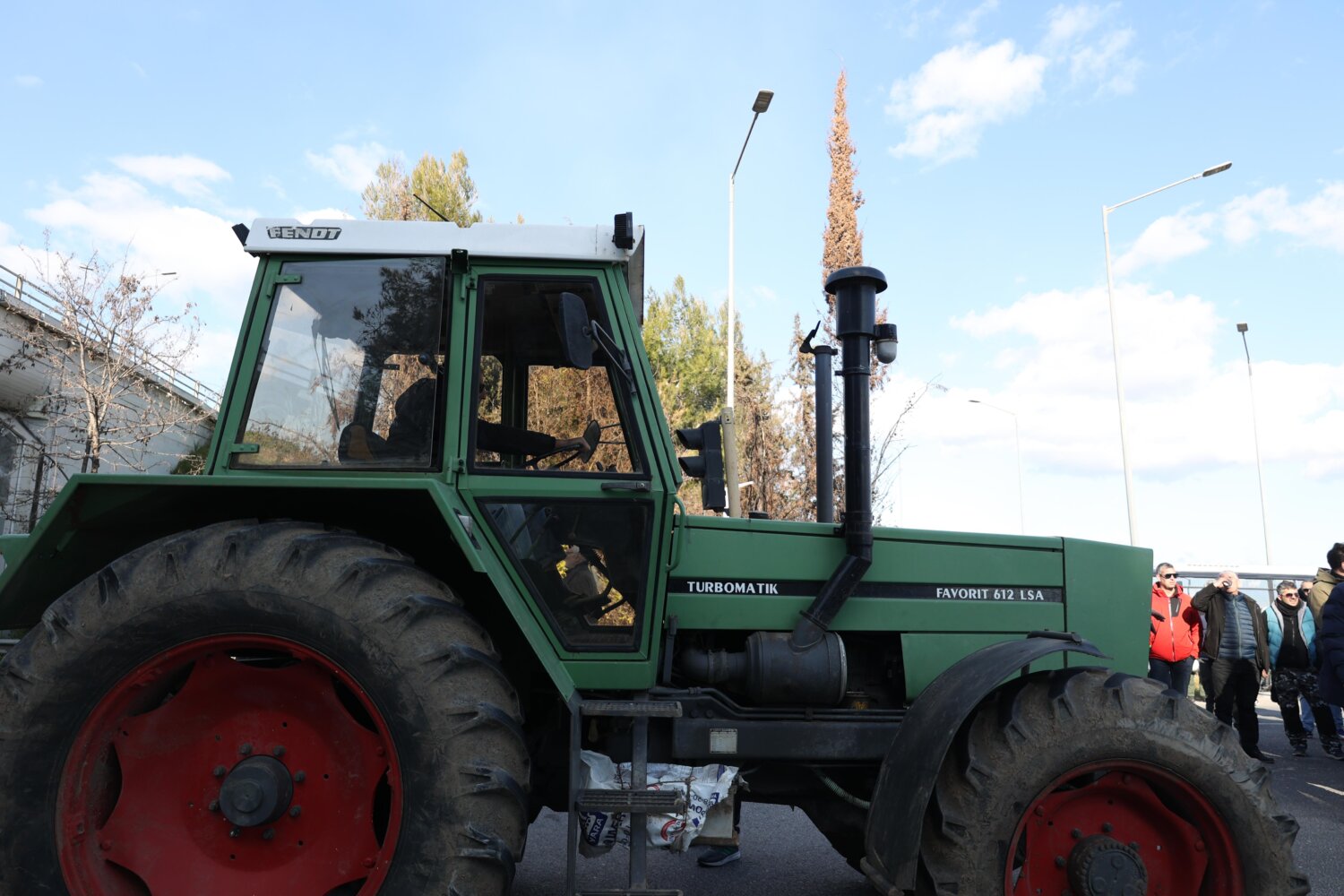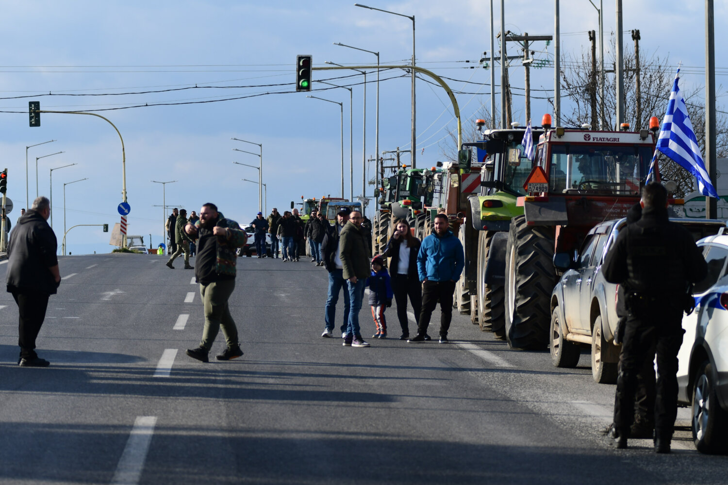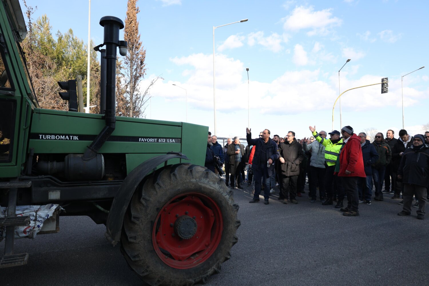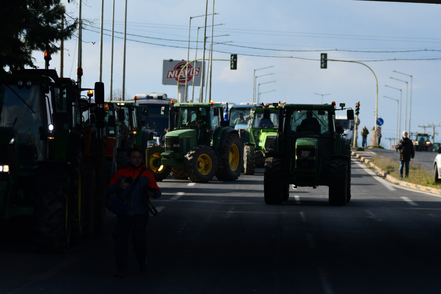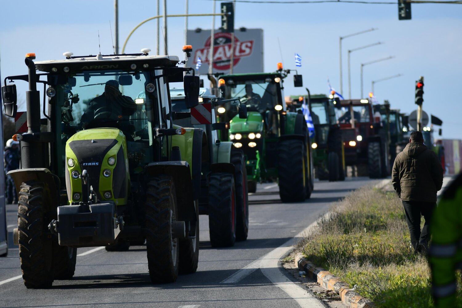 Τα τρακτέρ παρατάσσονται κάτω από την Εθνική Οδό, ενώ οι αστυνομικές δυνάμεις έχουν δημιουργήσει φραγμούς στις εξόδους ώστε να μην περάσουν.