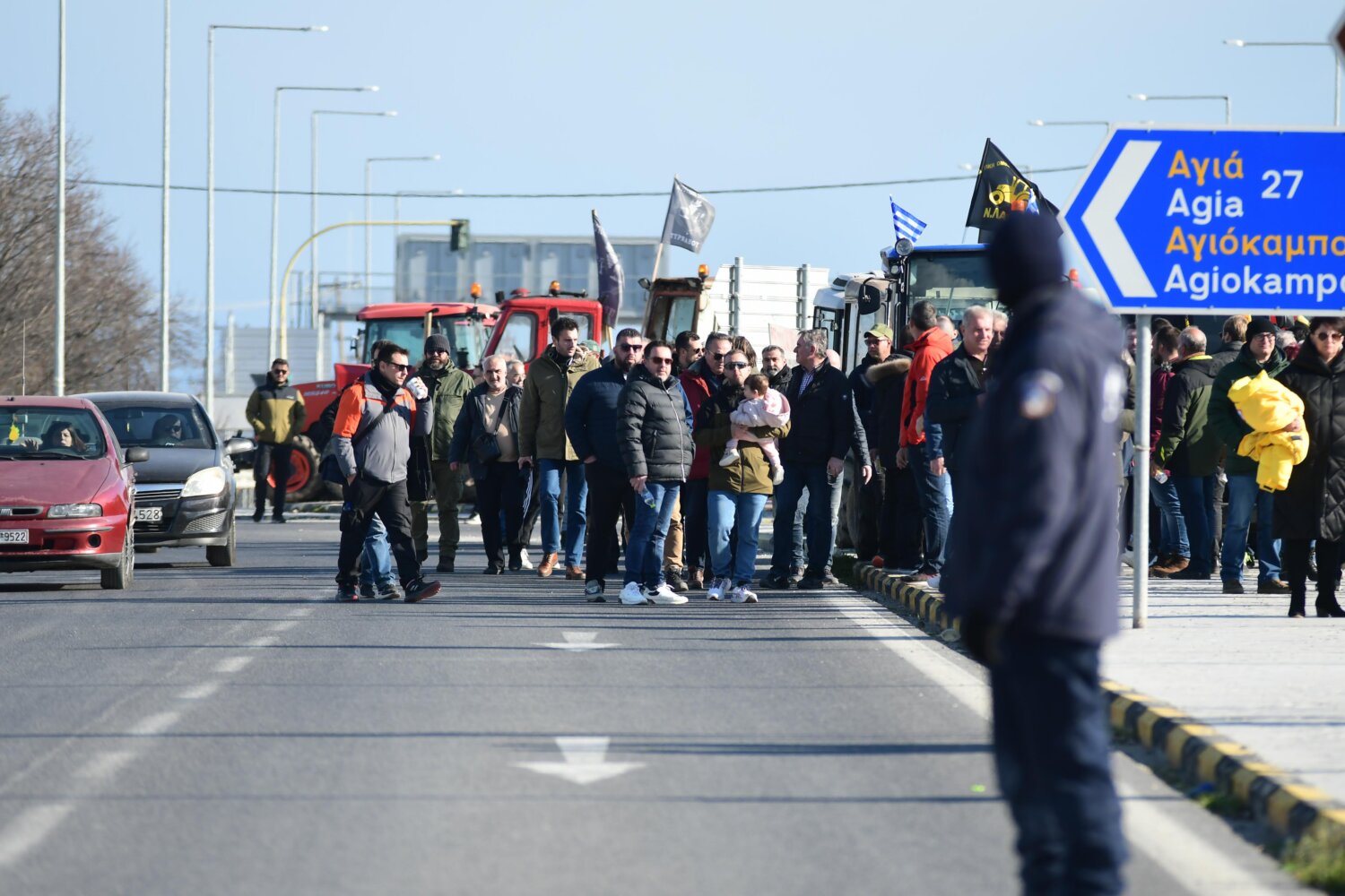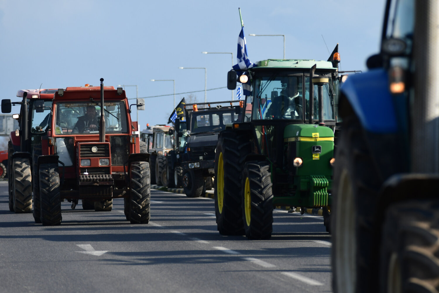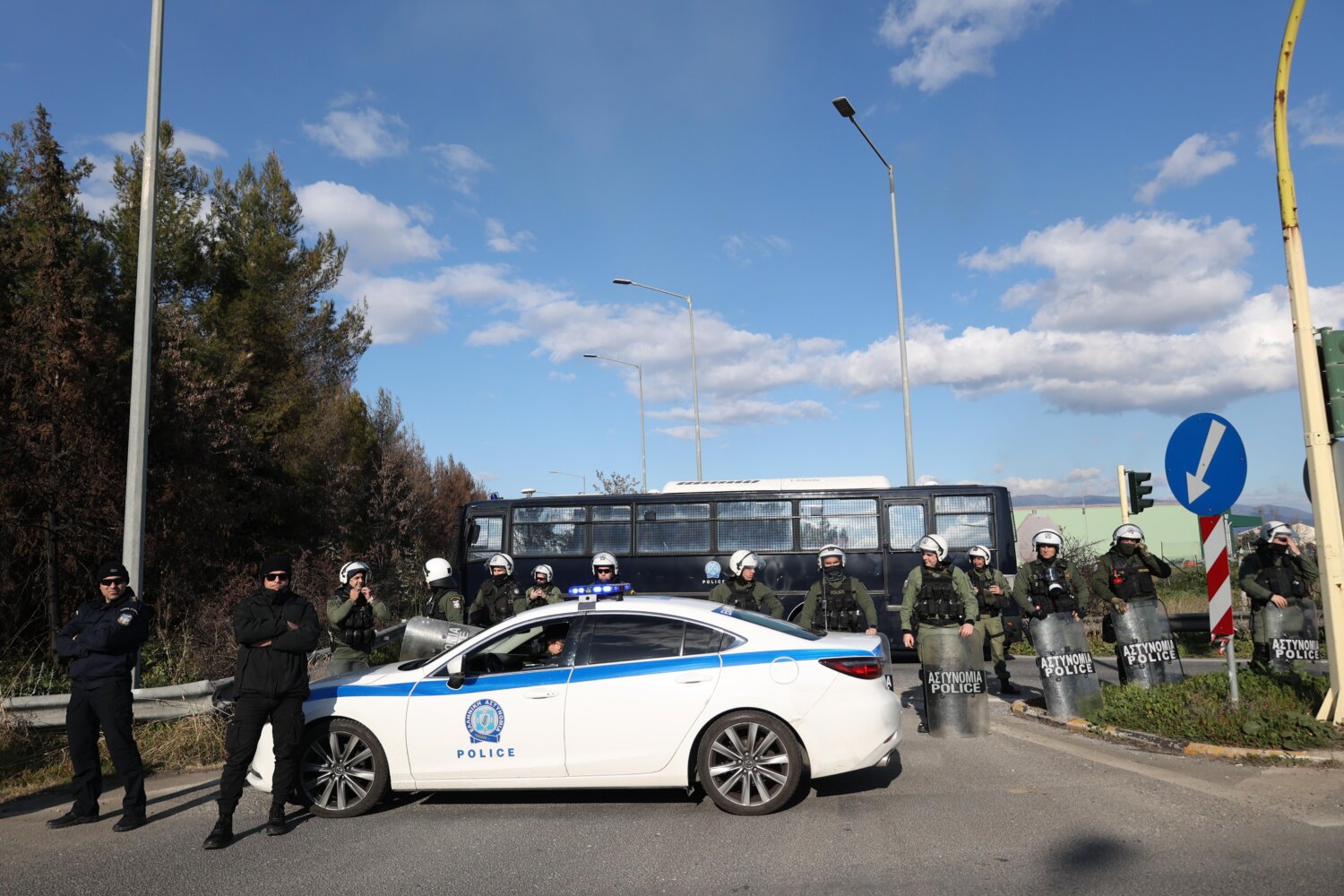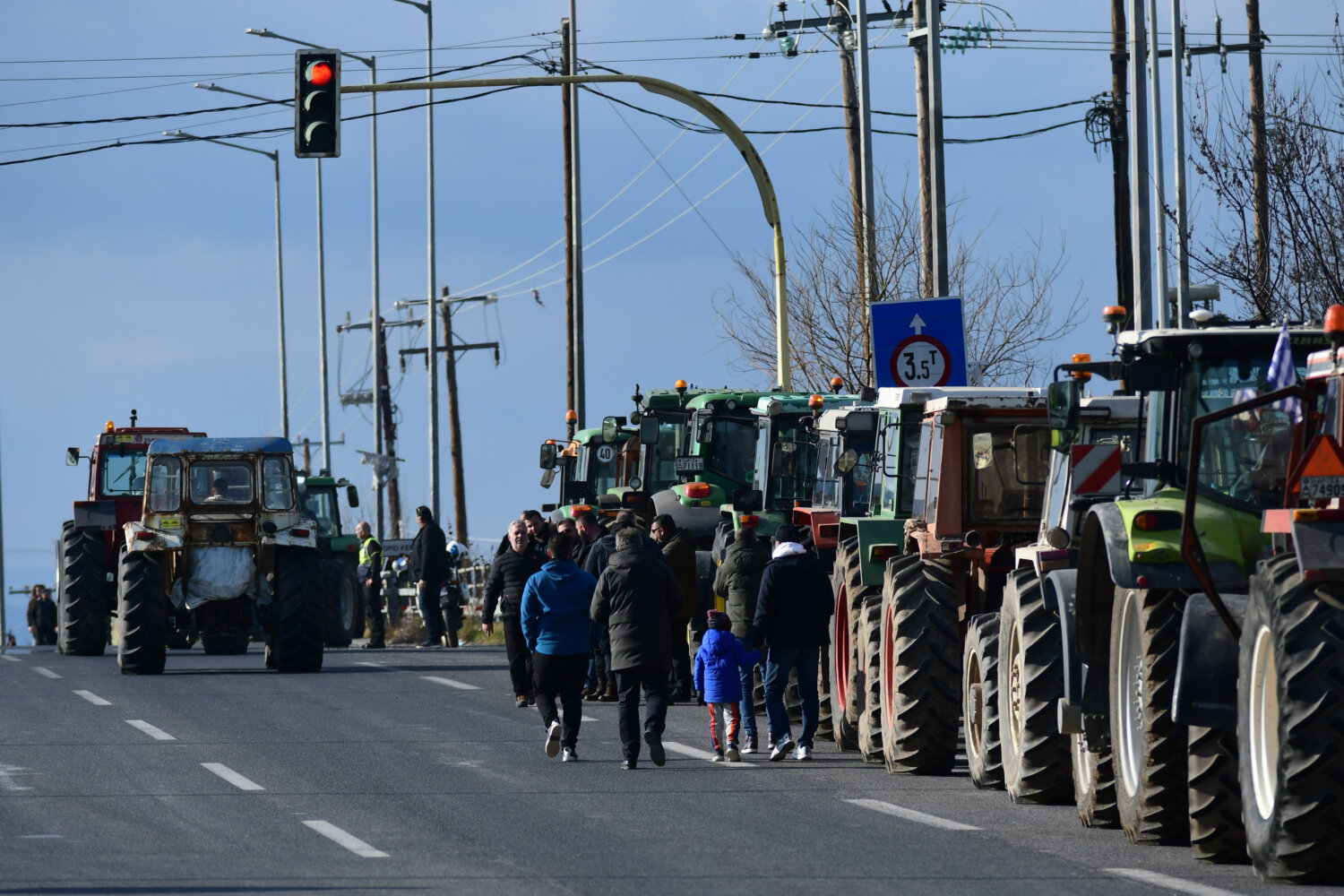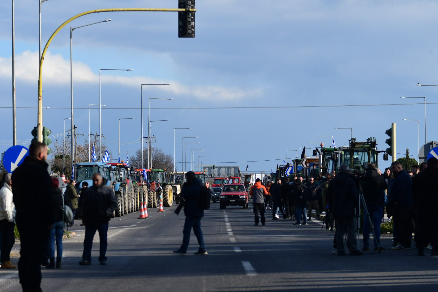 Τα τρακτέρ παρατάσσονται κάτω από την Εθνική Οδό, ενώ οι αστυνομικές δυνάμεις έχουν δημιουργήσει φραγμούς στις εξόδους ώστε να μην περάσουν.