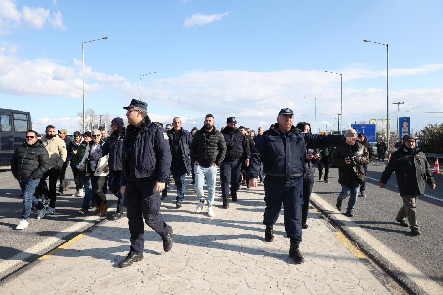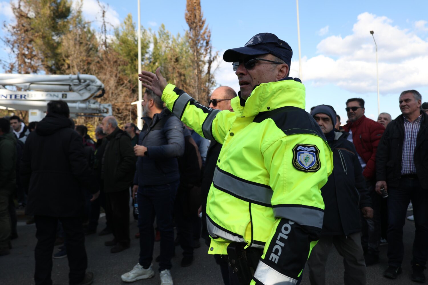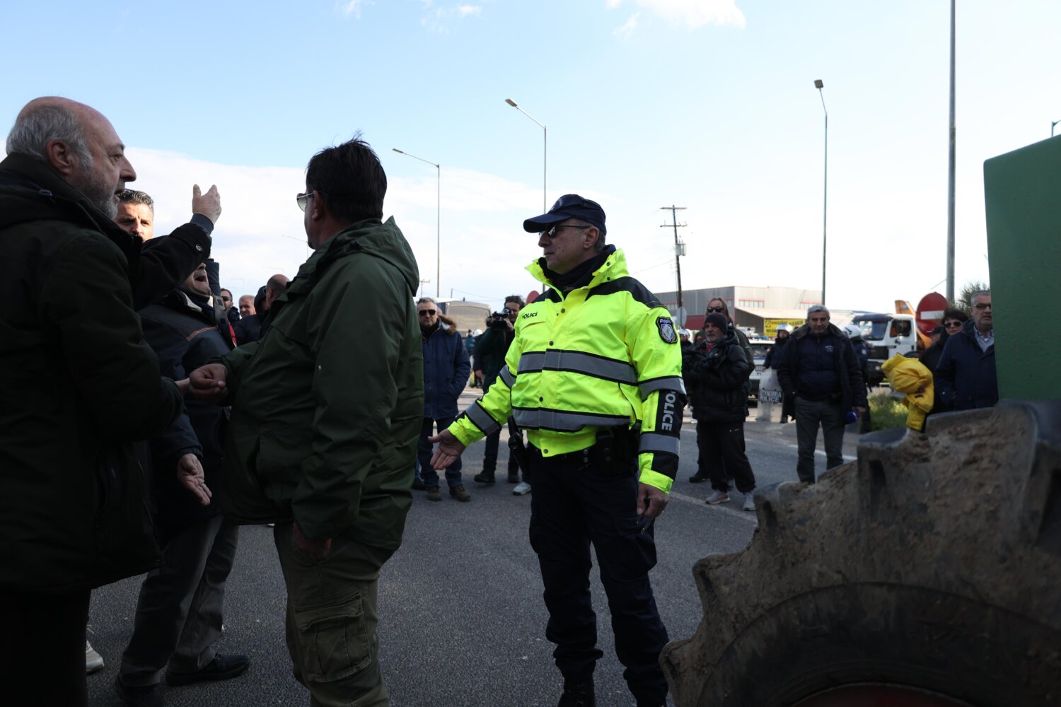 Κατά την άφιξη έγιναν διαβουλεύσεις με τους επικεφαλής της ΕΛ.ΑΣ. ώστε να ανέβουν συμβολικά οι αγρότες – με τα πόδια – στην Εθνική Οδό.