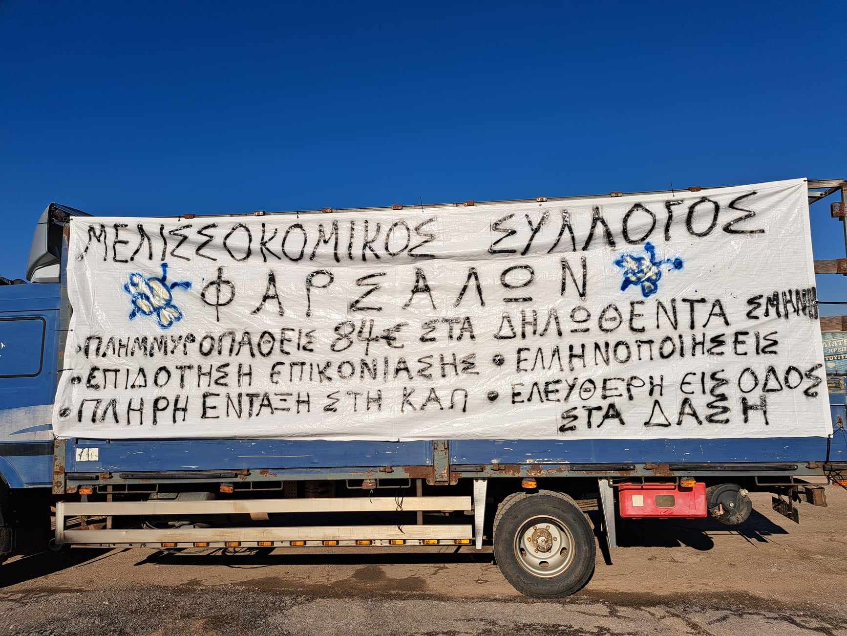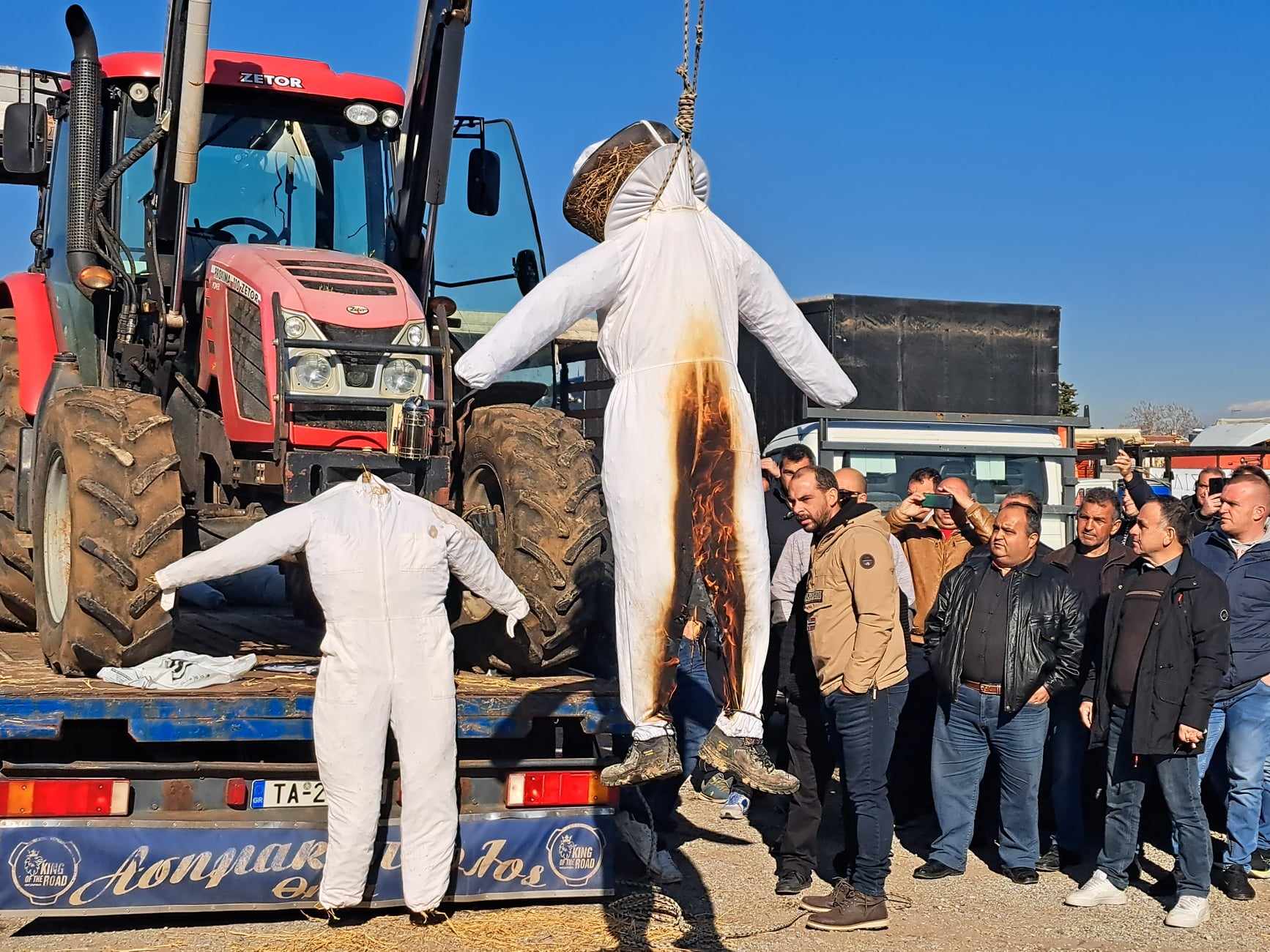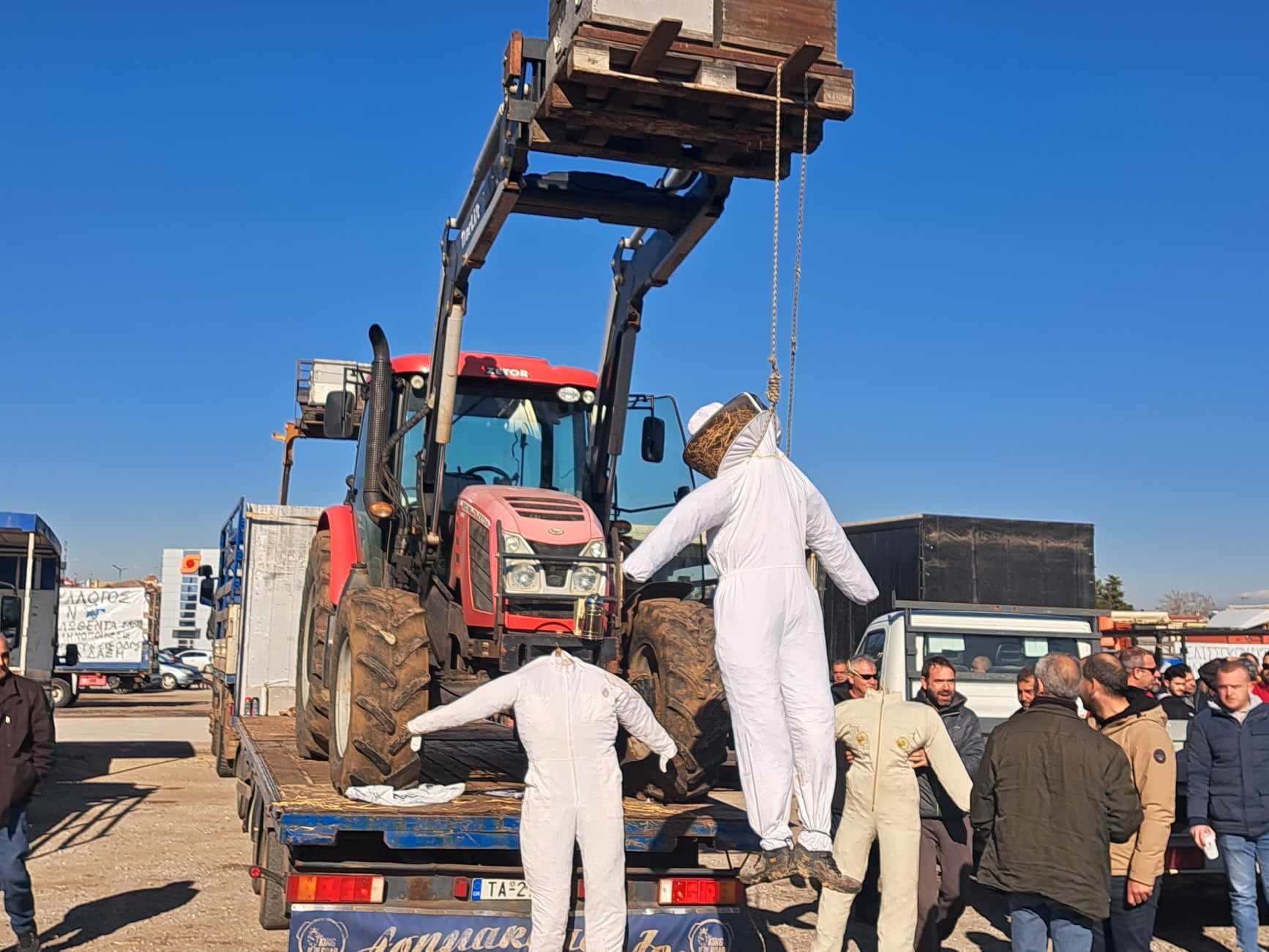 Η συγκέντρωση έγινε στον χώρο απέναντι από τη Σκεπαστή Αγορά της Νεάπολης, όπου οι μελισσοκόμου οργισμένοι έβαλαν φωτιά σε ένα ομοίωμα, φωνάζοντας «μας πνίξανε, μας κάψανε…»