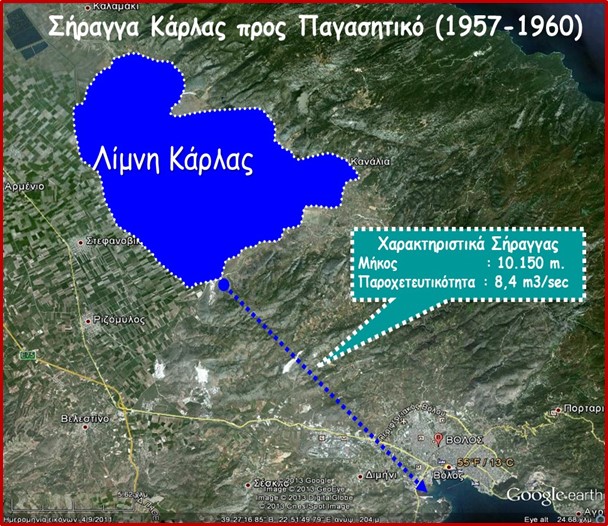 - Σε ότι αφορά στις κατακλυσμένες εκτάσεις και υποδομές, η μόνη υφιστάμενη λύση απομάκρυνσης των υδάτων είναι αυτή μέσω της σήραγγας προς τον Παγασητικό κόλπο.