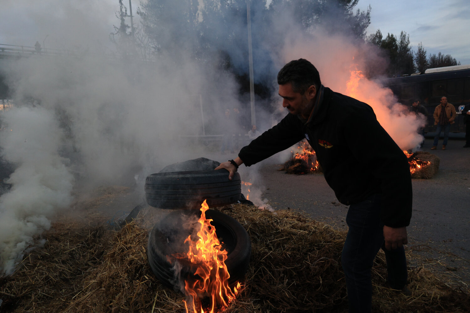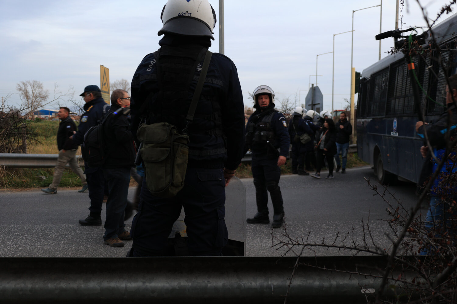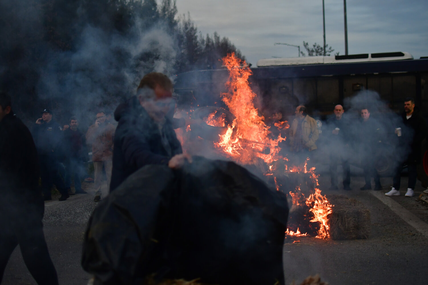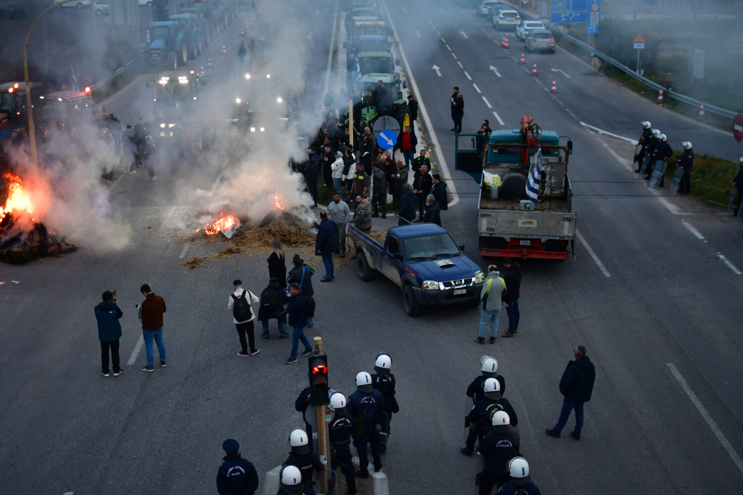 Σε αυτό το πλαίσιο επιχείρησαν να βγούνε με τα πόδια και με τρακτέρ στην εθνική οδό στο ύψος του Κόμβου του Πλατύκαμπου, ωστόσο εμποδίστηκαν από τον αστυνομικό φραγμό των ΜΑΤ με παρατεταγμένες κλούβες και διμοιρίες.