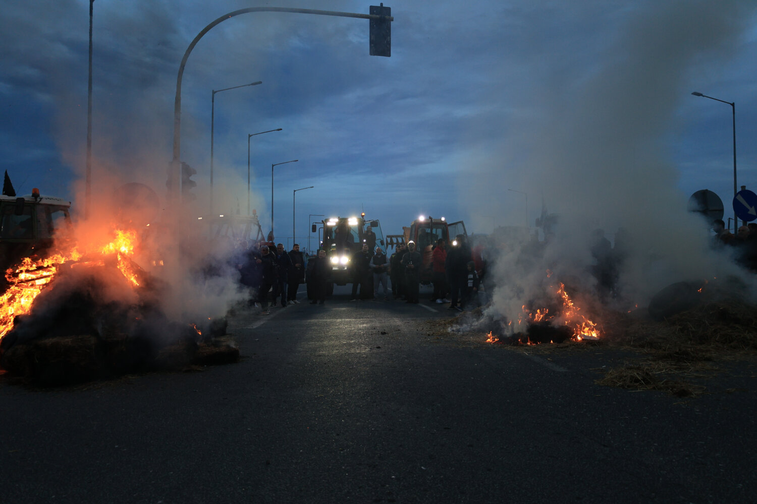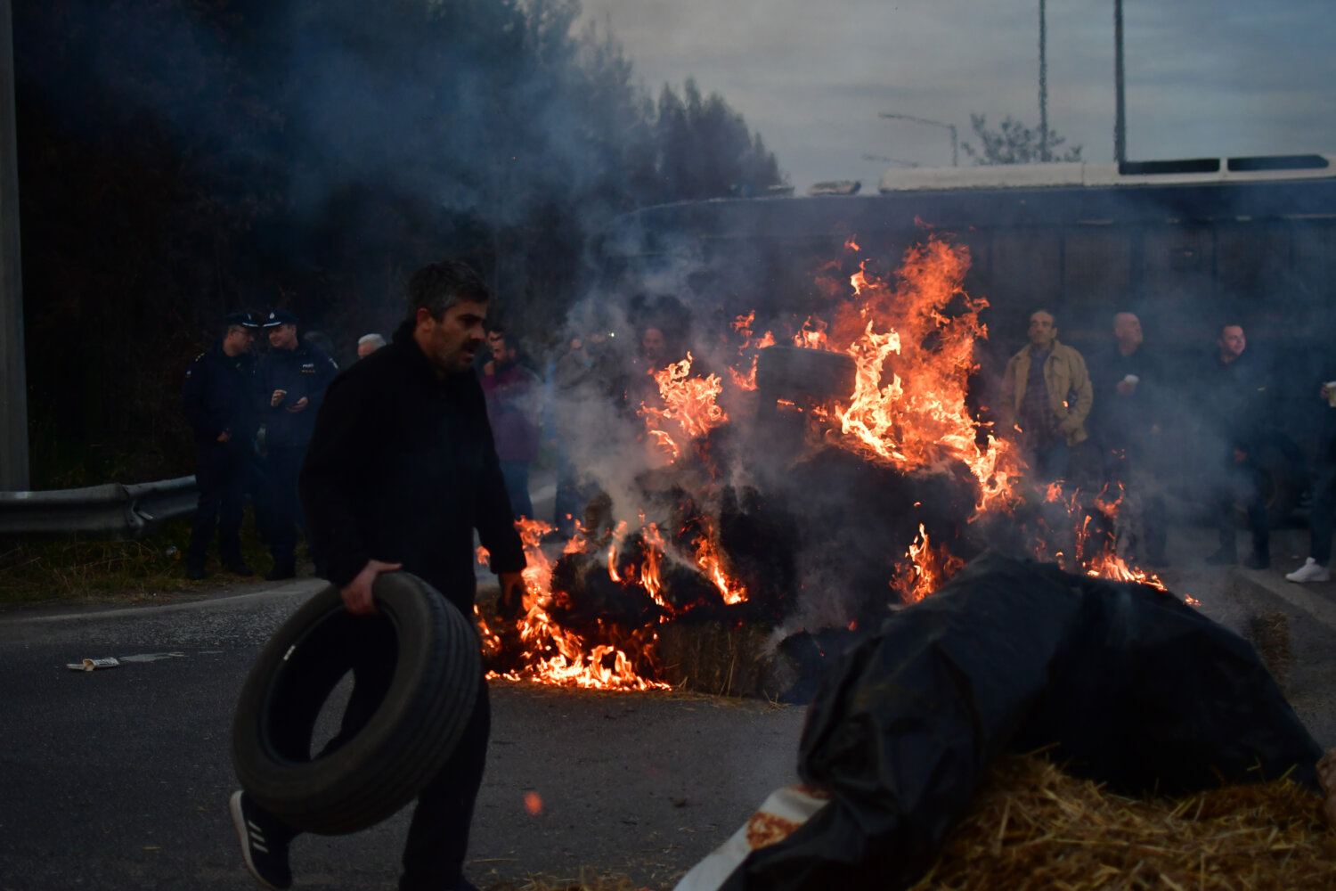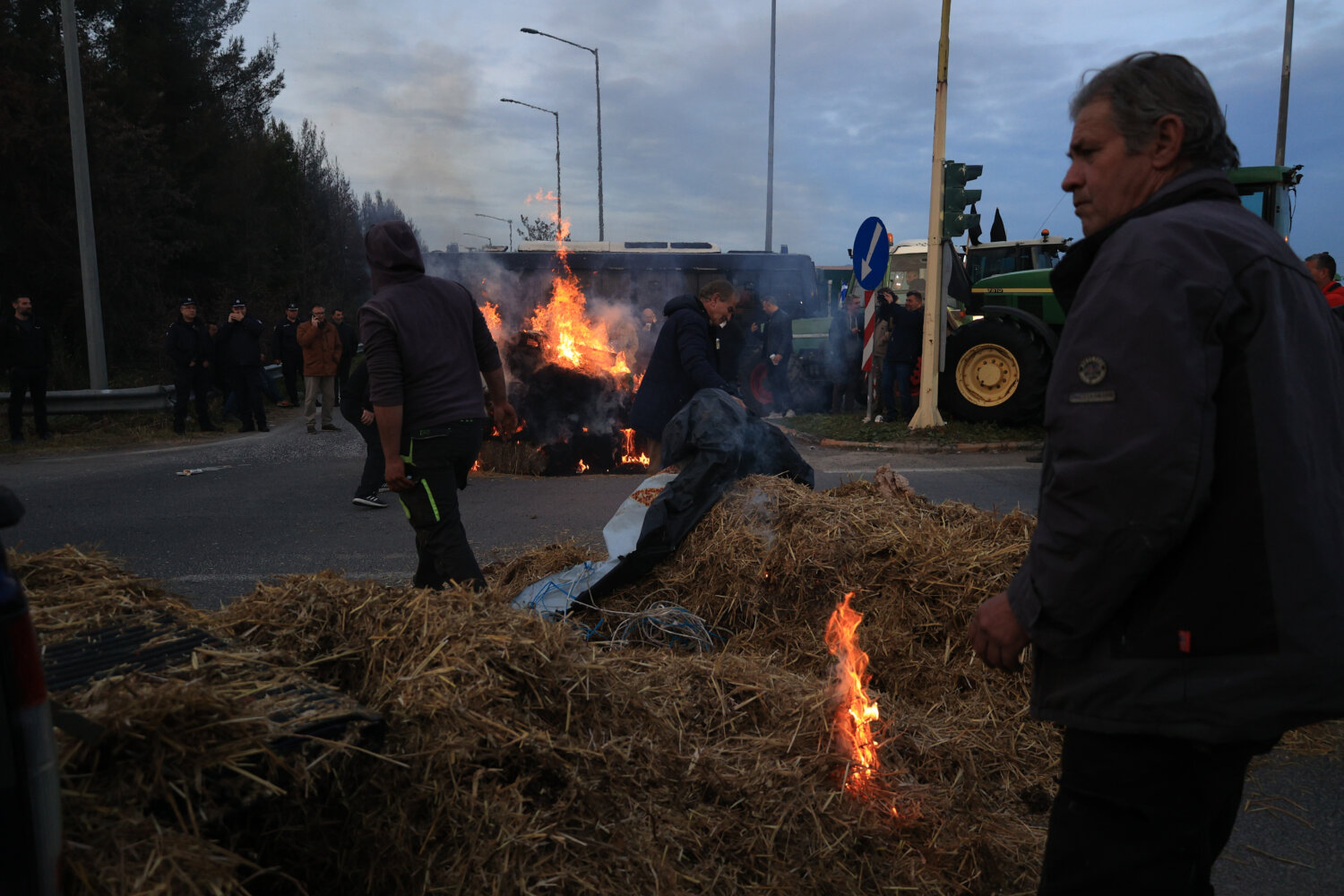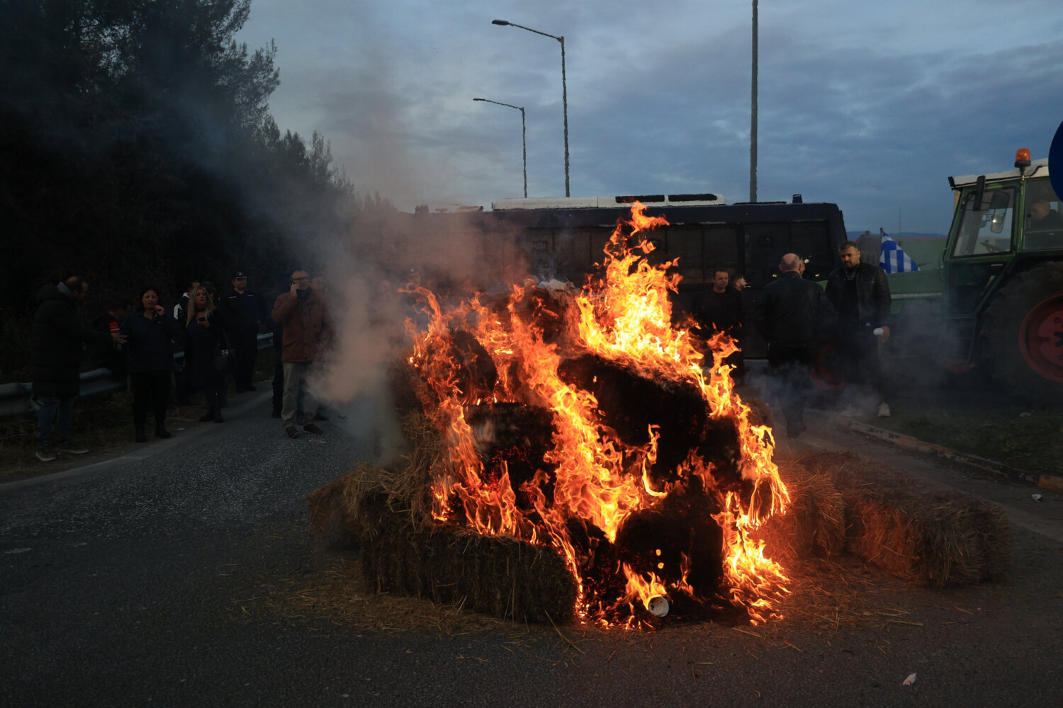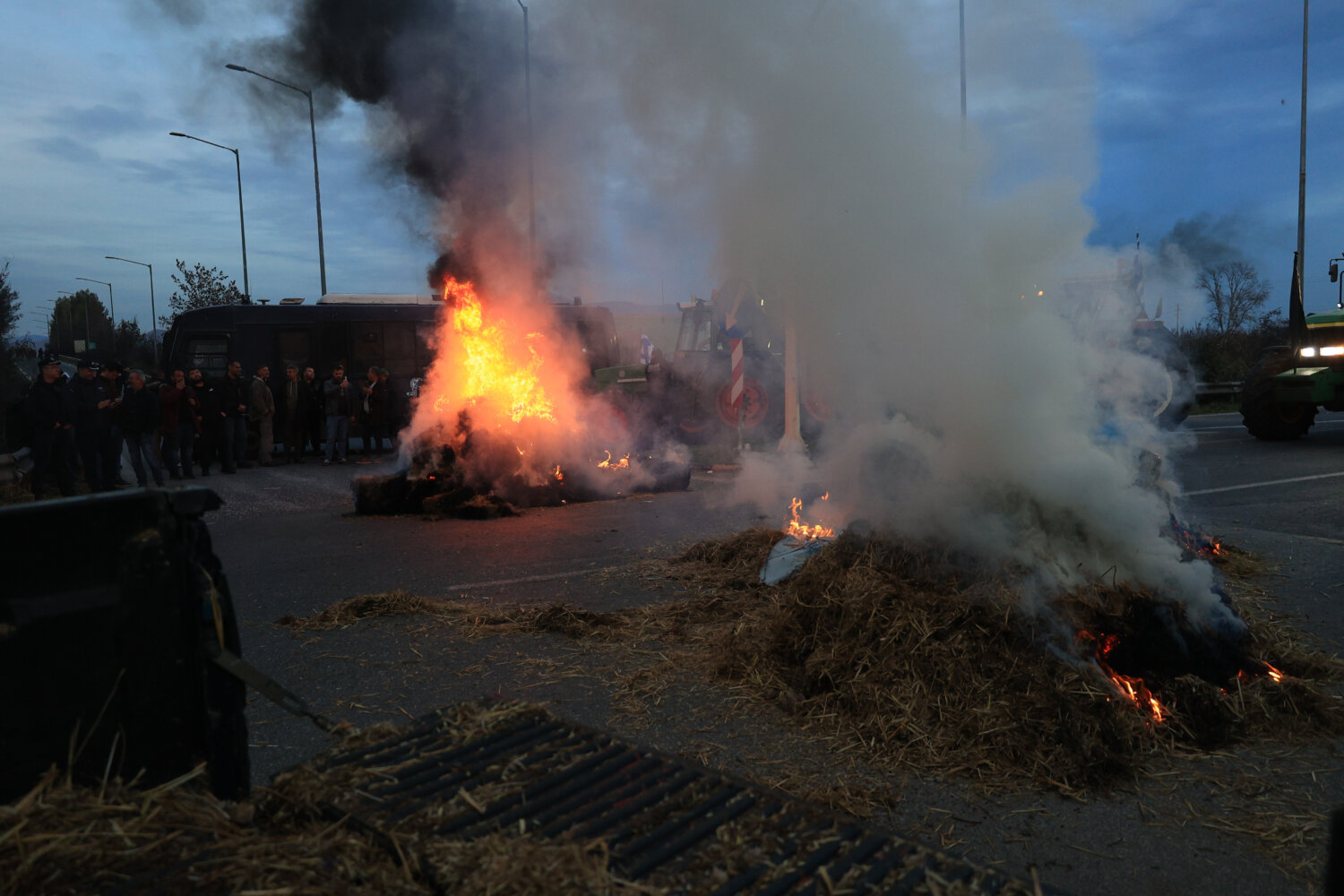 Ταυτόχρονα οι αγρότες παρατάσσοντας τρακτέρ και αγροτικά μηχανήματα απέκλεισαν και την παλιά εθνική οδό Λάρισας Βόλου ενώ άναψαν φωτιά σε μπάλες με άχυρα και παλέτες στην παλιά εθνική οδό