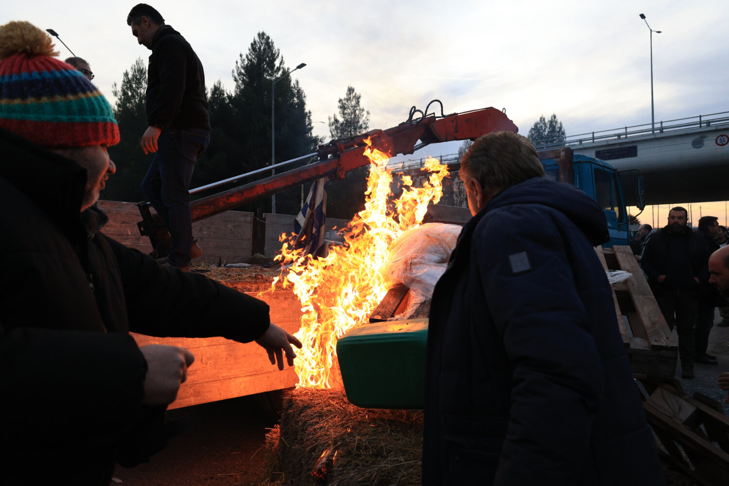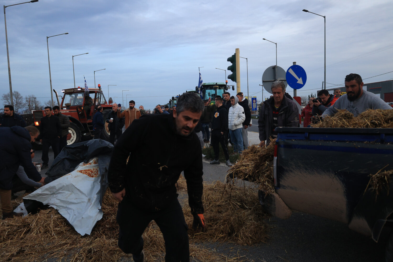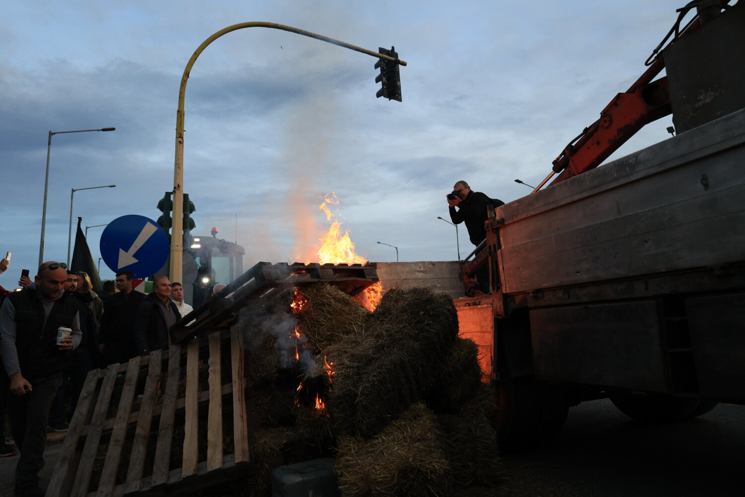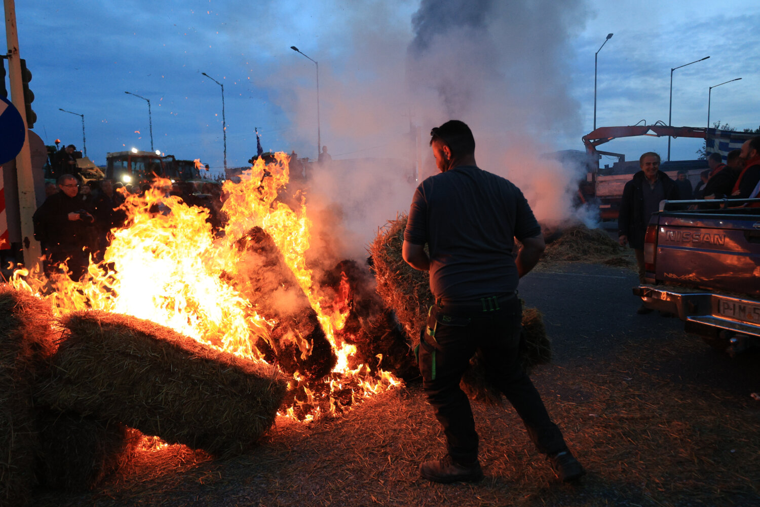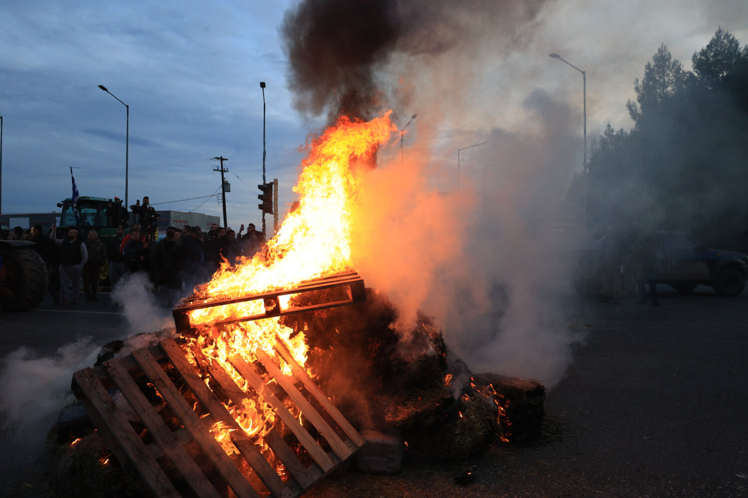 Ταυτόχρονα οι αγρότες παρατάσσοντας τρακτέρ και αγροτικά μηχανήματα απέκλεισαν και την παλιά εθνική οδό Λάρισας Βόλου ενώ άναψαν φωτιά σε μπάλες με άχυρα και παλέτες στην παλιά εθνική οδό