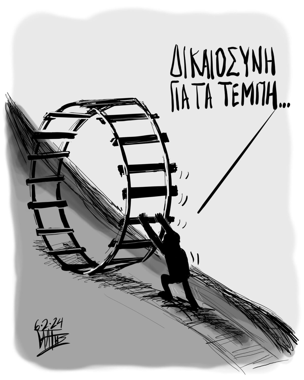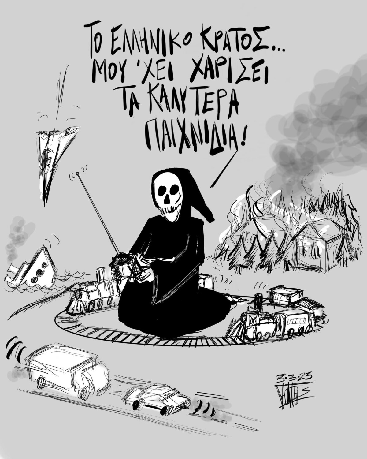 Ο Γιώργος Γαλίτης είναι ηθοποιός και γελοιογράφος. Τις πρώτες μέρες μετά την τραγωδία ένα σκίτσο του στο οποίο απεικονίζονταν οι σιδηροδρομικές γραμμές ως φέρετρα, έγινε viral και «ταξίδεψε» στο ίντερνετ. Ακολούθησαν κι άλλα σκίτσα – γελοιογραφίες για την υπόθεση των Τεμπών, τα οποία καταδεικνύουν απόλυτα τα όσα ακολούθησαν μέχρι σήμερα, ενώ ο ταλαντούχος αυτός άνθρωπος δεν σταματάει μέσω αυτής της μορφής τέχνης να θίγει ευαίσθητα ζητήματα και να σατιρίζει την ελληνική πραγματικότητα γενικότερα.