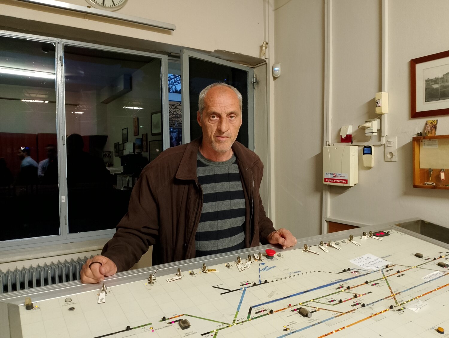 Στο δωμάτιο του Σταθμαρχείου ο Γιώργος Ζήνδρος μας εξηγεί τη λειτουργία του πίνακα τηλεχειρισμού. Στο δωμάτιο αυτό βρισκόταν τη νύχτα της 28ης ο προφυλακισμένος σήμερα σταθμάρχης. «Δύο κουμπιά να πατούσε δεν θα γινόταν αυτό» μας λέει ο κ. Ζήνδρος. Ο έμπειρος σταθμάρχης αναφέρεται στην αυτόματη χάραξη δρομολογίου κάτι το οποίο δεν έκανε τότε ο συνάδελφός του. Αντιθέτως, παραβλέποντας όσα αναφέρει ο Γενικός Κανονισμός Κυκλοφορίας πραγματοποίησε όλες τις ενέργειες χειροκίνητα με αποτέλεσμα να στείλει την επιβατική αμαξοστοιχία στη γραμμή καθόδου και να συγκρουστεί στη συνέχεια μετωπικά με την εμπορική αμαξοστοιχία.