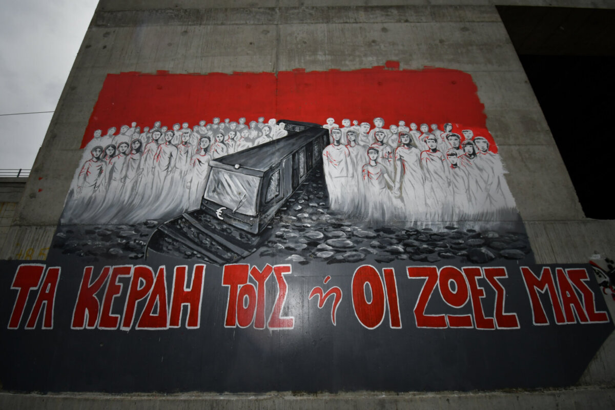 Μία τοιχογραφία μνήμης, που «απαιτεί» να μην ξεχαστεί ποτέ η σιδηροδρομική τραγωδία των Τεμπών, ετοιμάστηκε το Σάββατο 24 Φεβρουαρίου από μέλη του Εργατικού Κέντρου Λάρισας σε συνεργασία με το Εικαστικό Επιμελητήριο Ελλάδας, για να τιμήσουν τη μνήμη των 57 ανθρώπων που έχασαν τη ζωή τους.