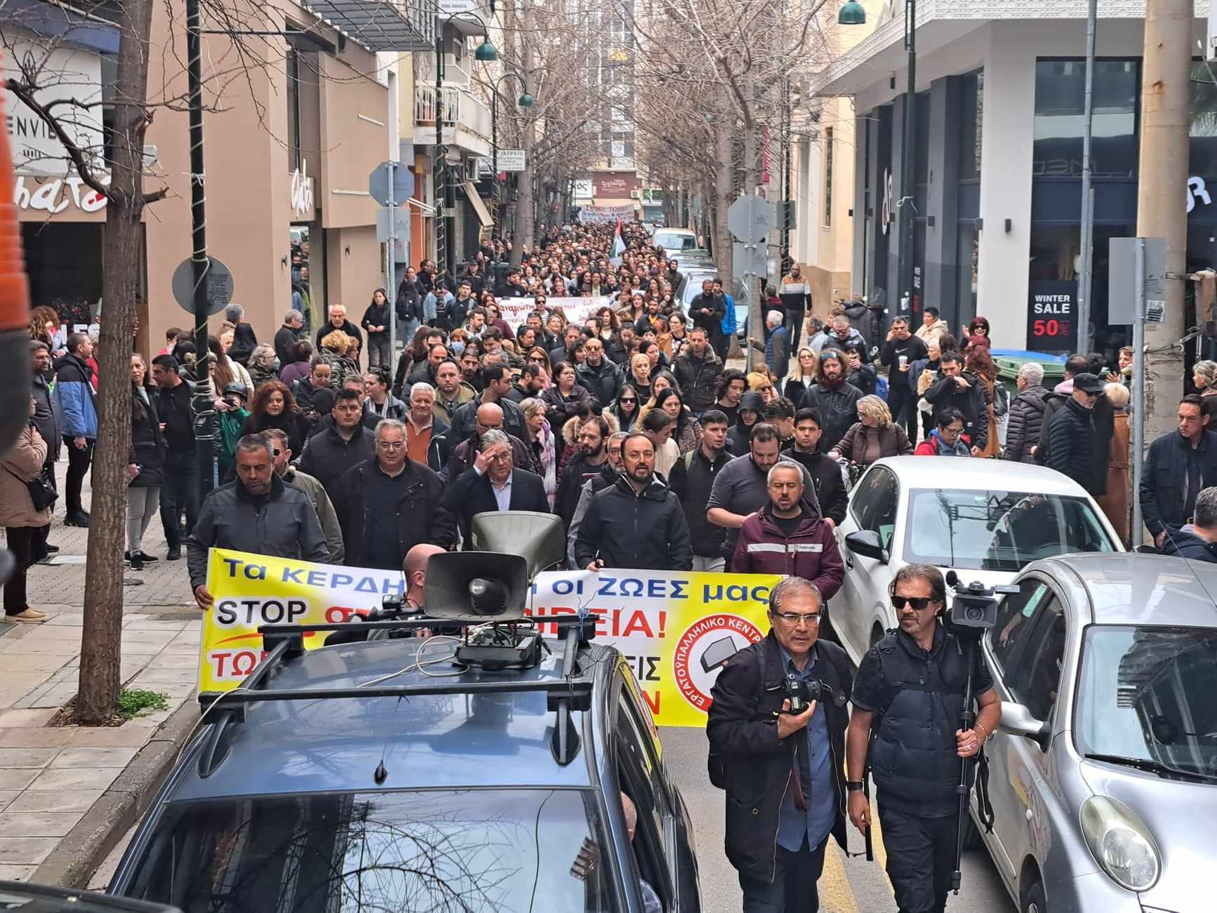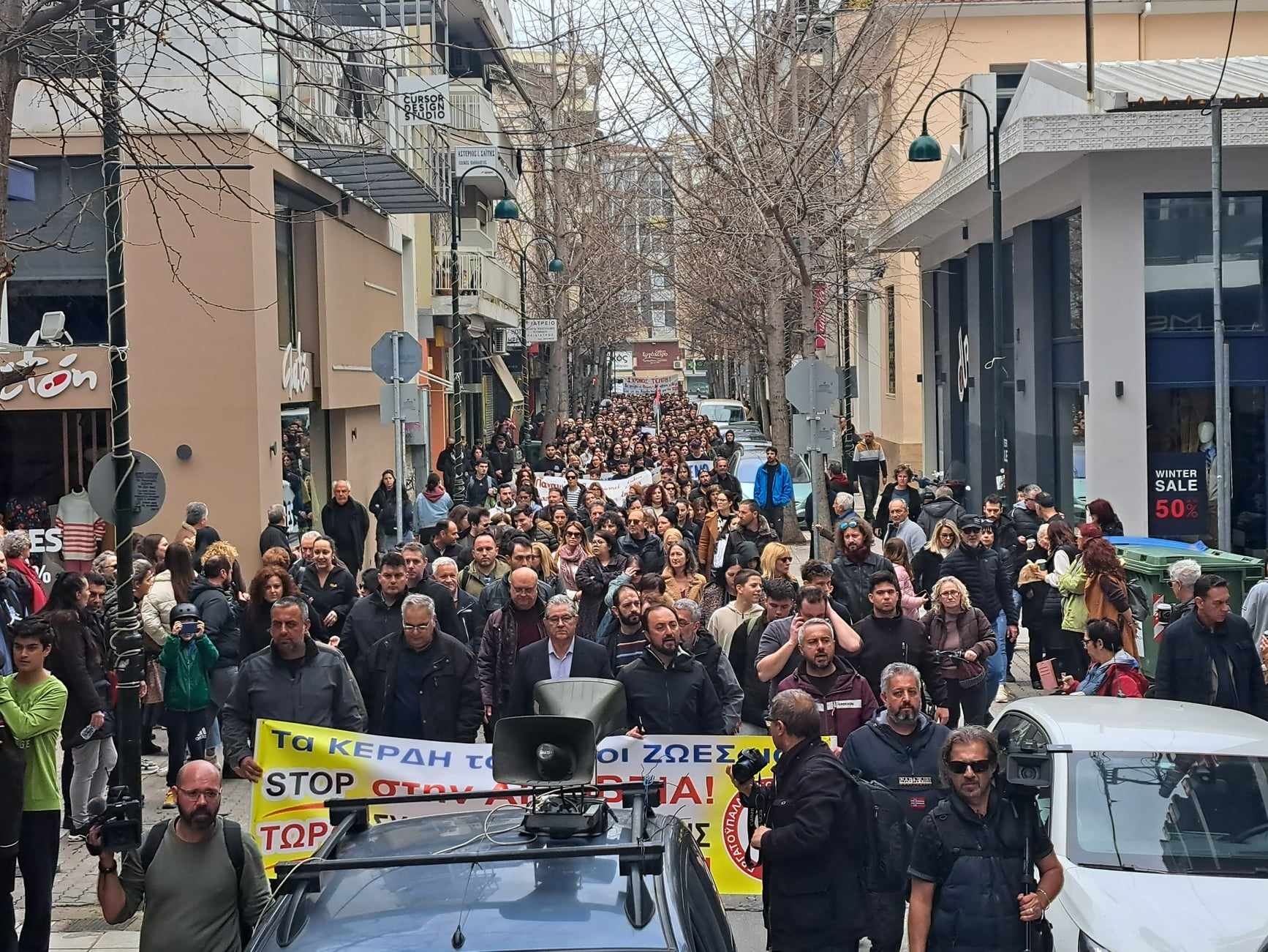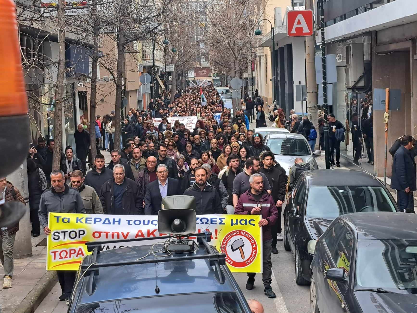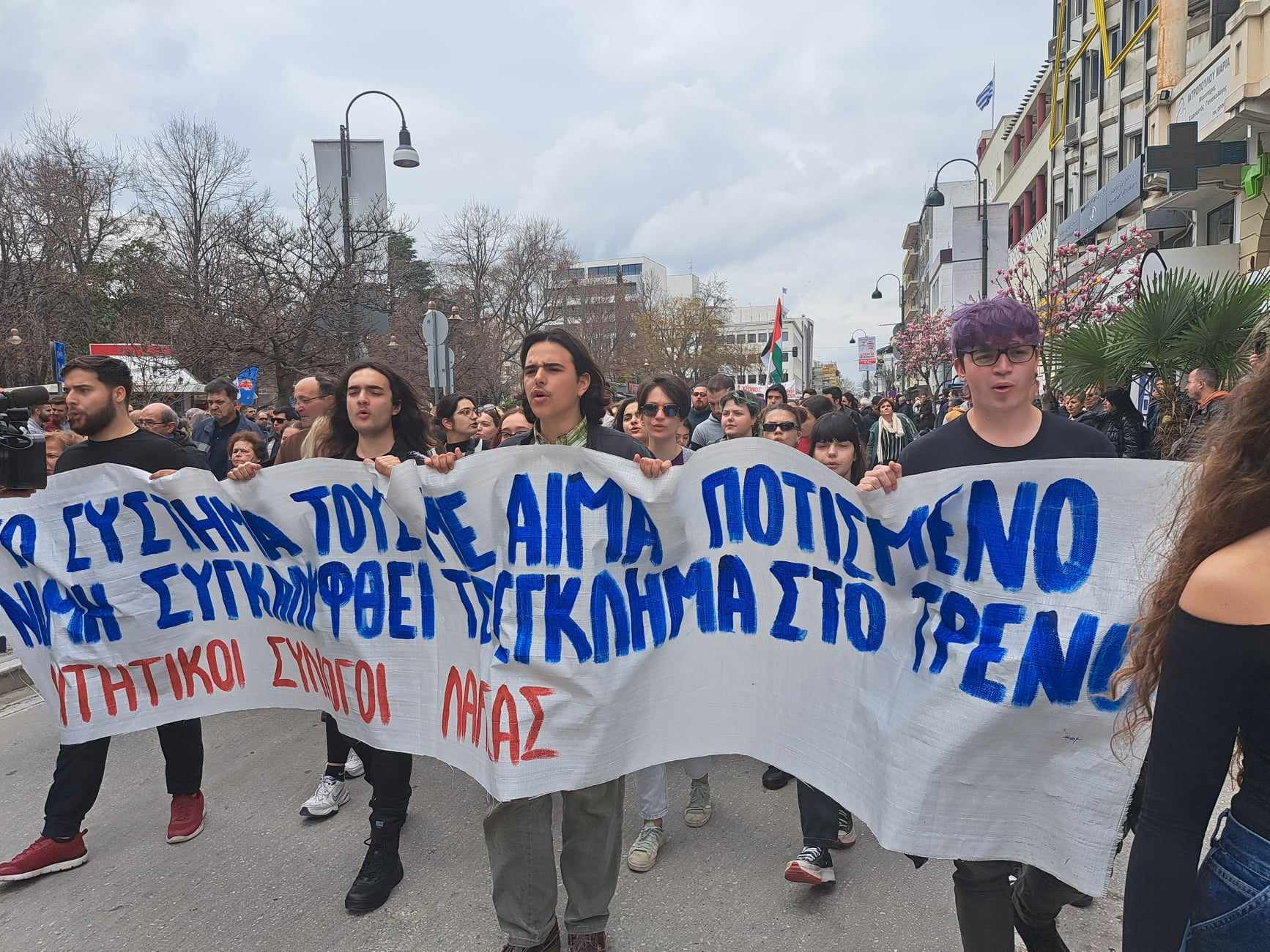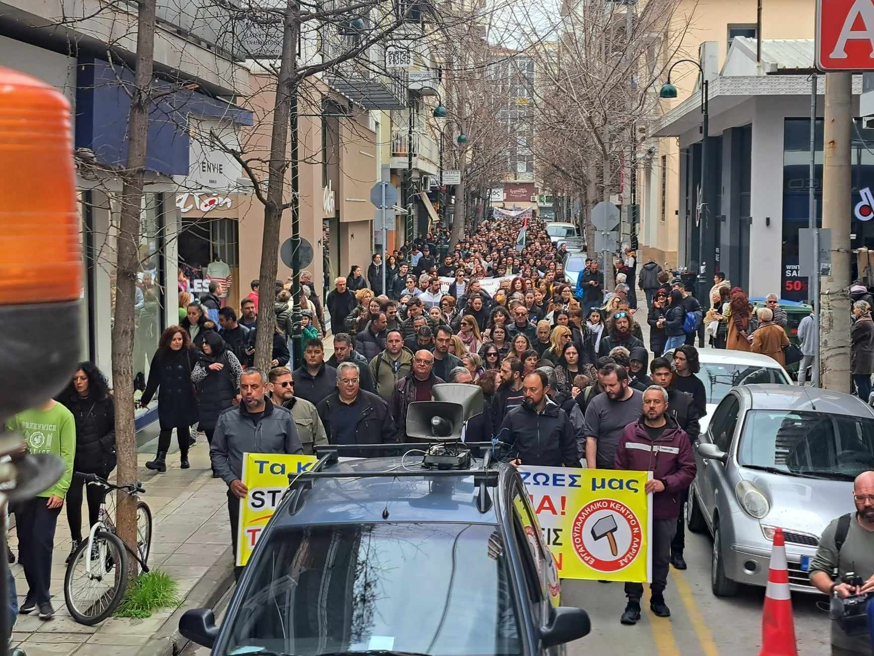 Δείτε εικόνες από το μεγάλο συλλαλητήριο που βρίσκεται σε εξέλιξη και κατευθύνεται προς τον Σιδηροδρομικό Σταθμό Λάρισας: