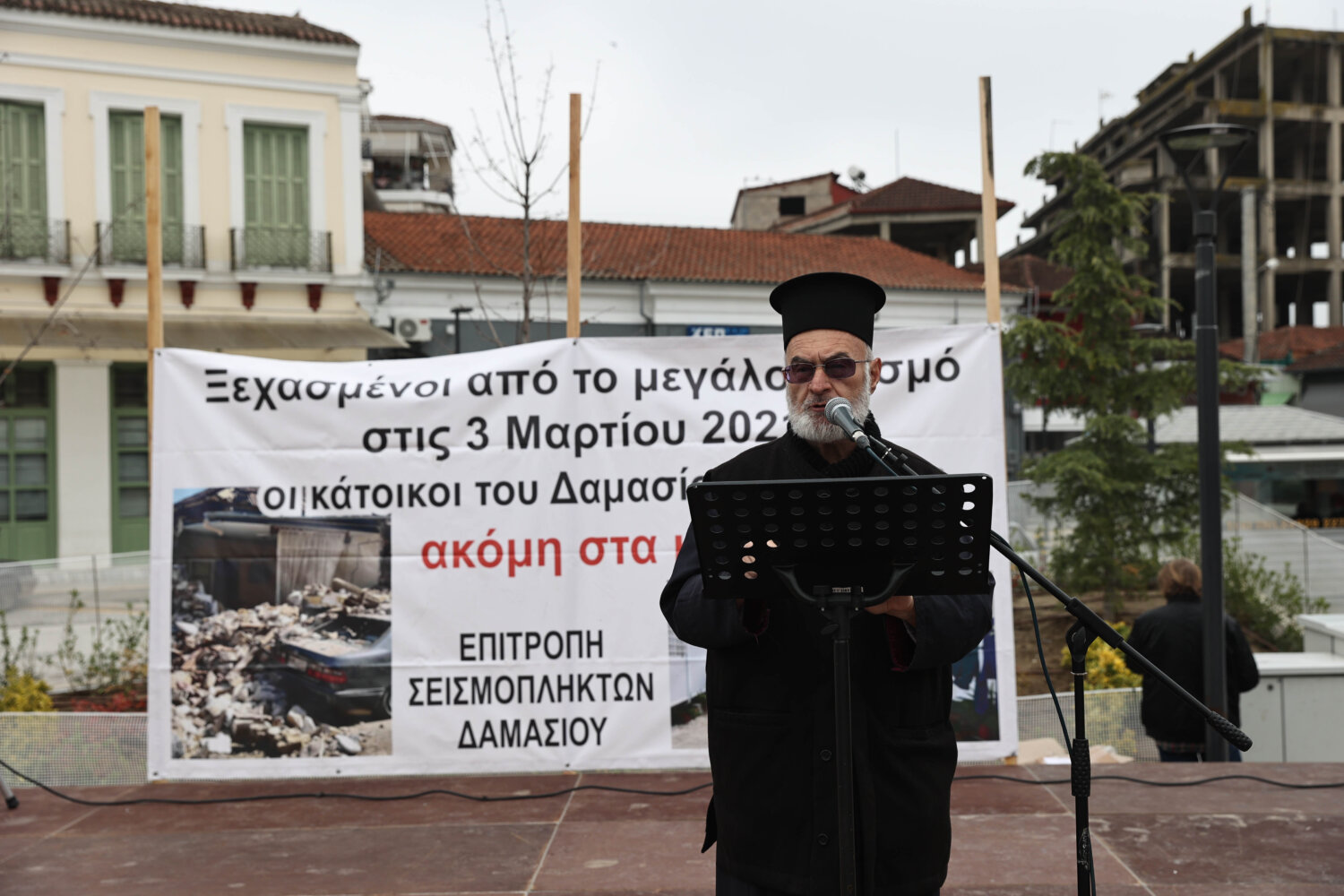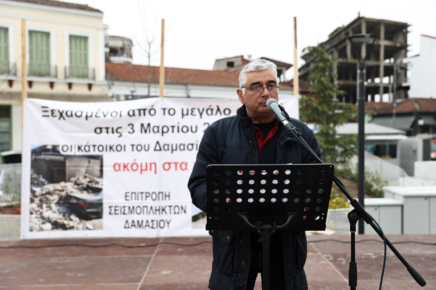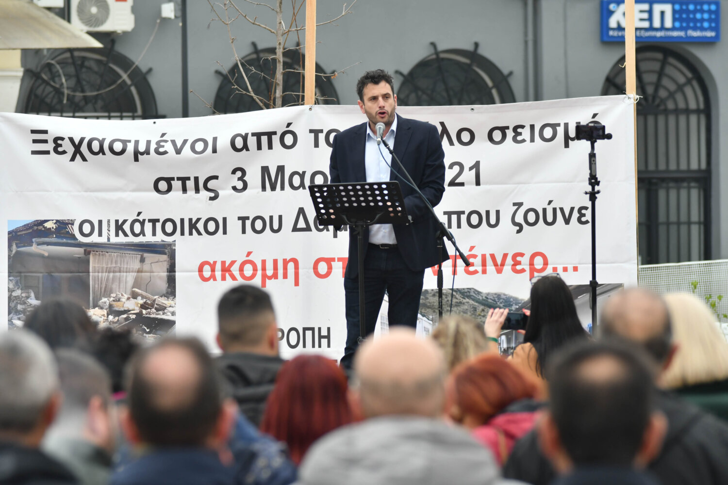 Στη συνέχεια, ο Βάιος Τούλας, κάτοικος του Δαμασίου που ακόμα και σήμερα ζει σε κοντέινερ, εξήγησε πως κι αυτός και ο γιος του περιμένουν ακόμα και σήμερα την αρωγή για να μπουν στα σπίτια τους.