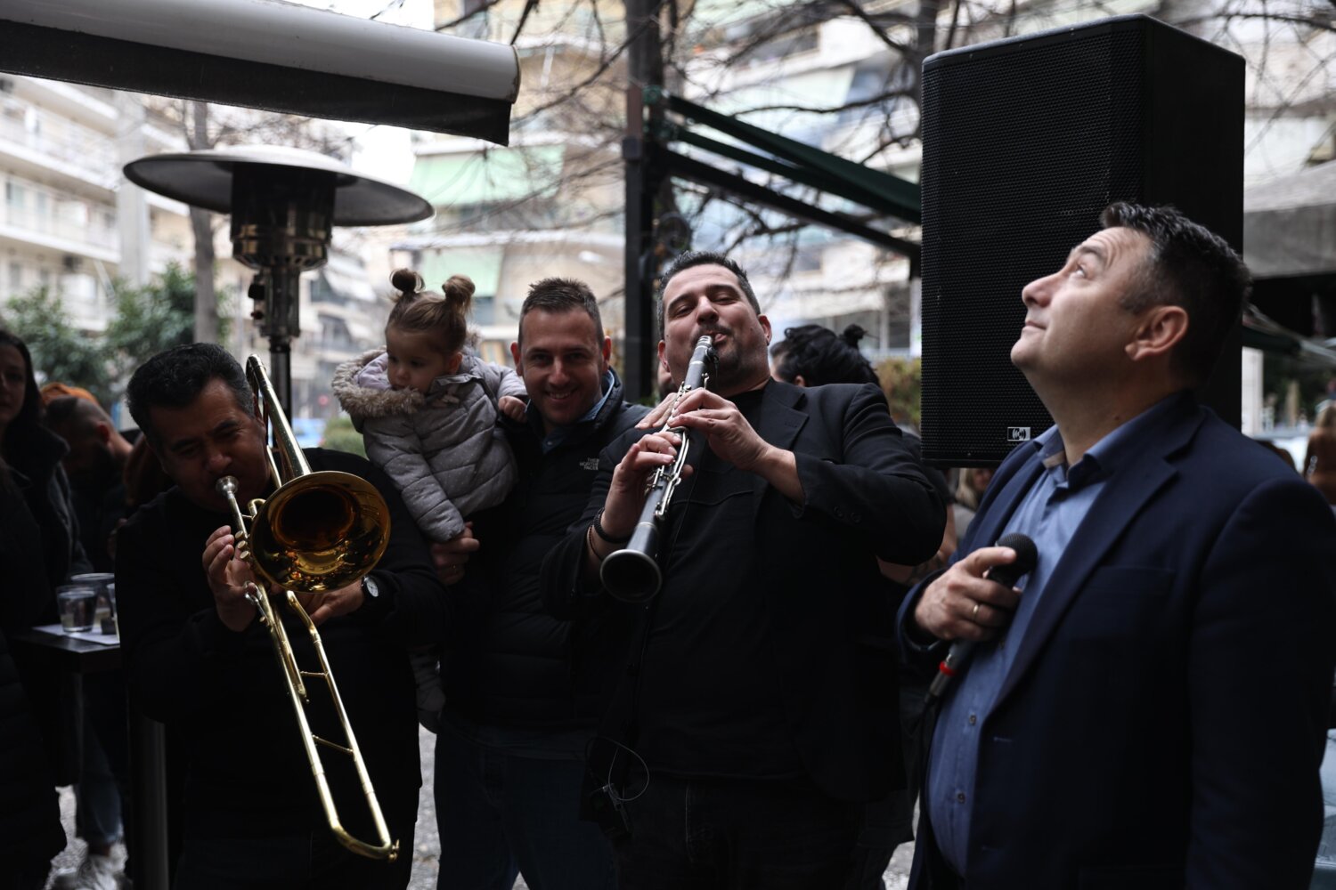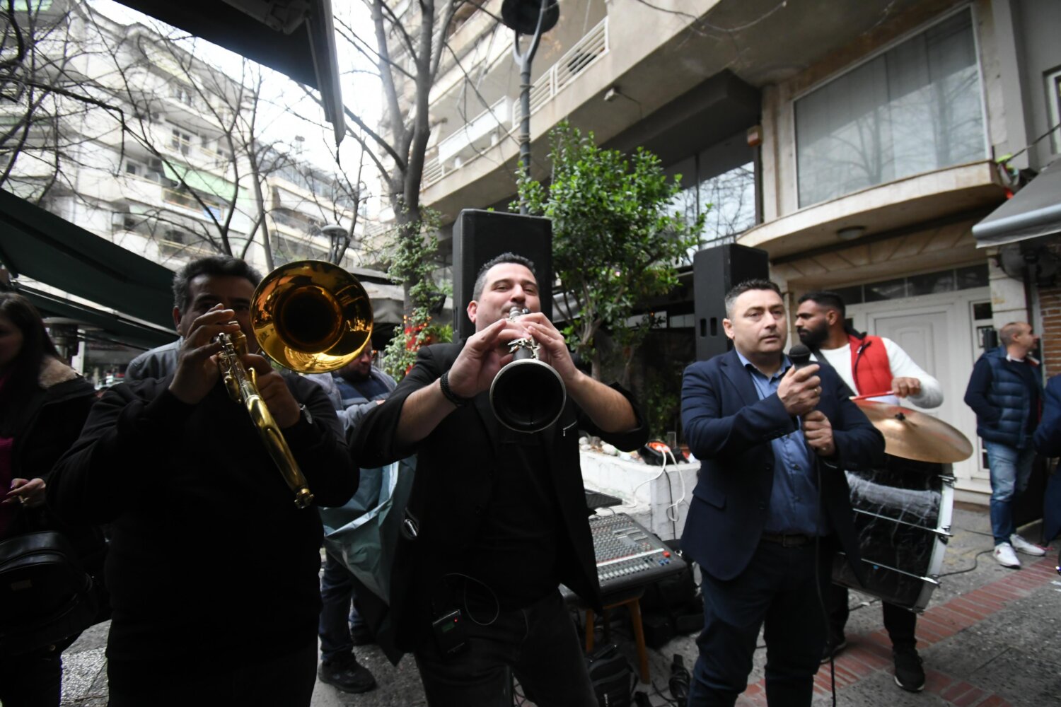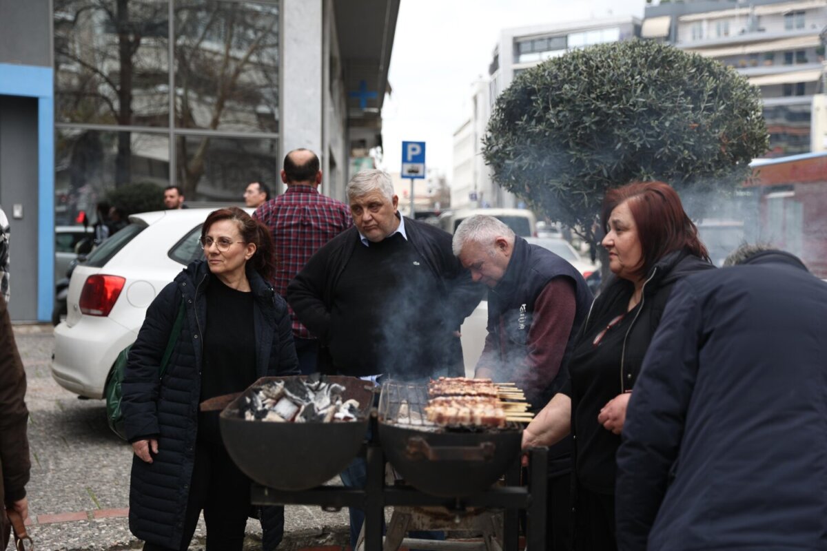 Οι ψησταριές έχουν πάρει… φωτιά, ενώ οι ψιχάλες της βροχής δεν δείχνουν ικανές να κάμψουν το κέφι με τον ρυθμό στην πλατεία Εβραίων να δίνουν ορχήστρες με χάλκινα.