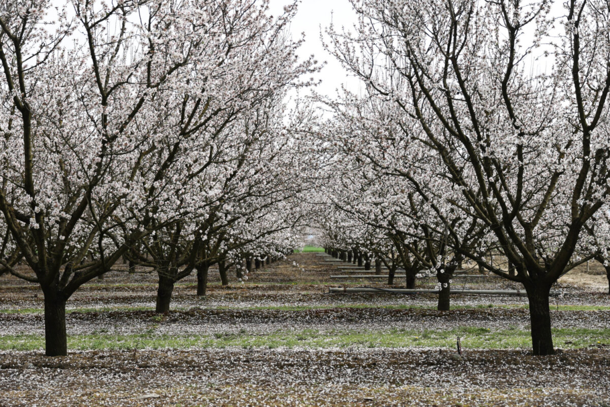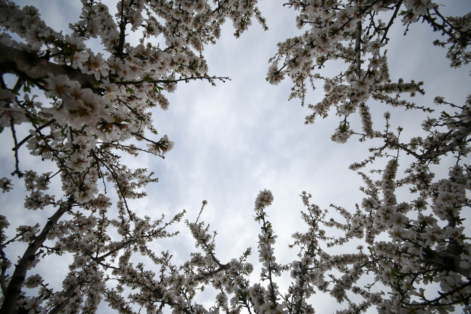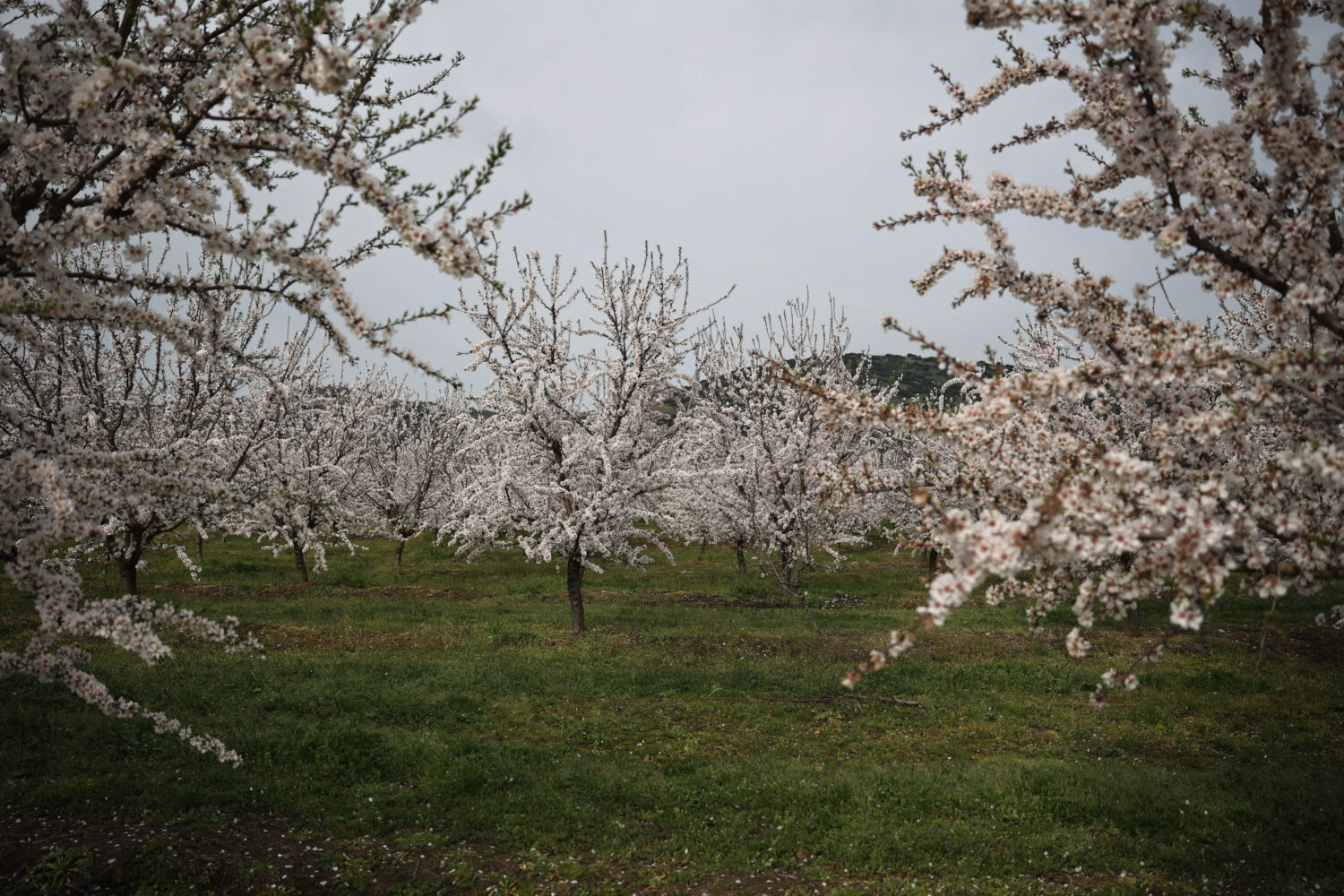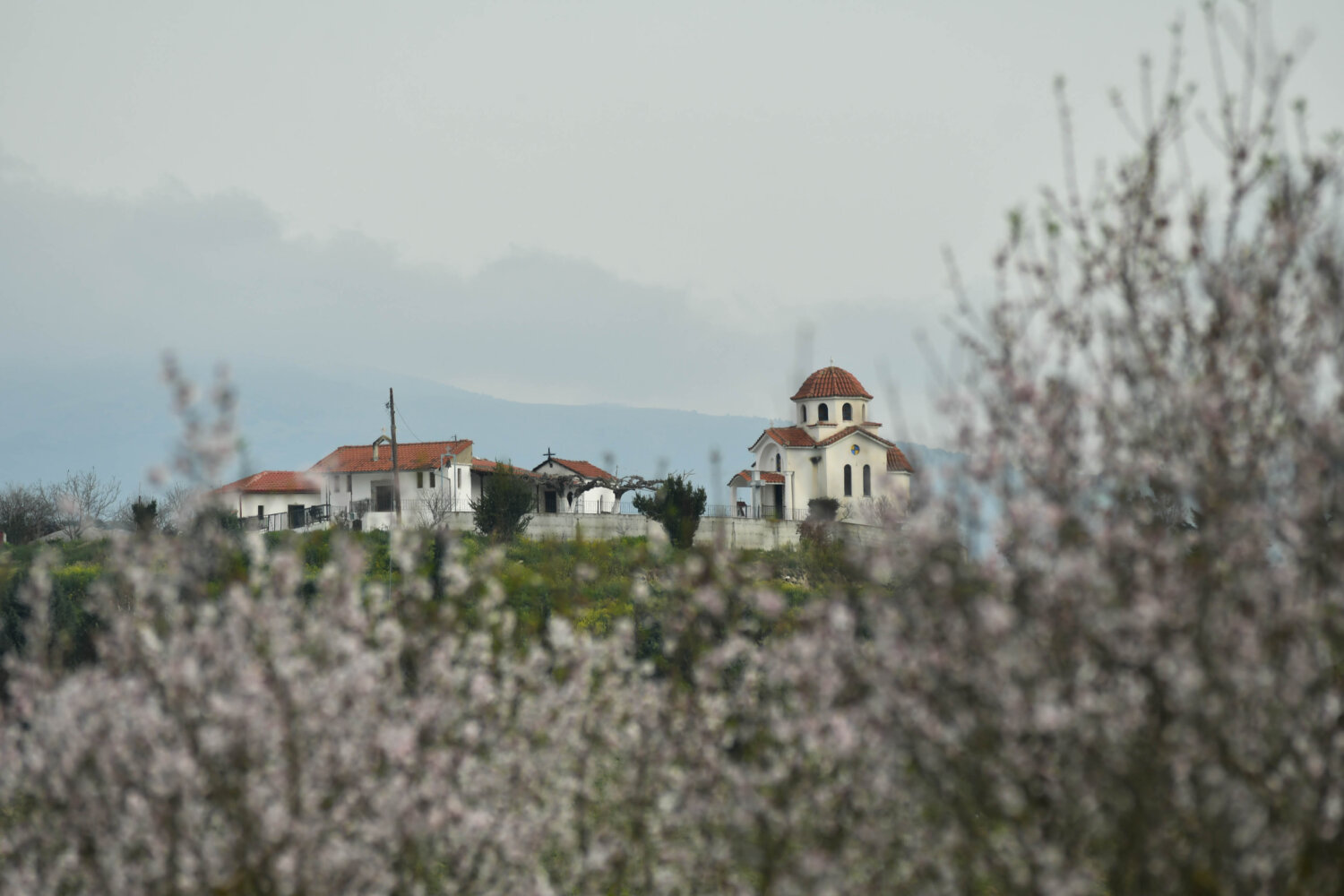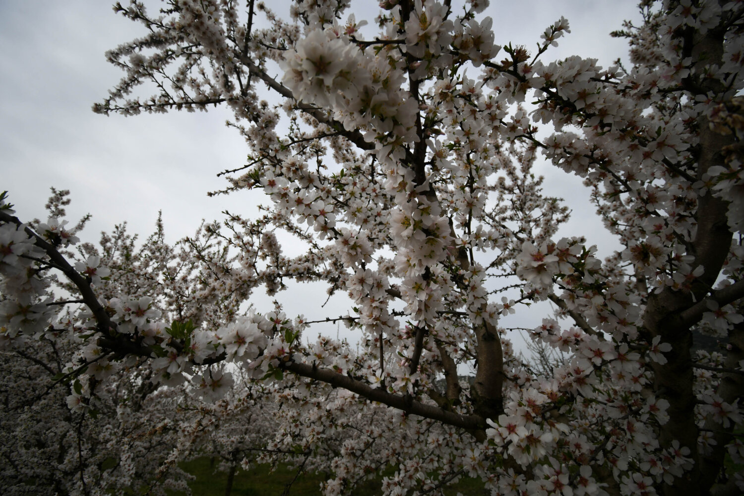 Οι «νύφες» – ανθισμένες αμυγδαλιές βρίσκονται στα ριζά του Κισσάβου και τα εναλλασσόμενα χρώματα λευκό, ροζ εναρμονίζονται με το πράσινο της φύσης σε έναν καμβά, έργο τέχνης της φύσης.