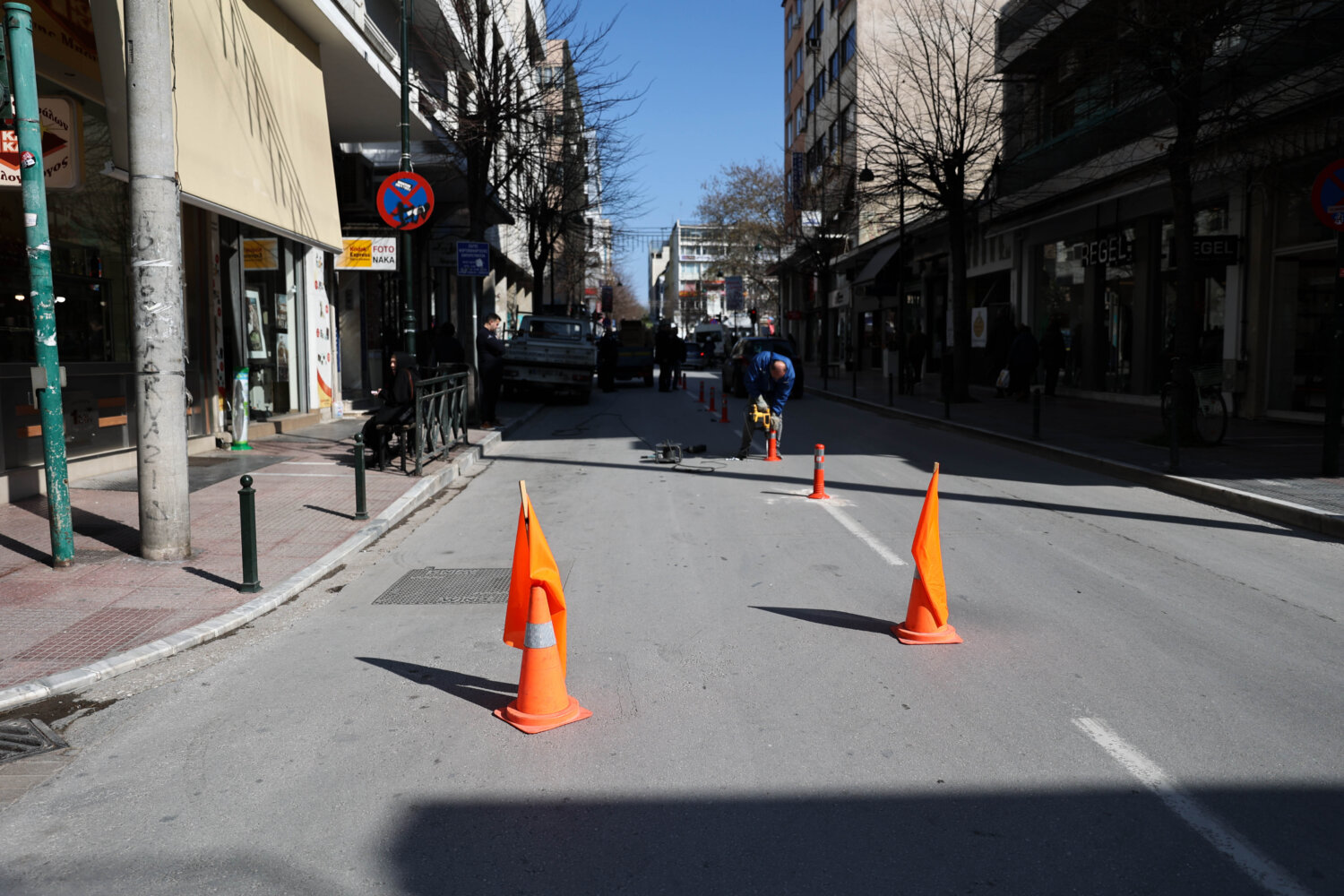 Από νωρίς το πρωί της Τετάρτης συνεργεία του Δήμου Λαρισαίων, υπό την επίβλεψη του αρμοδίου αντιδημάρχου Κυκλοφοριακών Παρεμβάσεων Ευάγγελου Παπαλέξη, τοποθετούν κολονάκια στο τμήμα της οδού Παπαναστασίου από τη διασταύρωση με την Παπακυριαζή και κατεύθυνση προς το Δημαρχείο.