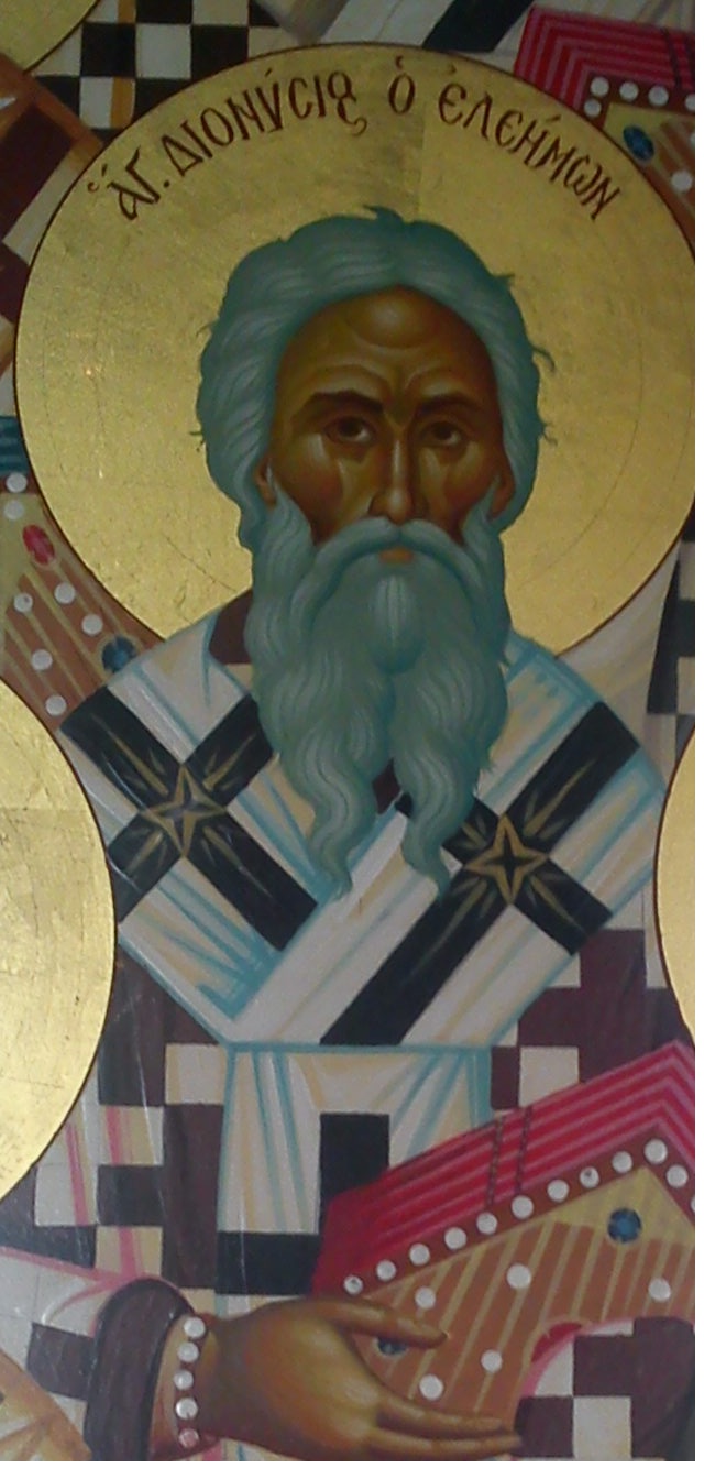 ΓΕΝΙΚΕΣ ΠΛΗΡΟΦΟΡΙΕΣ: Για τον άγιο Διονύσιο τον Ελεήμονα, μητροπολίτη Λαρίσης και κτήτορα της μονής Αγίου Νικολάου Αναπαυσά των Μετεώρων, δεν διασώζονται αγιολογικά κείμενα, ακολουθίες, συναξάρια ή βίος, ούτε σημειώνεται πουθενά ημερομηνία εορτασμού της μνήμης του. Συνεπώς δεν έχουμε αναλυτικές πληροφορίες για τη ζωή και τη δράση του. Εικονίζεται σε τοιχογραφία του 1627 στο αριστερό κλίτος του ναού των Αγίων Αναργύρων Τρικάλων, όπου κατά χρονολογική σειρά από αριστερά προς τα δεξιά τοιχογραφούνται επτά «άγιοι αρχιεπίσκοποι Λαρίσης»: ο άγιος Θωμάς ο Γοριανίτης (1264-1273), ο άγιος Κυπριανός ο Θαυματουργός (Οκτ. του 1318), ο άγιος Αντώνιος ο Λογιώτατος και Νέος Θεολόγος (Ιουν. 1340 – 21 Μαρτ. 1362), ο άγιος Βησσαρίων ο Πρώην (στα 1489 -90 μετατέθηκε από την Επισκοπή Δημητριάδος στη μητρόπολη Λαρίσης), ο άγιος Διονύσιος ο Ελεήμων, ο άγιος Μάρκος ο Ησυχαστής (1499 – τέλη 1526 0 αρχές 1527) και ο άγιος Βησσαρίων του Σωτήρος (πρόκειται για γνωστό μητροπολίτη Βησσαρίωνα Β’, ιδρυτή και κτήτορα της μονής του Σωτήρος των Μεγάλων Πυλών, της γνωστής ως μονής Δουσίκου, ο οποίος αρχιεράτευσε στη Λάρισα από Μάρτ. 1527-13 Σεπτ. 1540). Οι επτά παραπάνω μητροπολίτες, με την ίδια ακριβώς σειρά, αναφέρονται στον ογκώδη κώδικα, υπ’ αριθμ. 59 της μονής Δουσίκου Τρικάλων, που είναι το «βρέβιον» ή ο «ιερός κώδιξ» του μοναστηρίου: Αρχιερείς Λαρισαίοι πόσοι αγίασαν. Αναφέρονται επίσης και στον κώδικα 76 της ίδιας μονής: »Ιδού σημειώ τους αγίους αρχιεπισκόπους Λαρίσης». Ο ιερομόναχος της μονής Δουσίκου Χατζή – Γεράσιμος μας πληροφορεί επιπλέον ότι οι επτά «άγιοι αρχιεπίσκοποι» Λαρίσης ήταν τοιχογραφημένοι και στον παλαιό μητροπολιτικό ναό των Τρικάλων, του Αγίου Στεφάνου, ο οποίος κάηκε στα τέλη του περασμένου αιώνα.