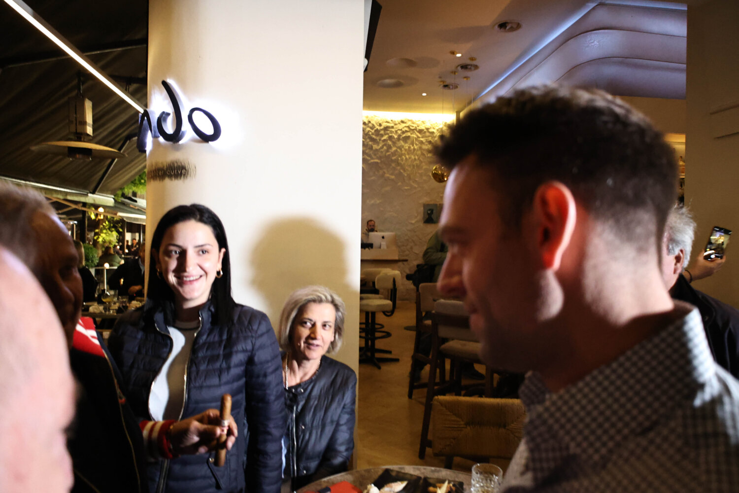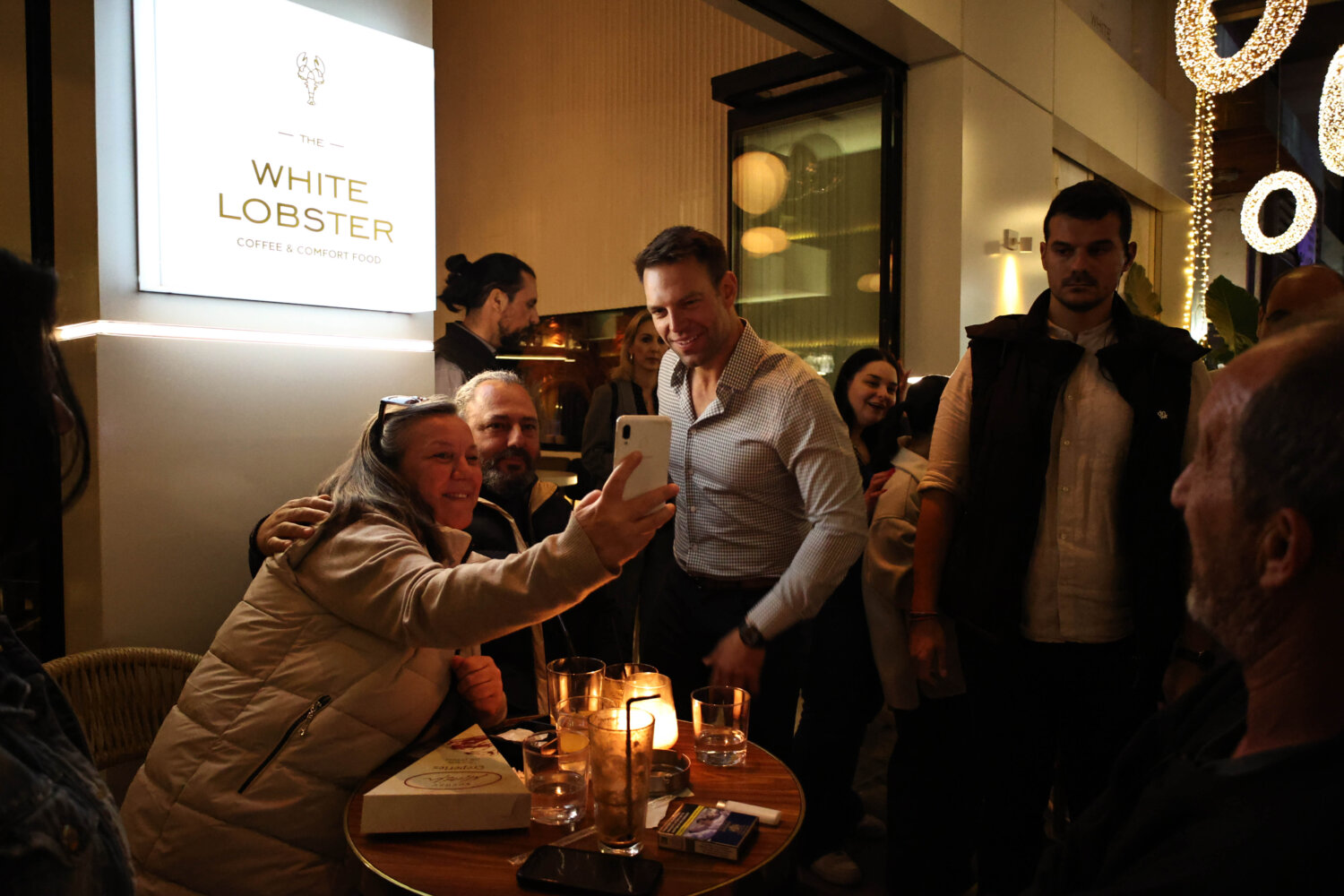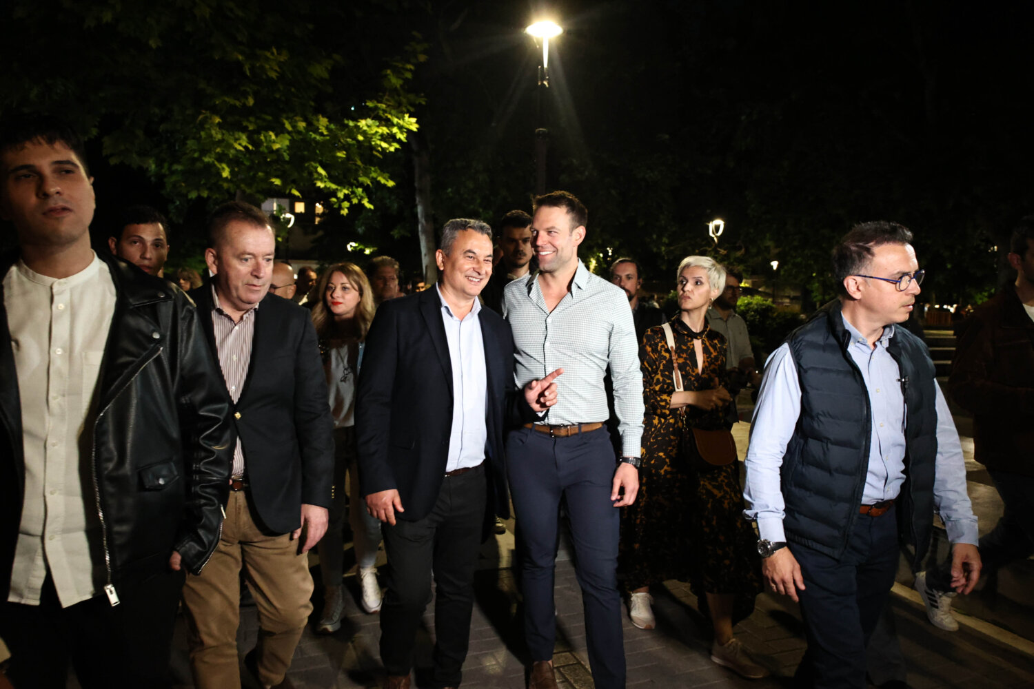 Είχε την ευκαιρίας να συνομιλήσει με Λαρισαίους και Λαρισαίες, ενώ στις δηλώσεις του αναφέρθηκε στα προβλήματα που αντιμετωπίζει η Θεσσαλία, στους νέους και φυσικά στις επερχόμενες ευρωεκλογές.