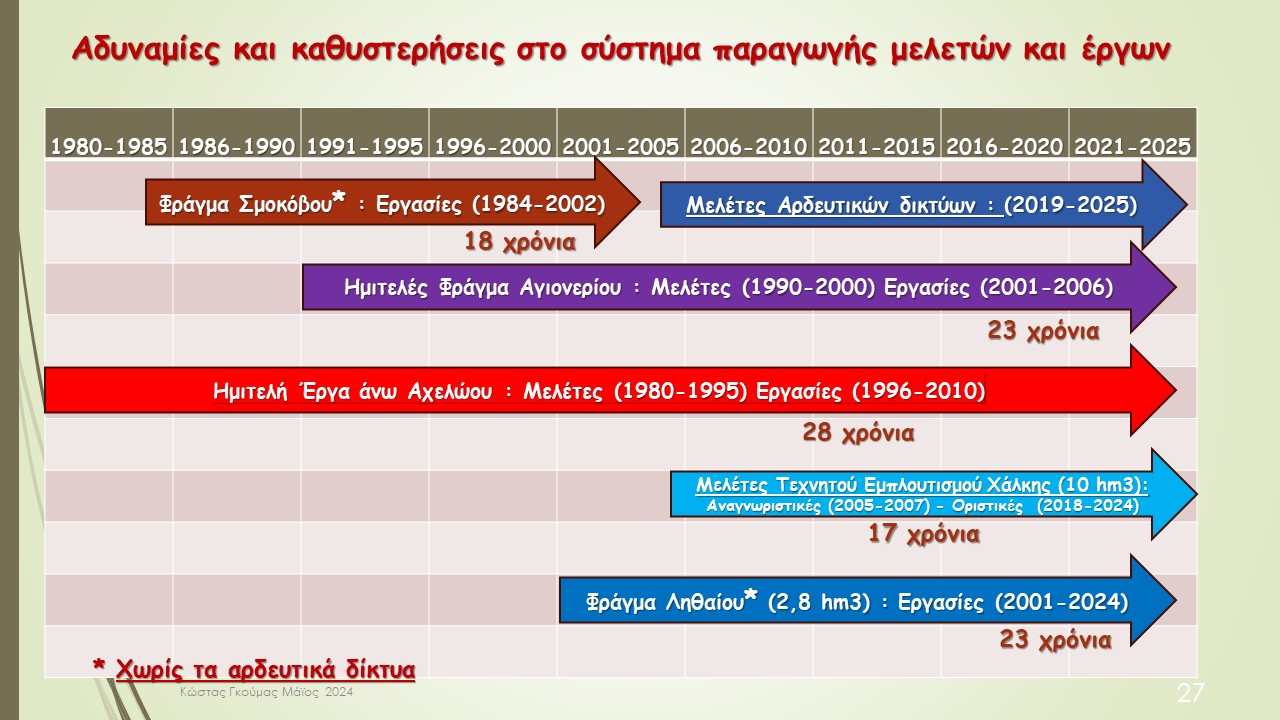 Είναι χαρακτηριστικό το διάγραμμα το οποίο αποτυπώνει αυθεντικά και πέραν πάσης αμφιβολίας, τις παθογένειες και τις πολυετείς καθυστερήσεις στην κατασκευή πολλών έργων της Θεσσαλίας.