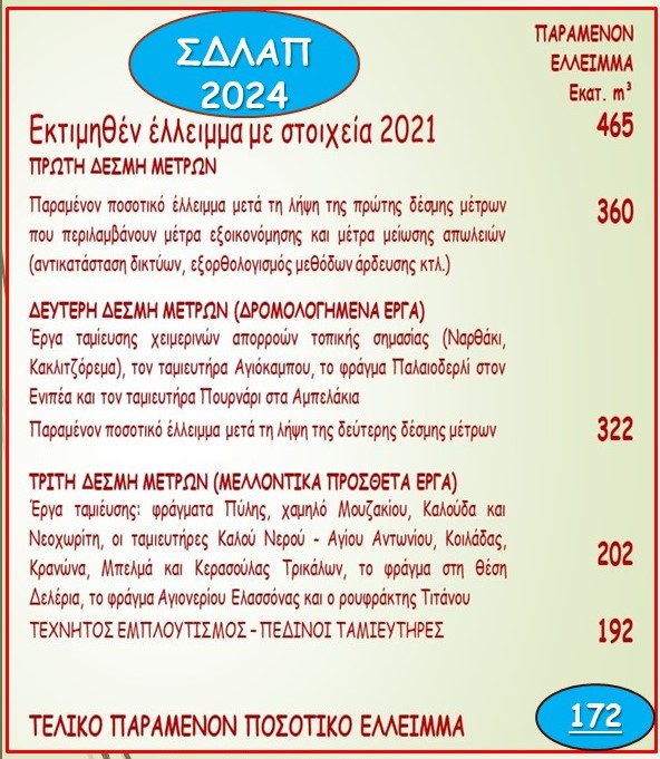 Τα αναγκαία – διοικητικά μέτρα και δράσεις που προβλέπονται στο ΣΔΛΑΠ (όπως η παρακολούθηση και ο έλεγχος υδροληψιών, καταναλώσεων κ.α), δεν μπορούν να εφαρμοστούν, όσο δεν υφίσταται αποτελεσματικός μηχανισμός που θα τα εφαρμόσει.