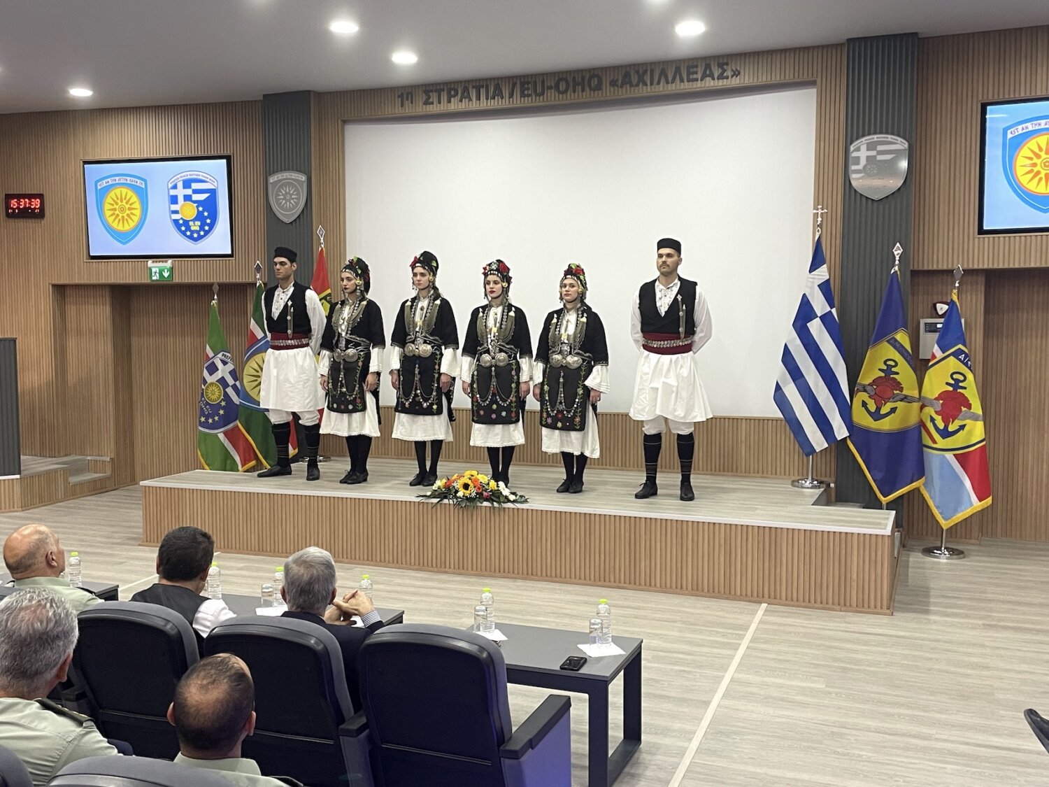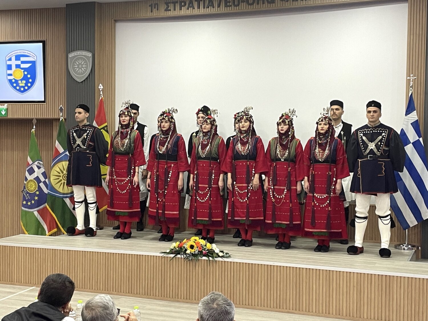 Ο Διοικητής της 1ης Στρατιάς, Αντιστράτηγος Δημόκριτος Κωνσταντάκος, ευχαρίστησε το ΛτΕ Λάρισας για την παρουσίαση και παρέδωσε αναμνηστική πλακέτα στην πρόεδρο του Λυκείου των Ελληνίδων κ. Βασιλική Παπαγιάννη, η οποία ανταπέδωσε ως αντίδωρο παραδοσιακό κόσμημα με το δικέφαλο αετό, σύμβολο του Βυζαντίου και αγαπημένο σύμβολο της ελληνικής παράδοσης.