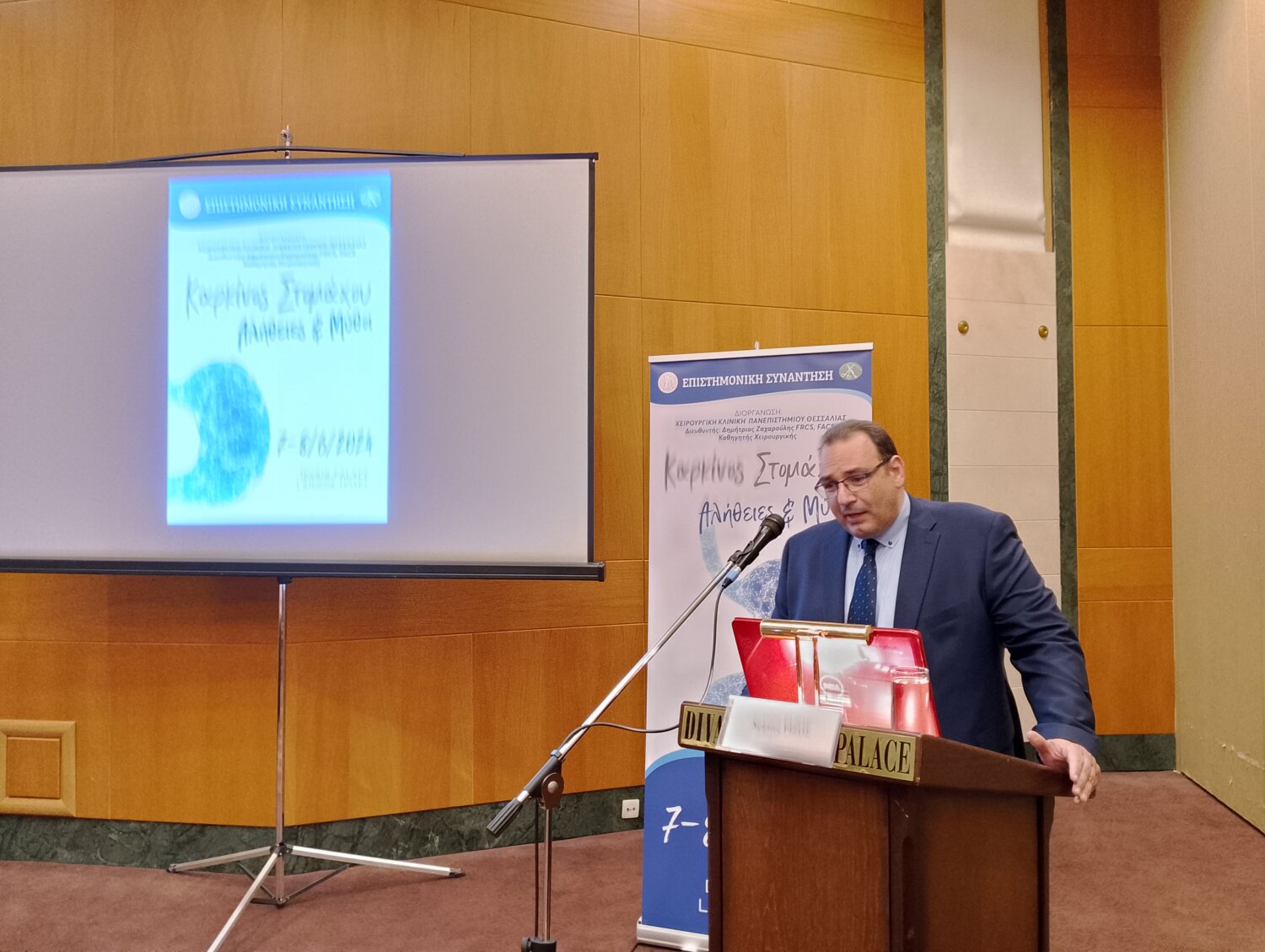 Ξεκίνησε σήμερα το απόγευμα στο ξενοδοχείο Divani Palace η διήμερη επιστημονική συνάντηση με θέμα «Καρκίνος Στομάχου: Αλήθειες & Μύθοι» που διοργανώνει η Χειρουργική Κλινική του Πανεπιστημίου Θεσσαλίας με επιστημονικό υπεύθυνο τον διευθυντή της Κλινικής, καθηγητή Δημήτριο Ζαχαρούλη.