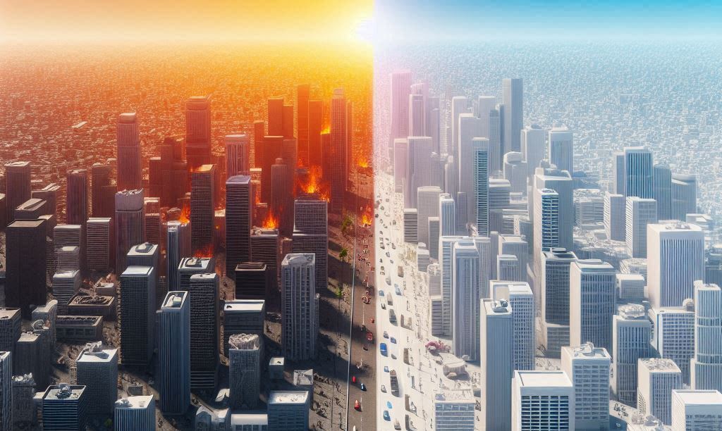 Υπάρχουν τρεις βασικοί παράγοντες που ρυθμίζουν την θερμοκρασία μέσα και γύρω από μία πόλη. Αυτοί είναι (με τυχαία σειρά) το ποσοστό δόμησης, οι περιοχές πρασίνου και η ποιότητα των κατοικιών. Σε άλλο άρθρο θα (ξανά)γράψω για την δενδροφύτευση και την δενδρο-κάλυψη, αλλά και για τα πιο “πράσινα” σπίτια. Σήμερα θα μιλήσουμε για τη πρώτη αιτία, και για μία άγνωστη σε πολλούς λέξη, τη λευκαύγεια.