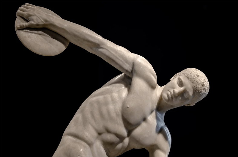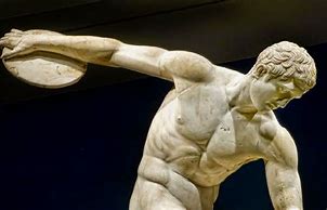 Αθλητικό αφιέρωμα ο Δισκοβόλος: Ο Μύρων ήταν λίγο μεγαλύτερος στην ηλικία από τον Φειδία. Δούλευε μόνο σε μέταλλο. Το έργο του συναποτέλεσαν αγάλματα θεών, ηρώων αλλά κυρίως αθλητών. Αυτό που ξεχωρίζει τους αθλητές του Μύρωνος είναι το κορύφωμα της στάσης τους πριν την εκτέλεση μιας κίνησης. Το χαρακτηριστικότερο από τα αγάλματα αυτά αποτελεί ο Δισκοβόλος. Δεν γνωρίζουμε πού ήταν στημένο το πρωτότυπο άγαλμα του Δισκοβόλου, μπορούμε όμως να υποθέσουμε ότι ήταν ανάθημα κάποιου αθλητή σε ένα μεγάλο ιερό. Στην Αρχαιότητα ο δίσκος δεν ήταν ένα αυτόνομο άθλημα, αλλά αποτελούσε μέρος του πεντάθλου, δηλαδή μιας σειράς πέντε αθλημάτων, που περιελάμβανε τον δρόμο, το άλμα, την πάλη, τον δίσκο και το ακόντιο.