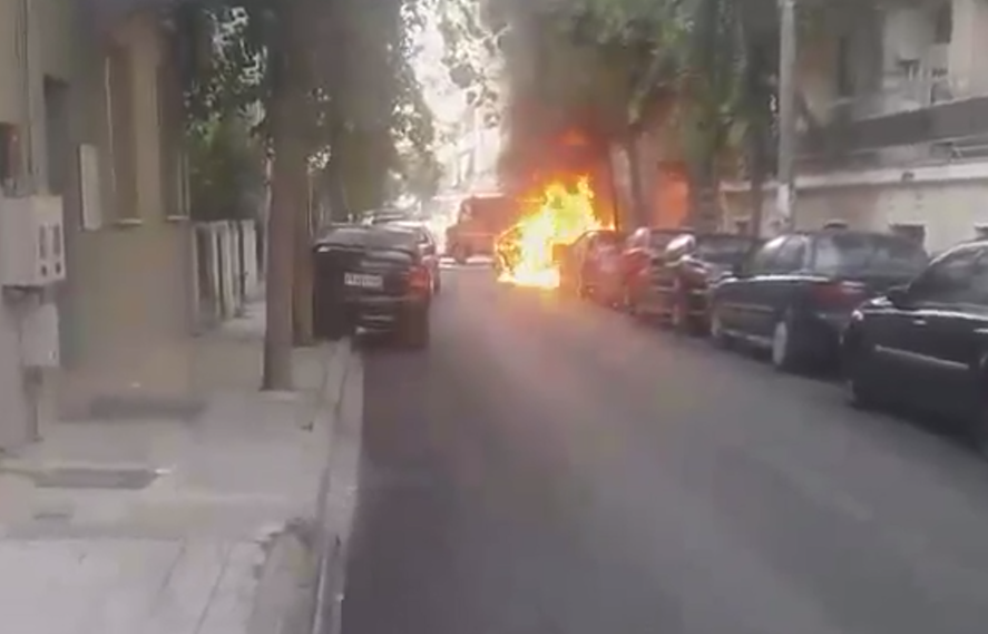 Να σημειωθεί πως από τις φλόγες σημειώθηκαν φθορές και στα γύρω σταθμευμένα οχήματα.