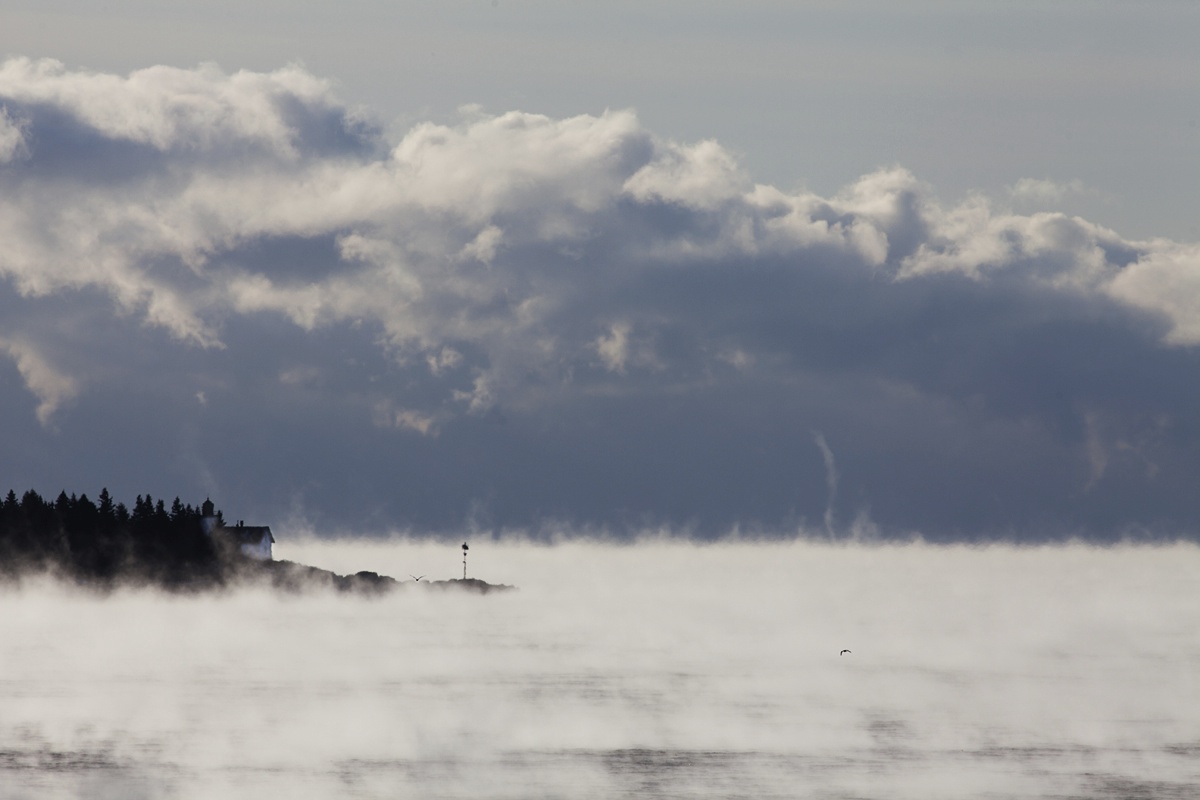 Θαλάσσιος καπνός (sea smoke) ή ομίχλη ατμού: Είναι ένας ειδικός τύπος ομίχλης οριζόντιας μεταφοράς. Ο θαλάσσιος καπνός σχηματίζεται όταν πολύ ψυχρός αέρας εισβάλει απότομα πάνω από πολύ θερμότερη θαλάσσια επιφάνεια. Παράγοντες σχηματισμού θαλάσσιου καπνού είναι η πνοή ισχυρών έως θυελλωδών και πολύ ψυχρών ανέμων από την ξηρά προς την θάλασσα και η θερμοκρασιακή αναστροφή1, δηλαδή η άνοδος θερμοκρασίας από την επιφάνεια μέχρι κάποιο ύψος. Η αναστροφή όμως αυτή πρέπει να προϋπάρχει πάνω από τη θάλασσα πριν φθάσει εκεί ο ψυχρός αέρας. Συνήθως ο θαλάσσιος καπνός έχει λεπτό πάχος, ενώ παρατηρείται συνηθέστερα στις θάλασσες της Αρκτικής και της Ανταρκτικής, καθώς και σε άλλες περιοχές όπως η Βαλτική, ανοιχτά της Νέας Γης και του Α. Λαυρεντίου, στα ισλανδικά και νορβηγικά φιόρδ και στη θάλασσα των Αλεούτιων νήσων.