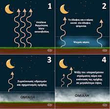 Β΄ ανάλογα με τον τρόπο σχηματισμού της ονομάζεται: ομίχλη ακτινοβολίας, αναμίξεως και οριζόντιας μεταφοράς [ή θαλάσσης].