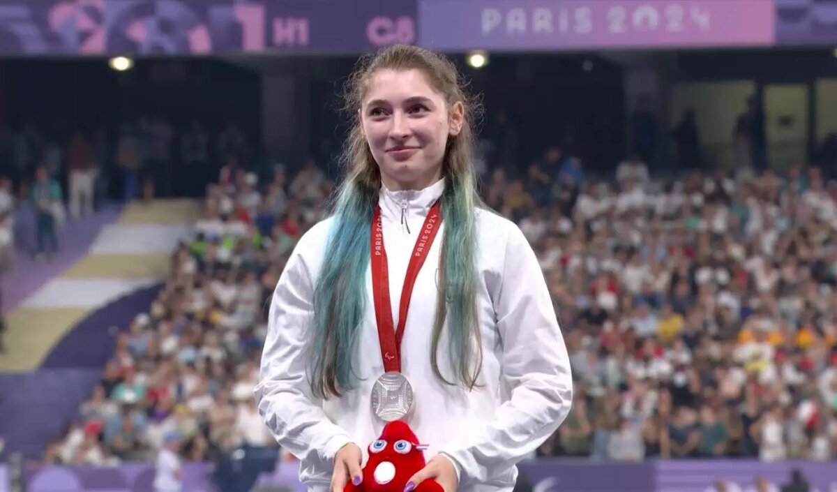Η Λήδα Μαρία Μανθοπούλου ανέβηκε στο βάθρο των νικητριών και παρέλαβε το ασημένιο μετάλλιο, για τη δεύτερη θέση που κατέκτησε στους Παραολυμπιακούς Αγώνες 2024.