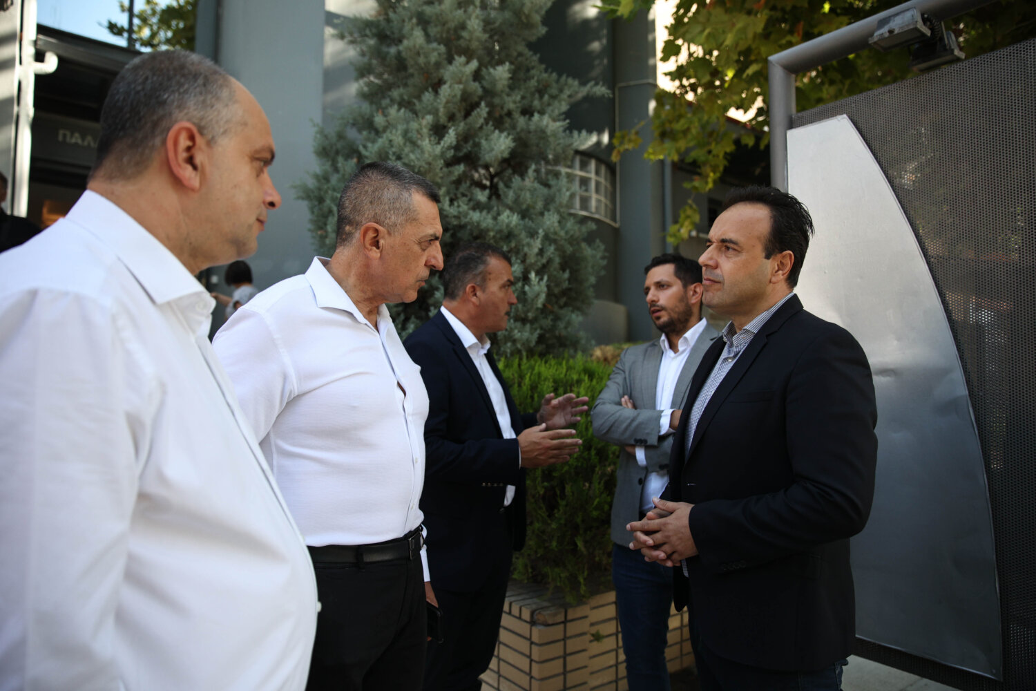 Στο κτίριο τον υποδέχθηκαν ο υπουργός Ψηφιακής Διακυβέρνησης, Δημήτρης Παπαστεργίου, ο περιφερειάρχης Θεσσαλίας, Δημήτρης Κουρέτας και ο δήμαρχος Λαρισαίων, Θανάσης Μαμάκος.