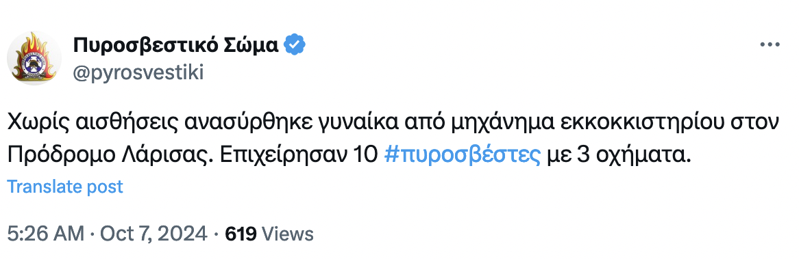 Η Πυροσβεστική σε ανάρτησή της επισημαίνει τα εξής:
