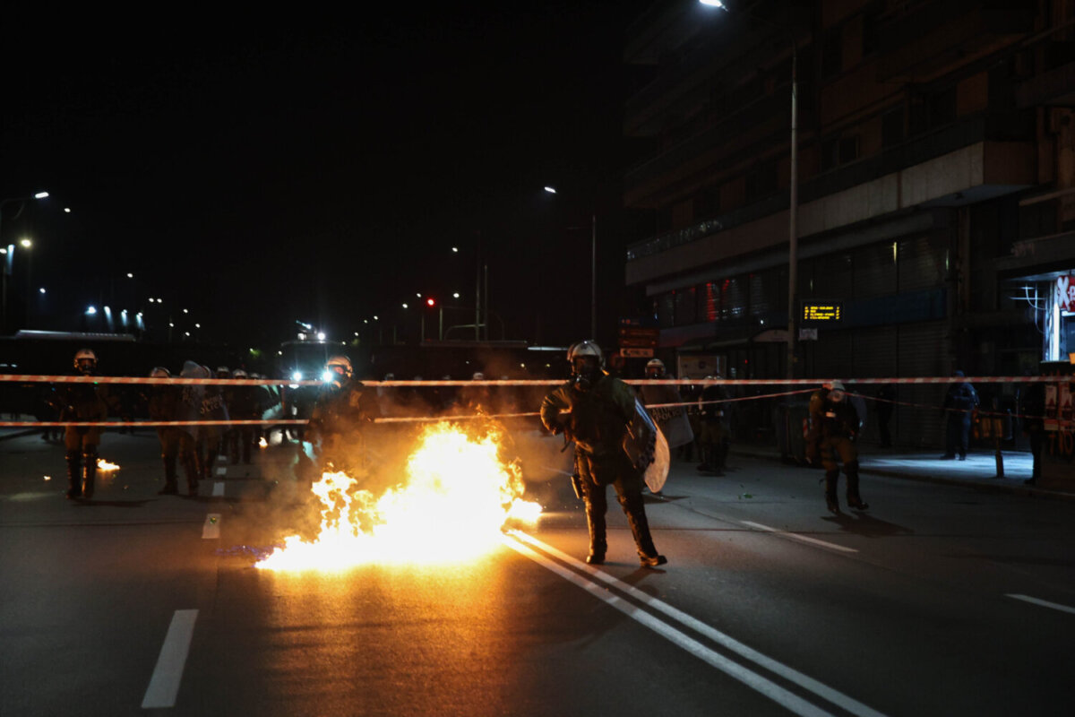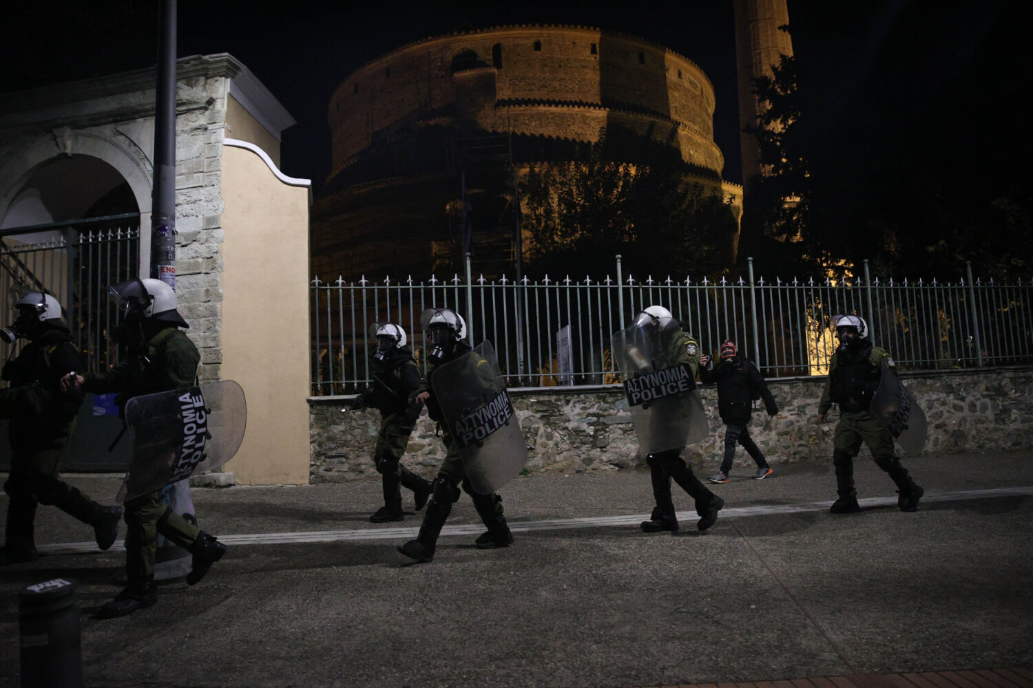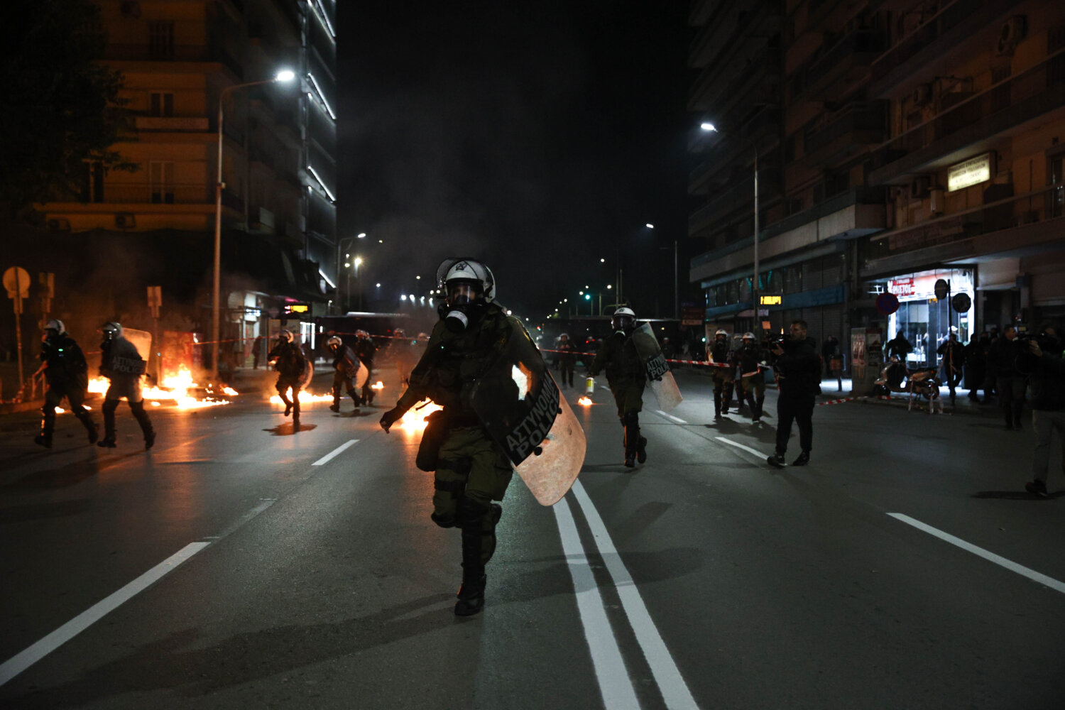 Με την ολοκλήρωση της δεύτερης πορείας, κουκουλοφόροι πέταξαν δεκάδες μολότοφ προς τις αστυνομικές δυνάμεις που είχαν δημιουργήσει φραγμό με κλούβες, στην Εγνατία, προς τα Πανεπιστήμια. Οι αστυνομικοί απάντησαν με χρήση χημικών, ενώ τα άτομα διασκορπίστηκαν στην περιοχή πάνω από την Καμάρα, προς την οδό Αγίου Δημητρίου.