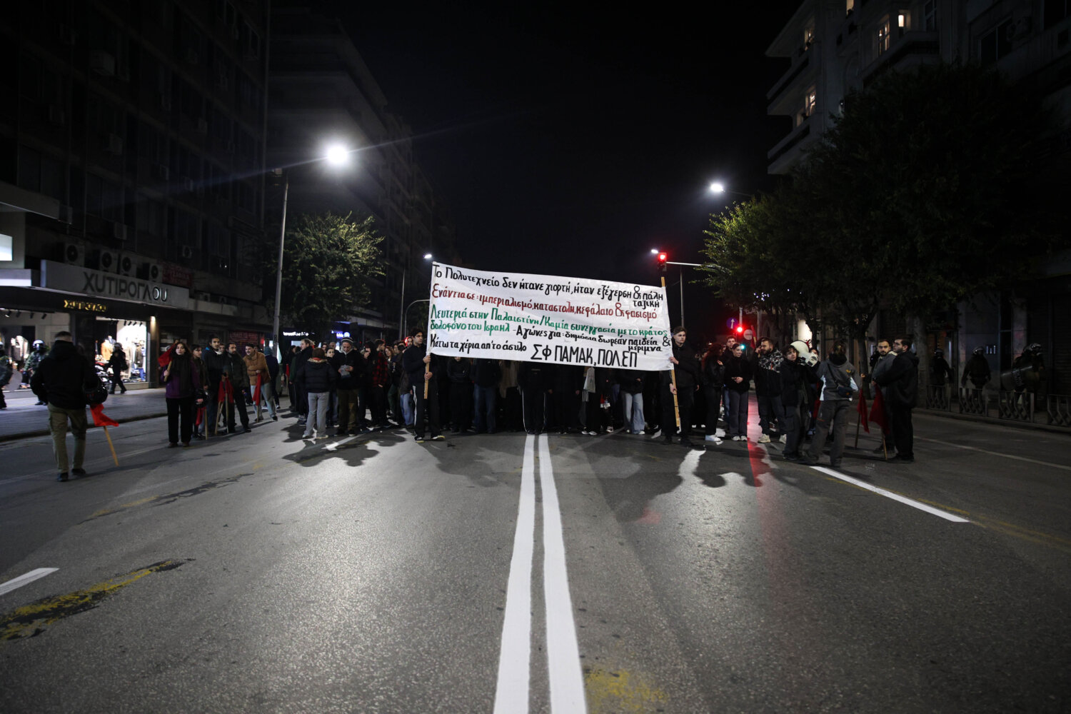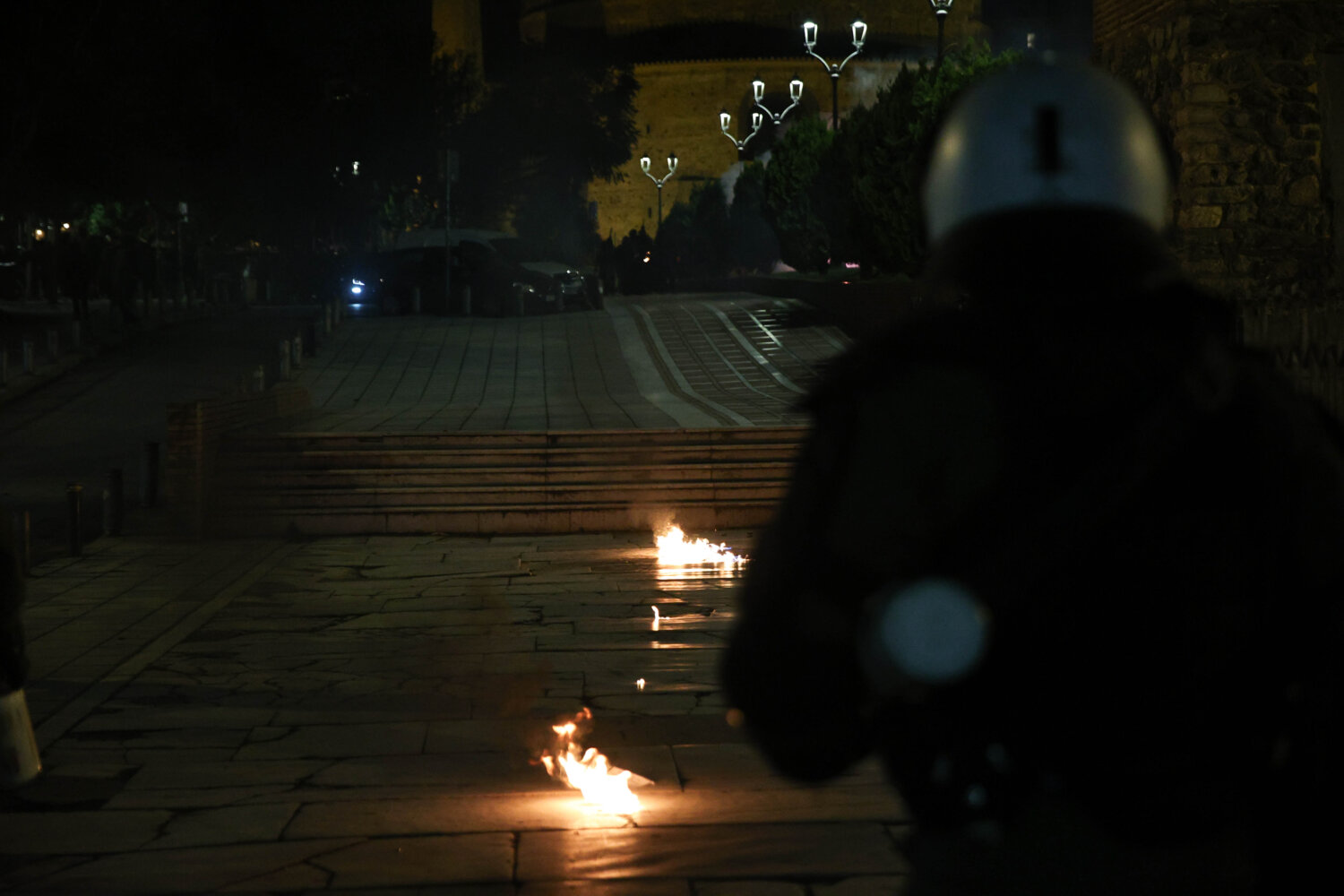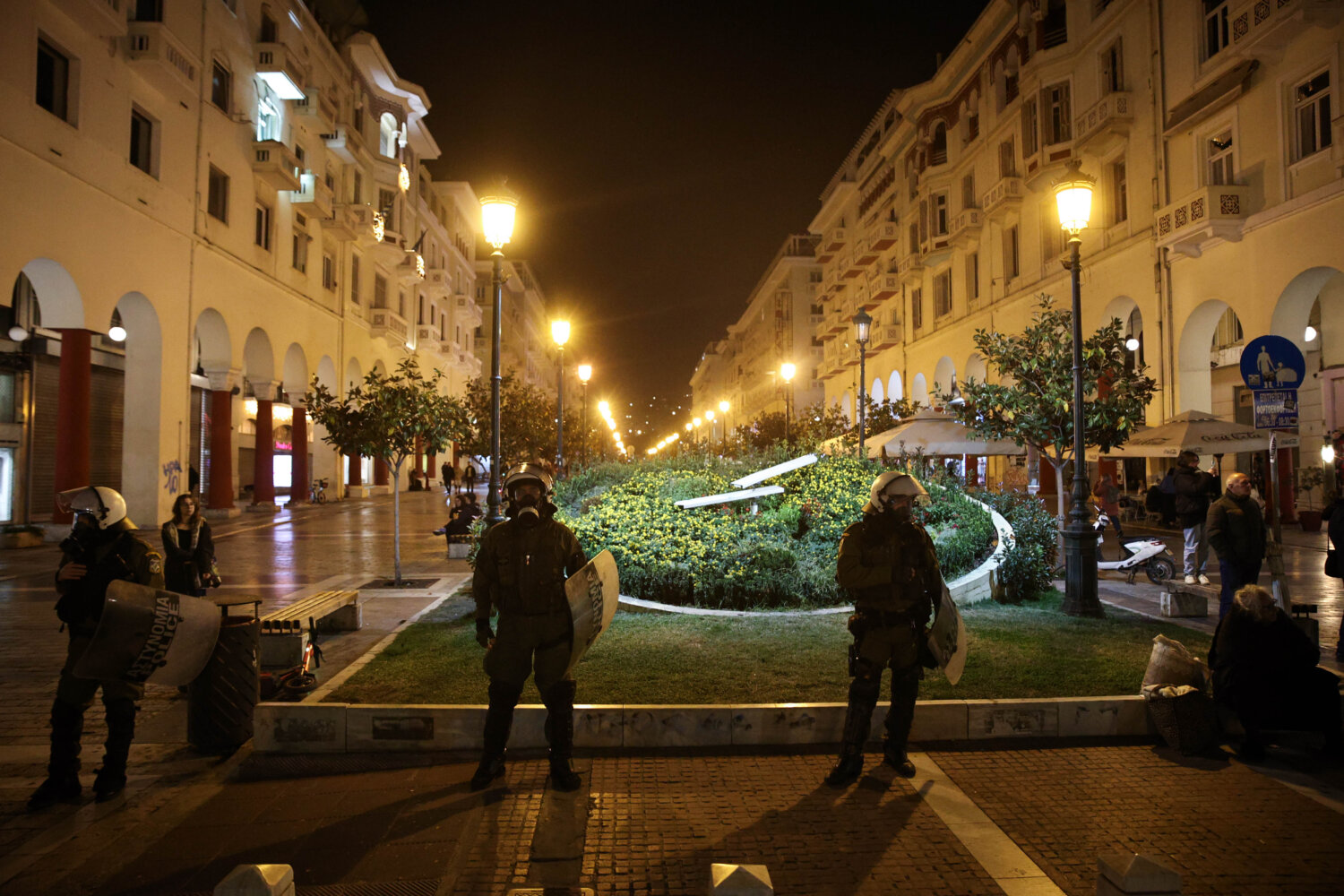 Με την ολοκλήρωση της δεύτερης πορείας, κουκουλοφόροι πέταξαν δεκάδες μολότοφ προς τις αστυνομικές δυνάμεις που είχαν δημιουργήσει φραγμό με κλούβες, στην Εγνατία, προς τα Πανεπιστήμια. Οι αστυνομικοί απάντησαν με χρήση χημικών, ενώ τα άτομα διασκορπίστηκαν στην περιοχή πάνω από την Καμάρα, προς την οδό Αγίου Δημητρίου.