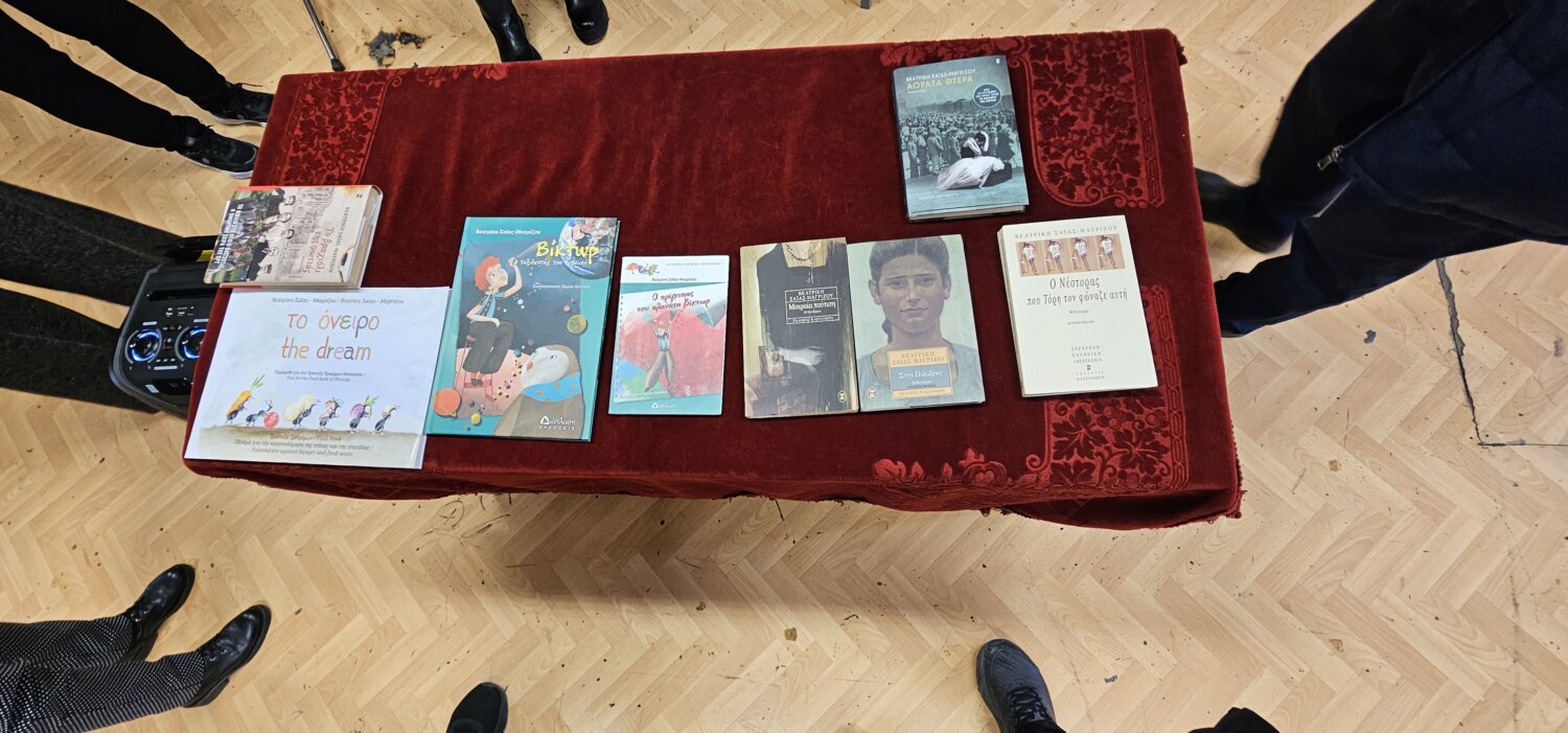 Η Λαρισαία συγγραφέας παρουσίασε εν συντομία το έργο της διαβάζοντας αποσπάσματα από τα βιβλία της «Το βραχιόλι της φωτιάς», «Αόρατα φτερά», «Στην Πολυξένη», «Η προίκα», «Ο Νέστορας που Τόρη τον φώναζε αυτή», «To όνειρο – Τhe dream», «Bίκτωρ ο ταξιδευτής του ουρανού», «Μοιραία ταύριση», κ.α. και μοιράστηκε τις σκέψεις της με τα παιδιά, τα οποία με τη σειρά τους της έκαναν ερωτήσεις. Ήθελαν να μάθουν: