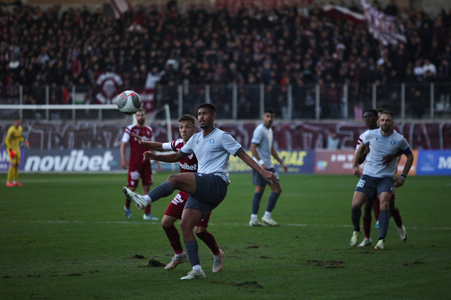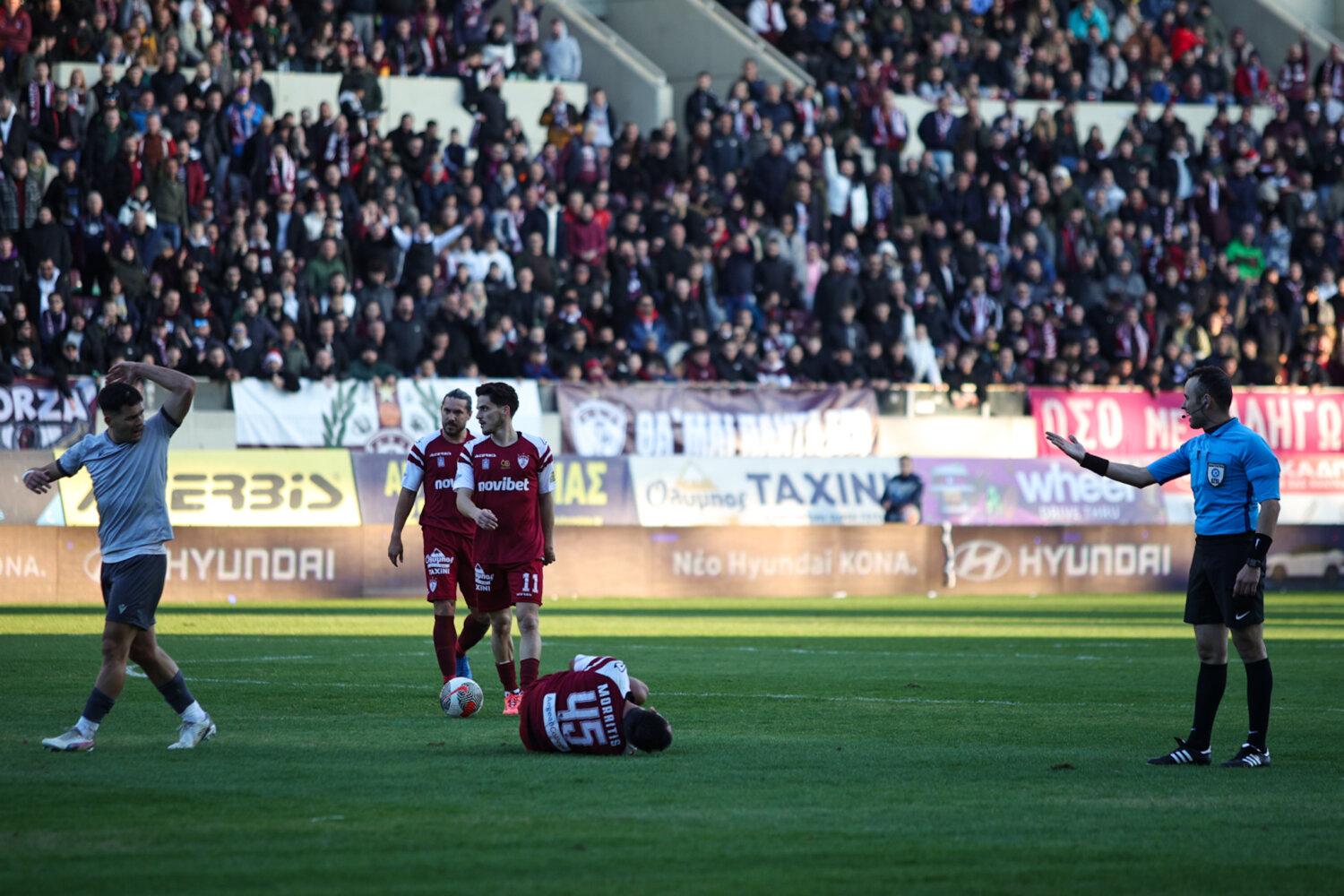 37’ Κάθετη του Μπαριέντος, ο Μωραϊτης προσπάθησε να «κρεμάσει» τον Σούλη που με τα ακροδάκτυλά του έδιωξε σε κόρνερ