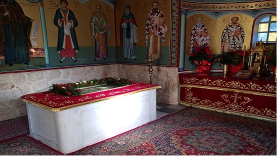 Η τίμια κάρα του μάρτυρα, αποθησαυρίστηκε στον μητροπολιτικό ναό του της Παναγίας Φανερωμένης του Τυρνάβου. Τμήμα των λειψάνων του βρίσκονται στον Βόλο, στην Κρήτη και στη Μονή Καρακάλλου, όπου ο άγιος, έζησε ως μοναχός, για 35 χρόνια, διακονώντας ως εκκλησιάρχης, υπεύθυνος δηλαδή για τον κεντρικό ναό (Καθολικό) του μοναστηριού.