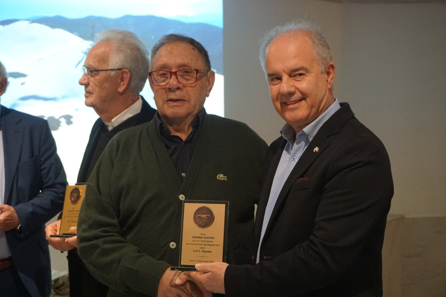Στην όμορφη εκδήλωση υπήρξαν βραβεύσεις μελών του συλλόγου για την διαχρονική προσφορά τους, ενώ ο κ. Μανώλης παρέδωσε στον ΕΟΣ Λάρισας, έναν απινιδωτή με την ευχή όμως «να μην χρειαστεί να χρησιμοποιηθεί ποτέ».