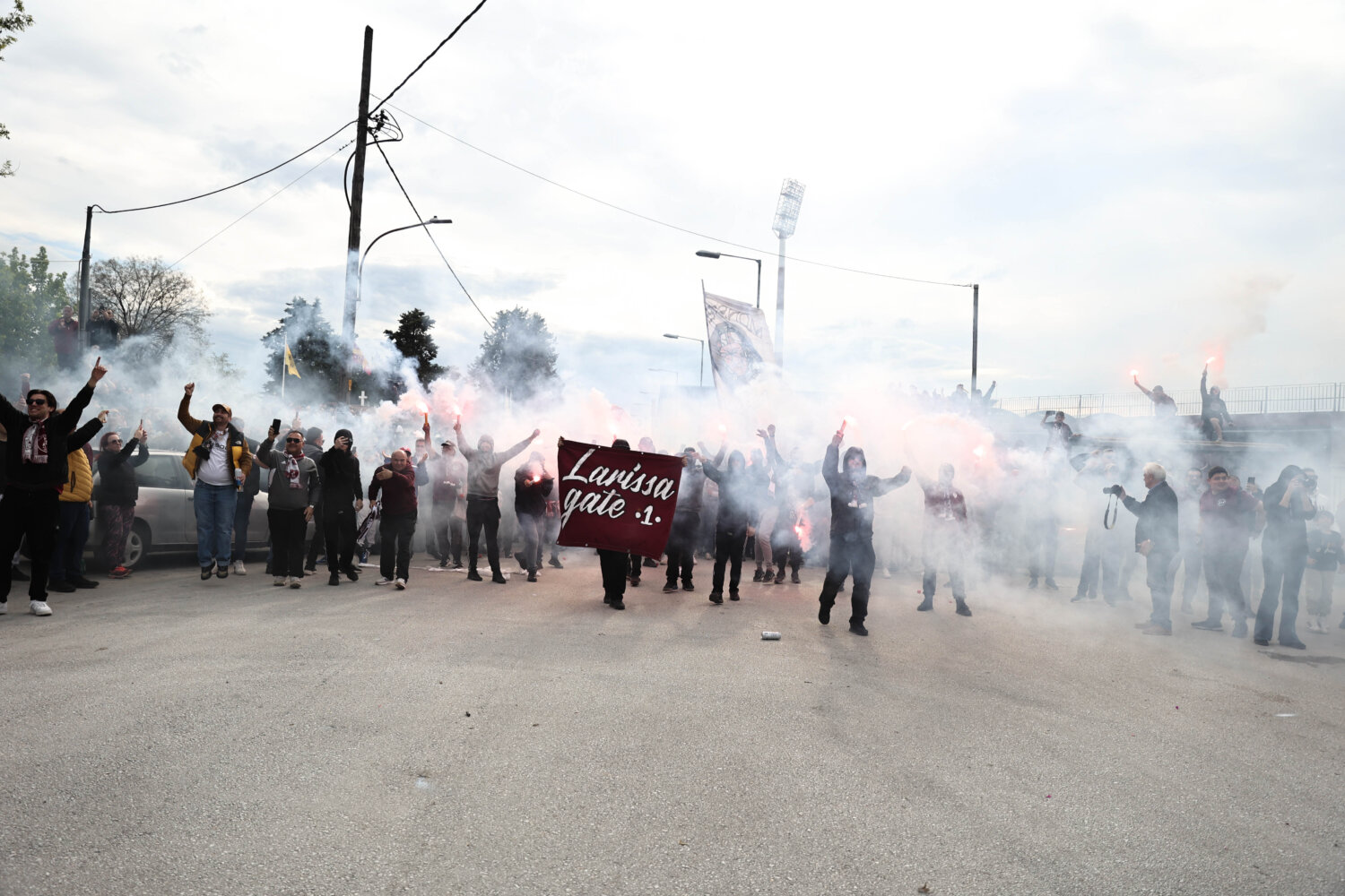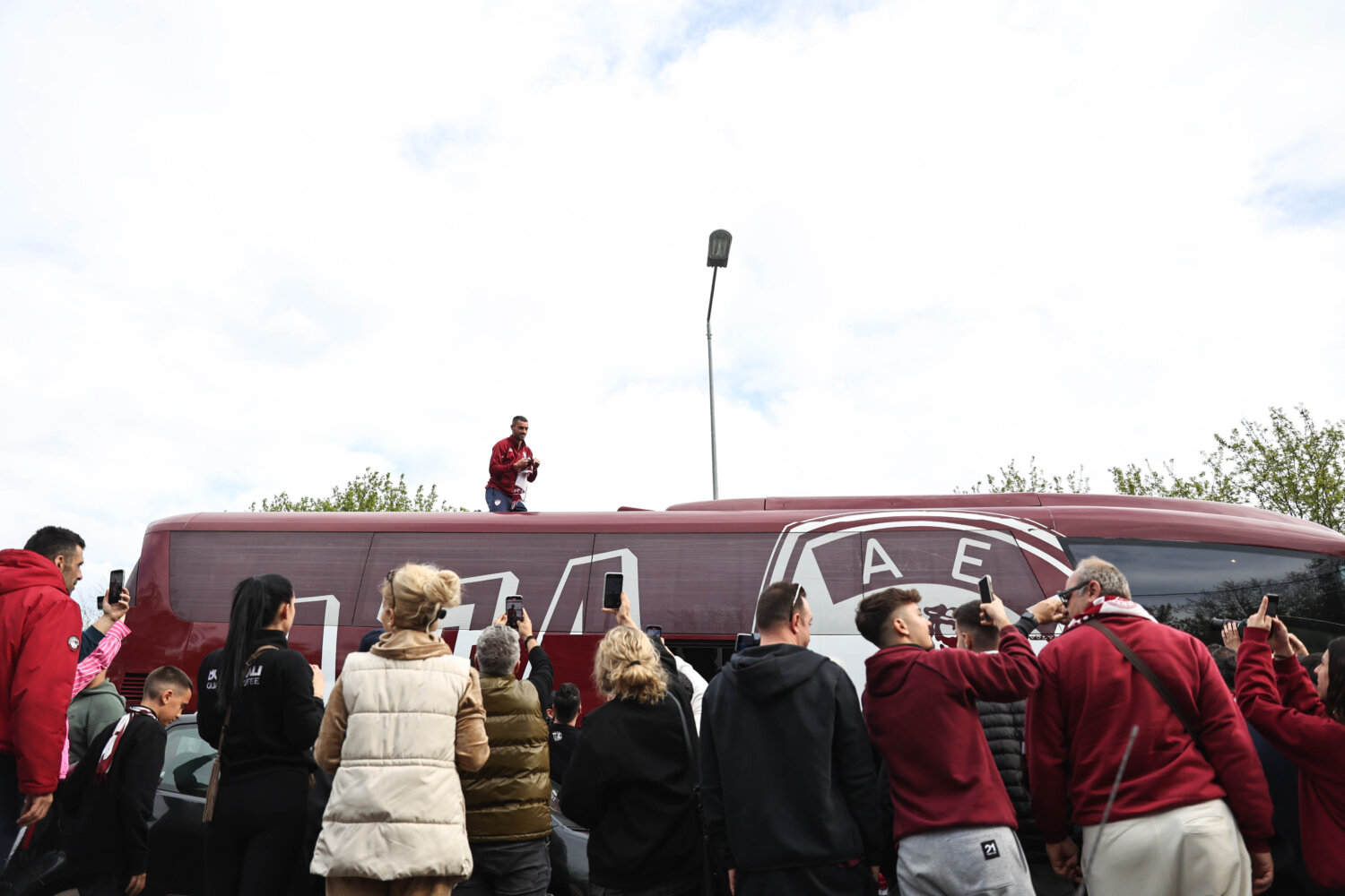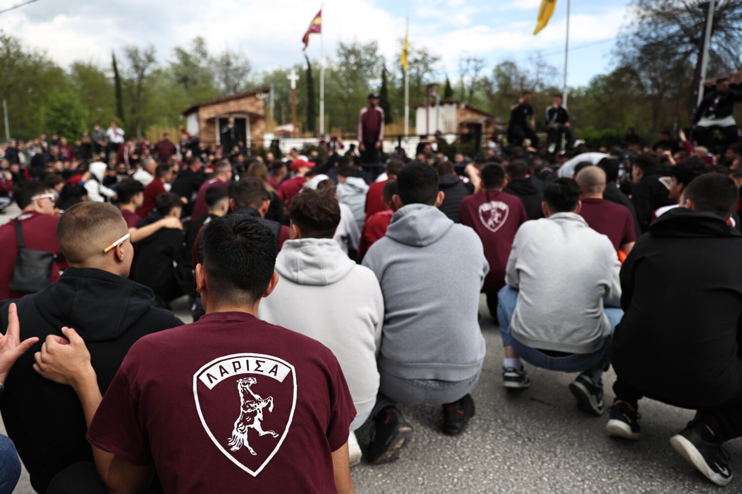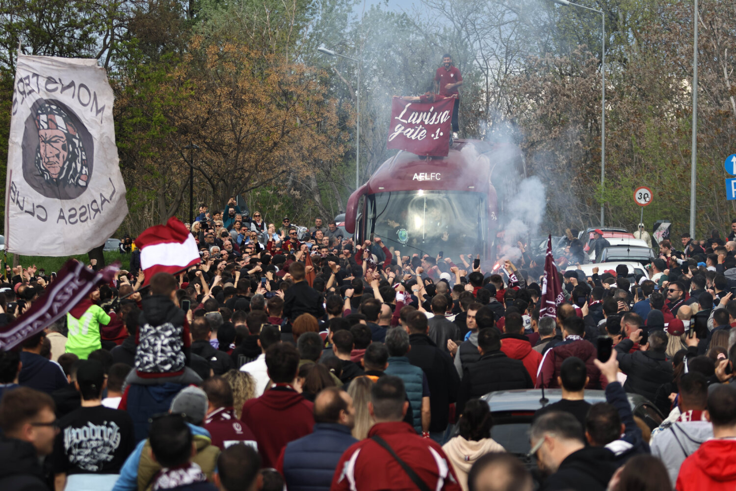 Αποθεωτική υποδοχή επεφύλαξαν χιλιάδες Λαρισαίοι φίλαθλοι σήμερα το απόγευμα στο στάδιο Αλκαζάρ στην αποστολή της ΑΕΛ.