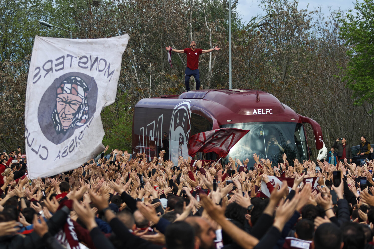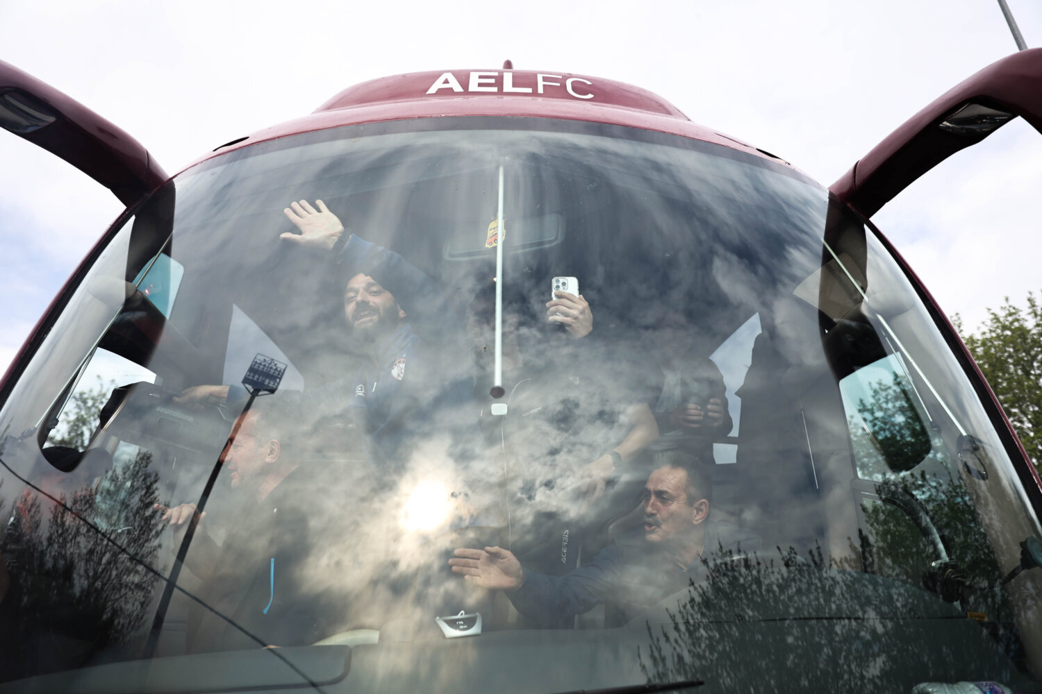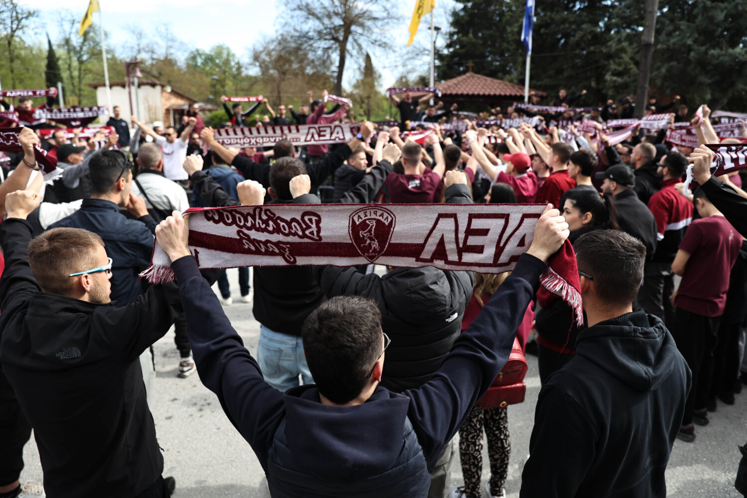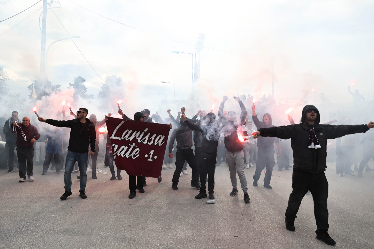 Αποθεωτική υποδοχή επεφύλαξαν χιλιάδες Λαρισαίοι φίλαθλοι σήμερα το απόγευμα στο στάδιο Αλκαζάρ στην αποστολή της ΑΕΛ.
