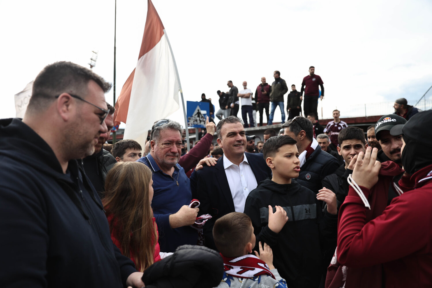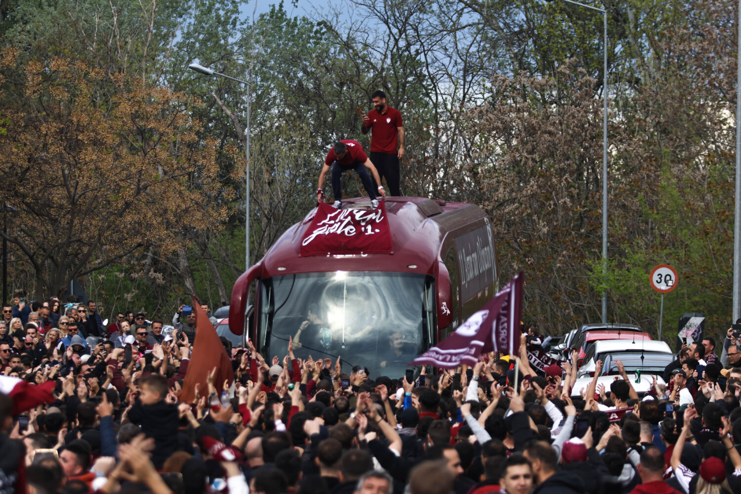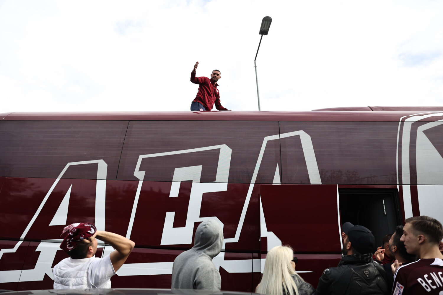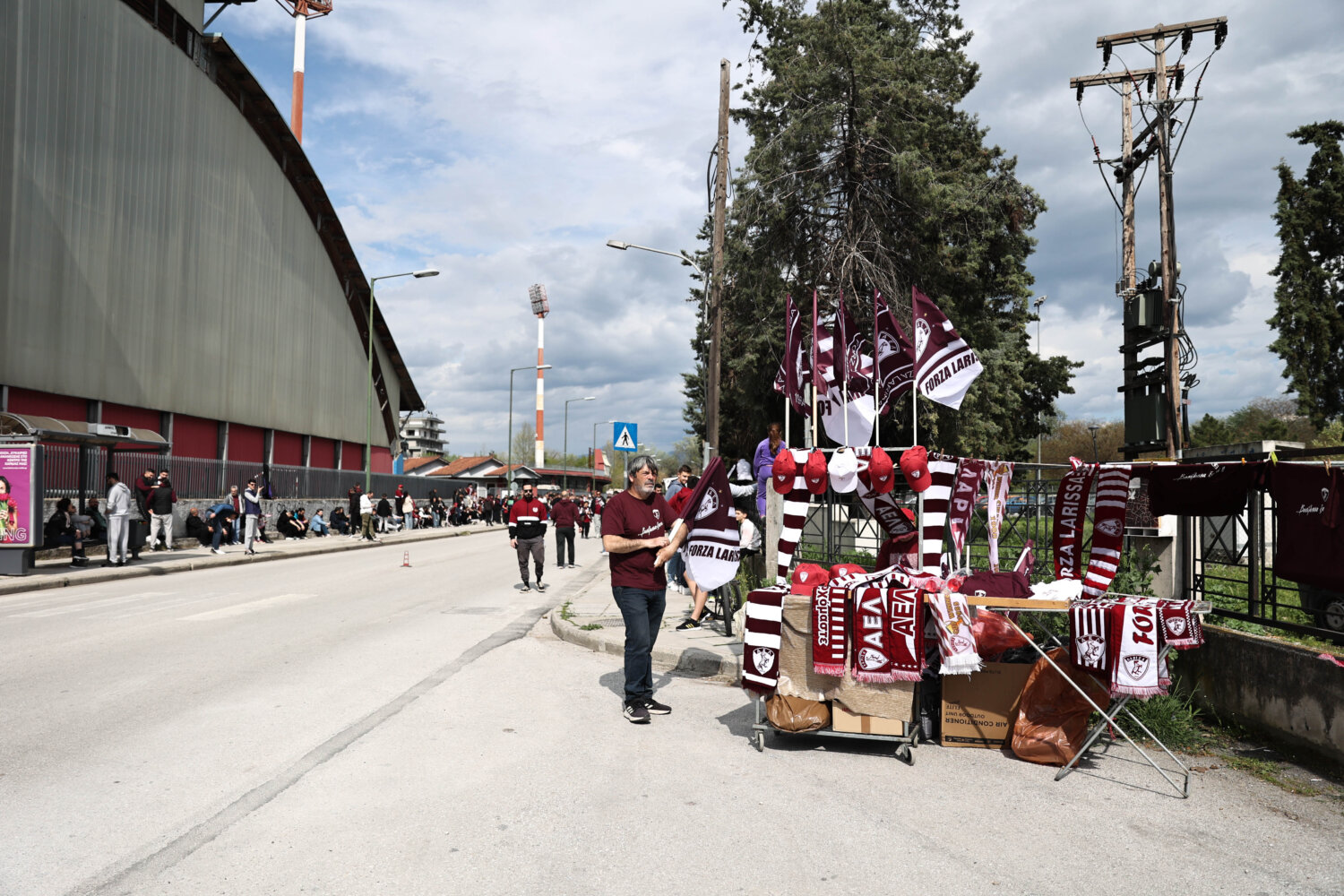 Αποθεωτική υποδοχή επεφύλαξαν χιλιάδες Λαρισαίοι φίλαθλοι σήμερα το απόγευμα στο στάδιο Αλκαζάρ στην αποστολή της ΑΕΛ.