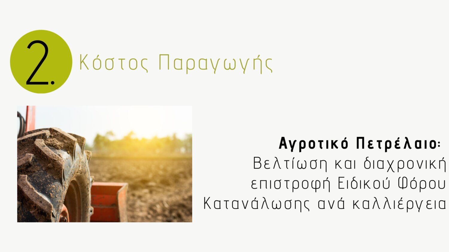 Είναι αναγκαίες βελτιώσεις με αύξηση του χρηματικού ποσού επιστροφής του ειδικού φόρου για το πετρέλαιο αγροτικής χρήσης και καταβολή ανά καλλιέργεια.